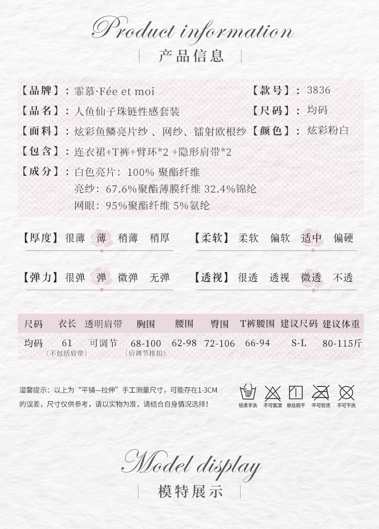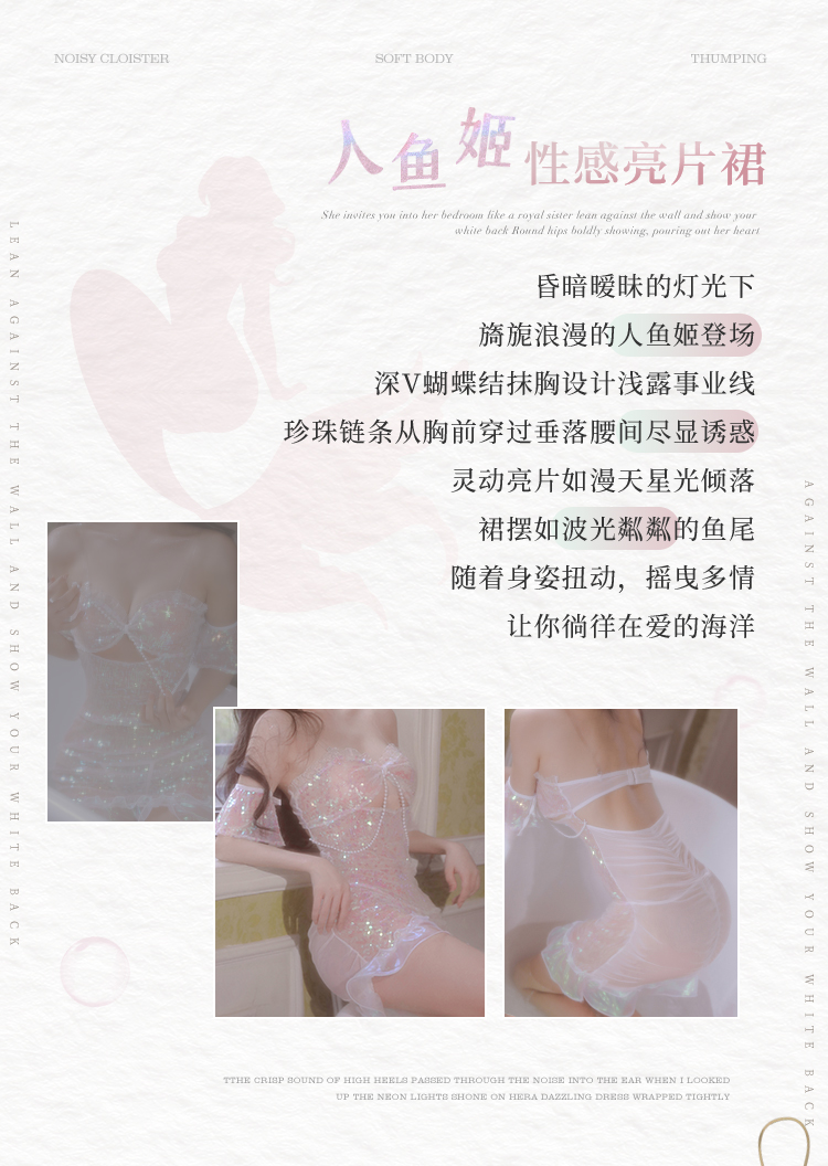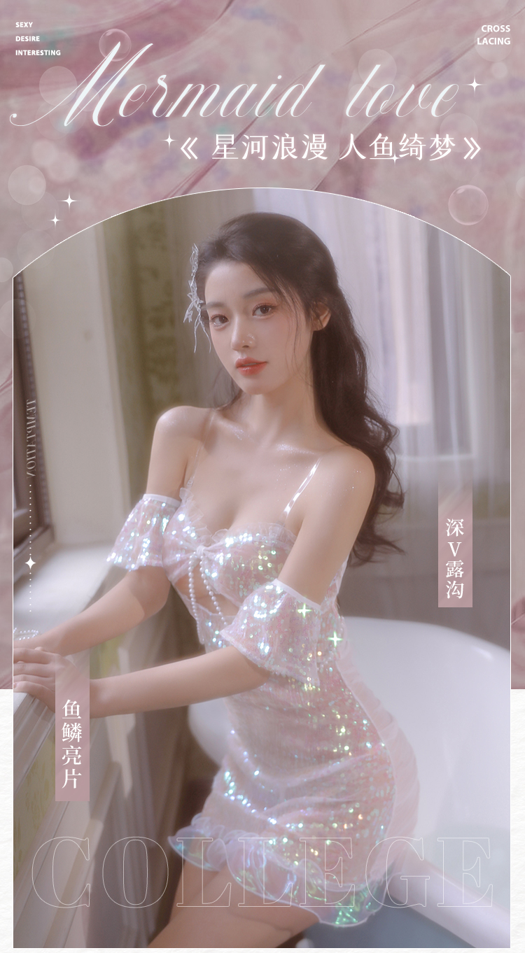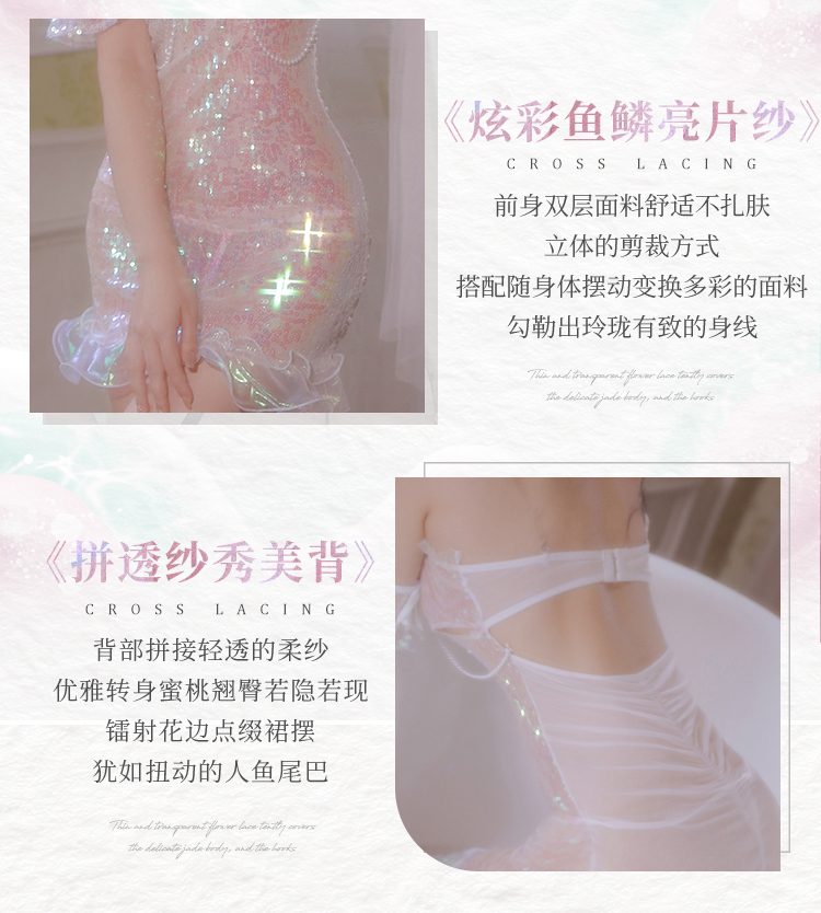 霏慕 人鱼仙子珠链性感套装3836情趣内衣梦幻成人情趣用 人鱼仙子炫彩粉白 均码