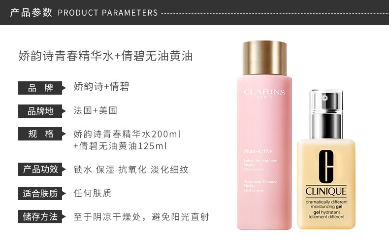 CLARINS/娇韵诗 青春精华水200ML+倩碧无油黄油125ML