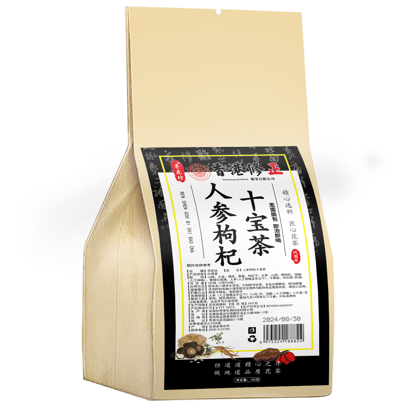 秒杀150袋【一次一包,冲泡更方便】茶汤透亮,口感清醇,自然醇香,人参枸杞十宝茶养生茶加班熬夜肝茶。ra