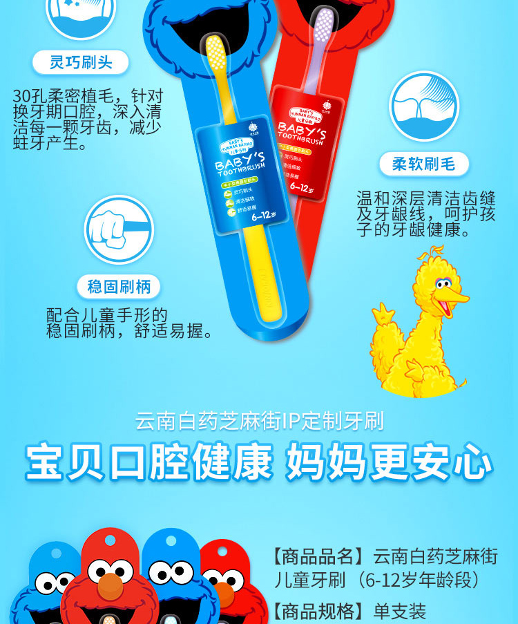 【官方正品】云南白药儿童牙刷软毛超细软正品3-12岁分龄小孩可爱小头牙刷