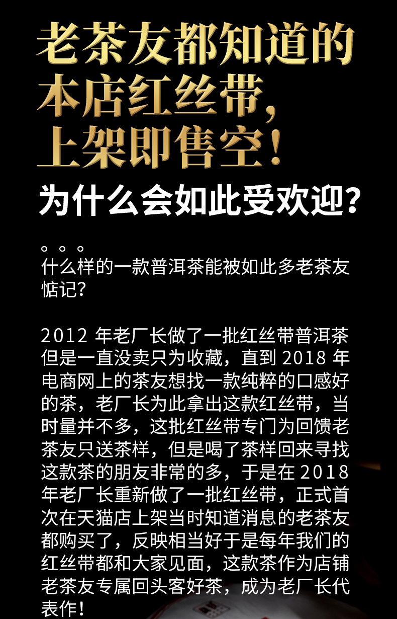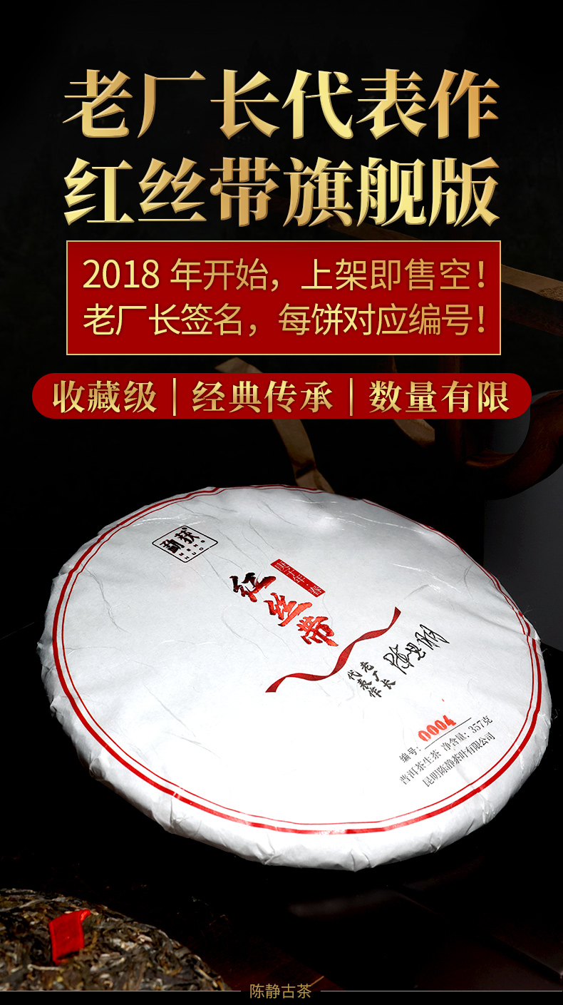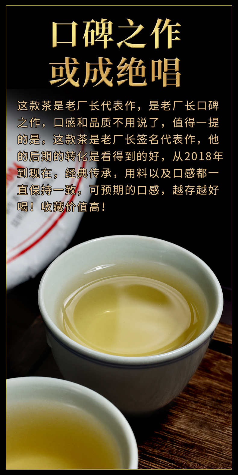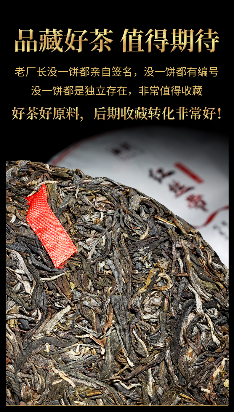 146 老厂长代表作之红丝带生茶●亲笔签名旗舰版●请拿市场2000元以上的茶饼来PK,买过不后悔的一款茶!