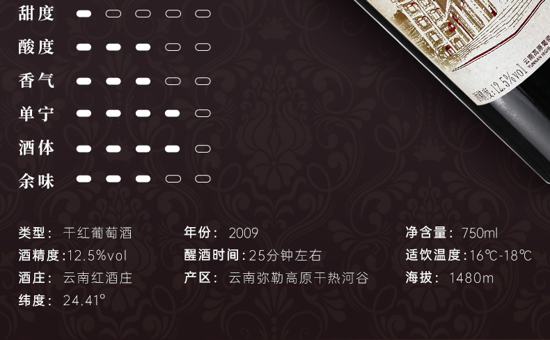 云南红艺术经典玫瑰蜜干红葡萄酒12.5度750ml弥勒酒庄