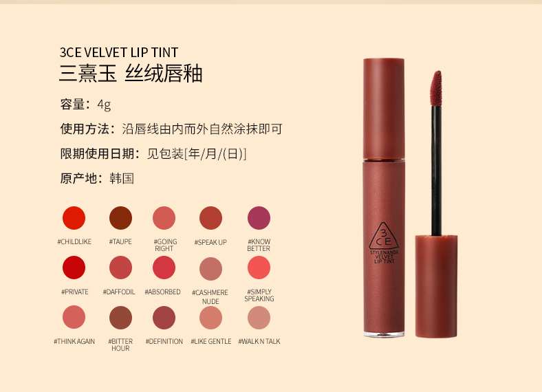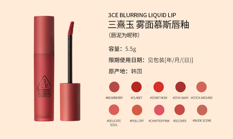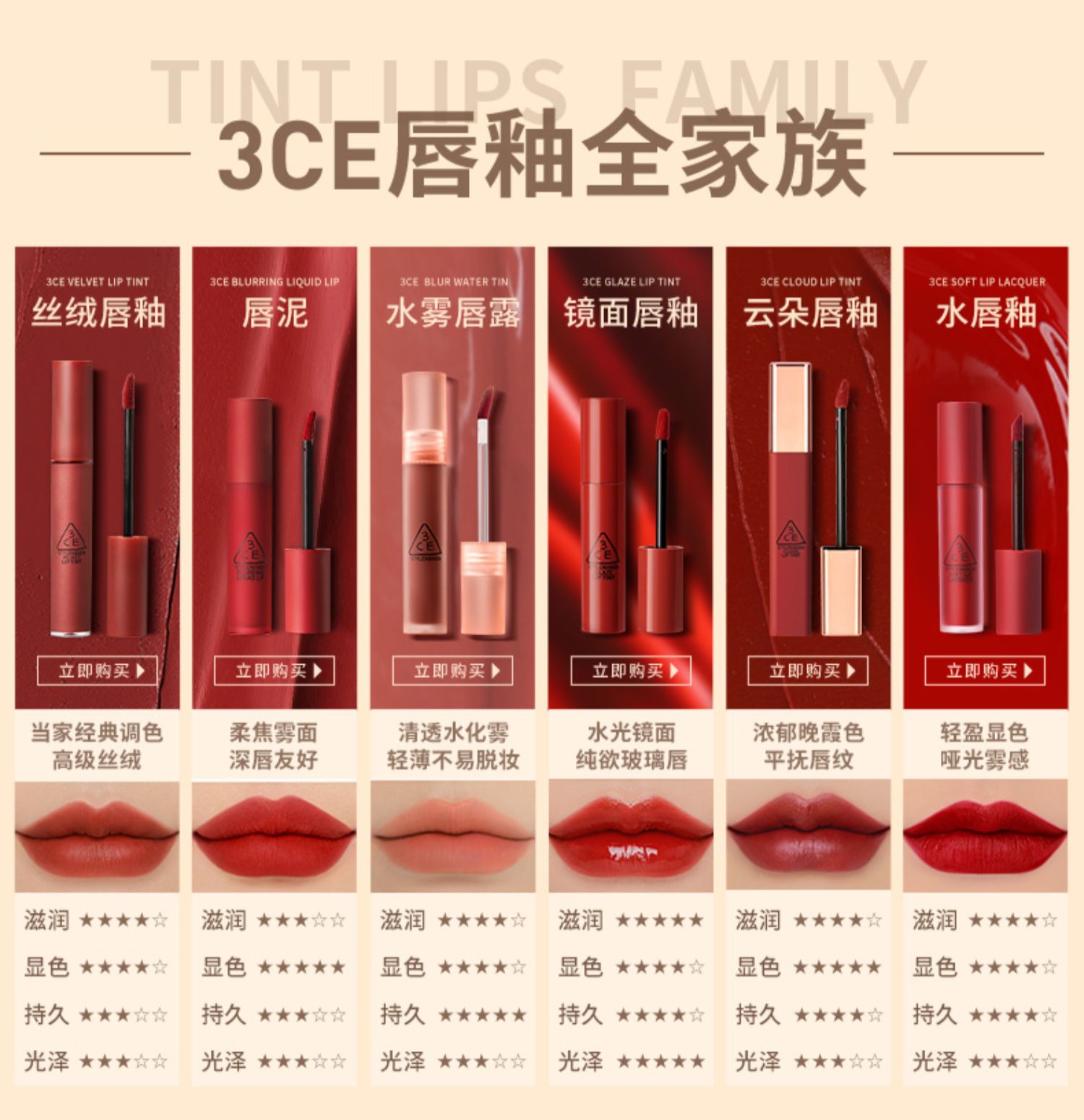 【中欧班列精选】3CE雾面慕斯唇釉5.5g/支