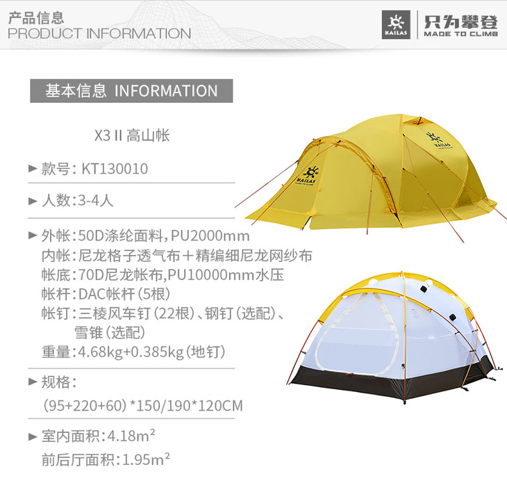 防风防水帐篷 野外防雨野营X3 II 高山帐篷 KT130010