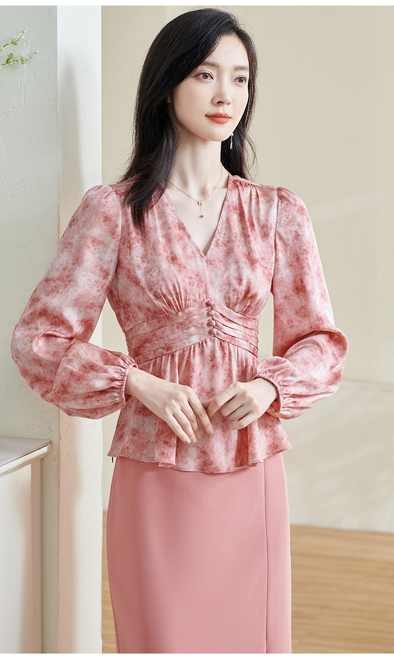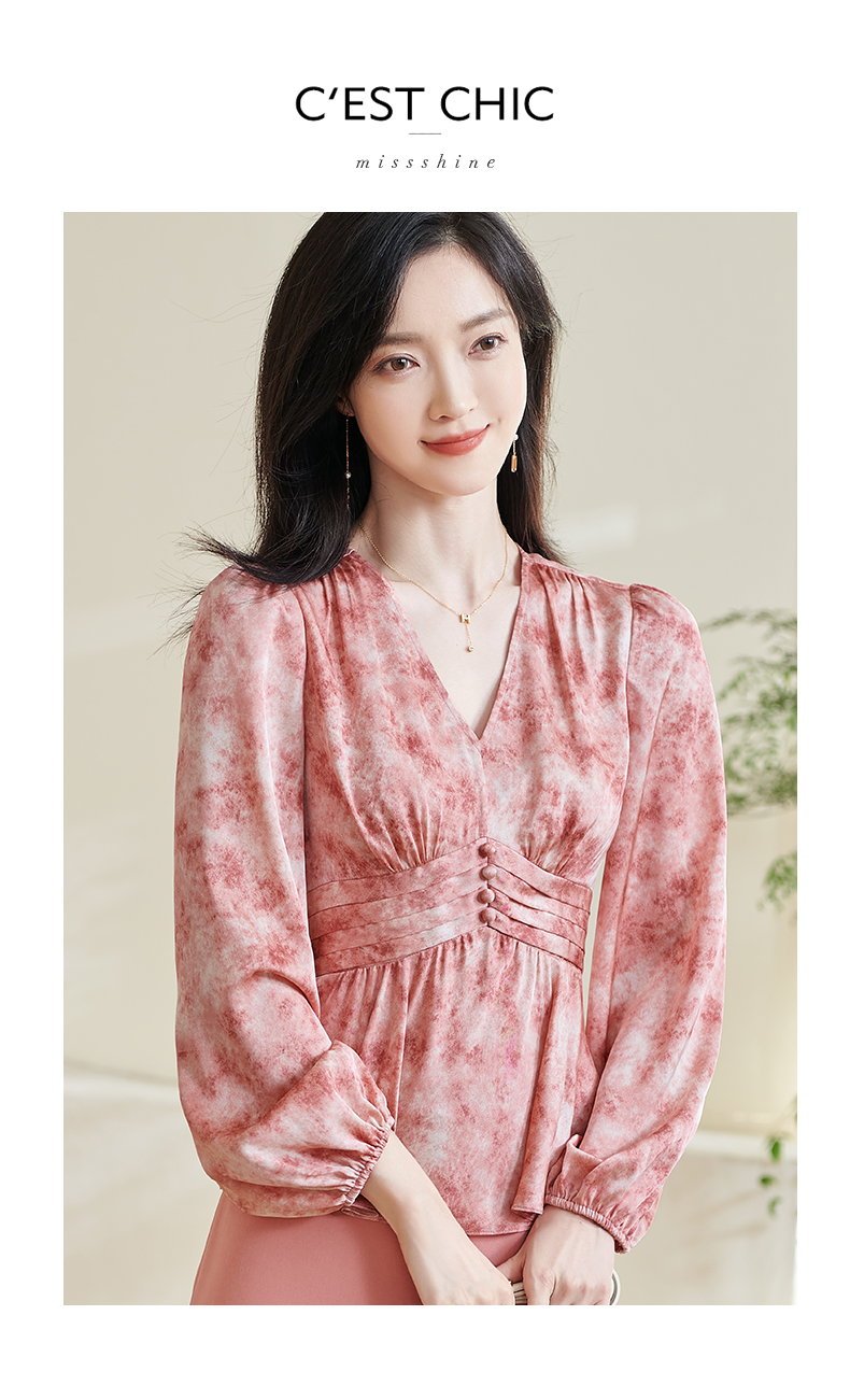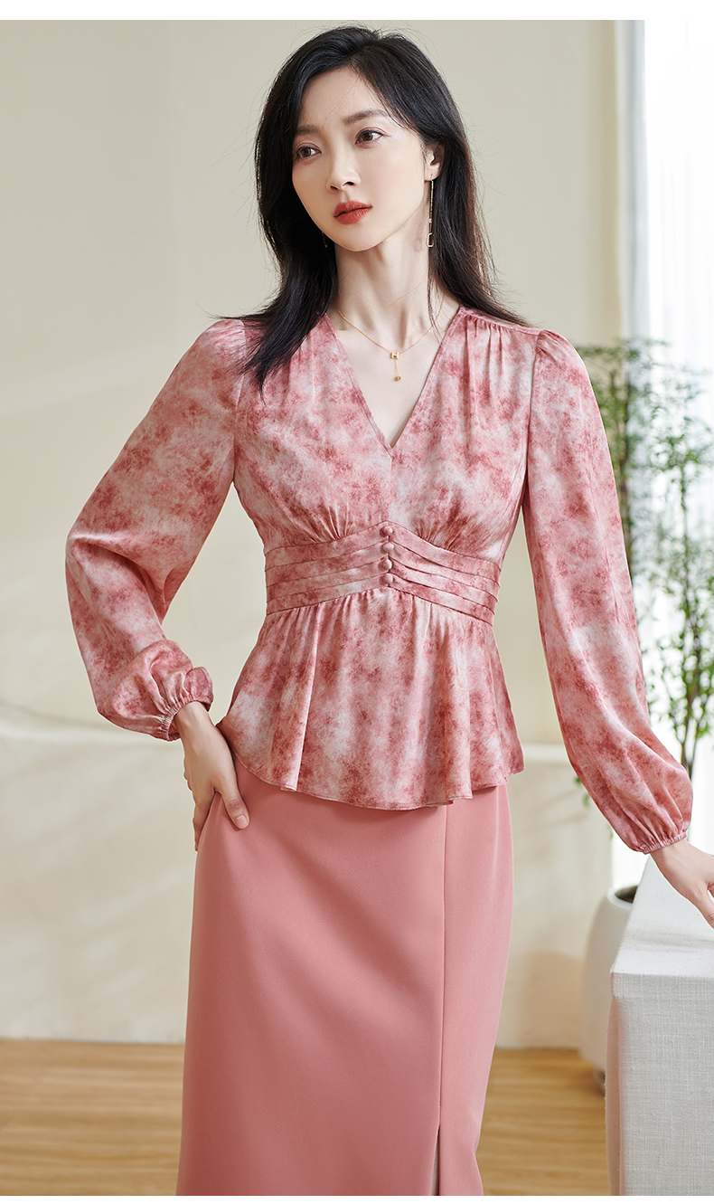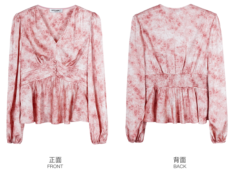 米思阳2026春季新款优雅修身气质衬衫高腰风琴褶设计晕染上衣0265