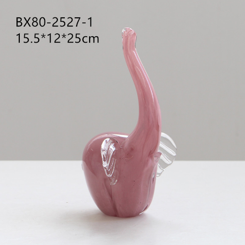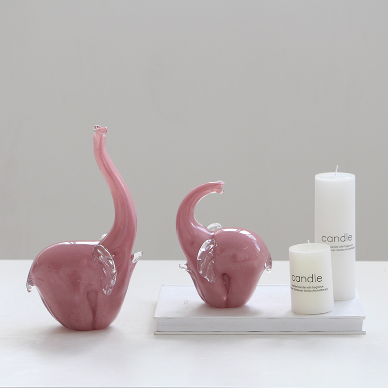 现代创意艺术琉璃粉色大象动物摆件客厅玄关电视柜书房样板间装饰