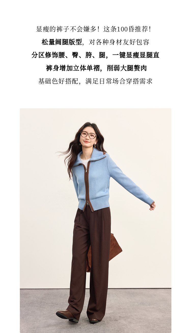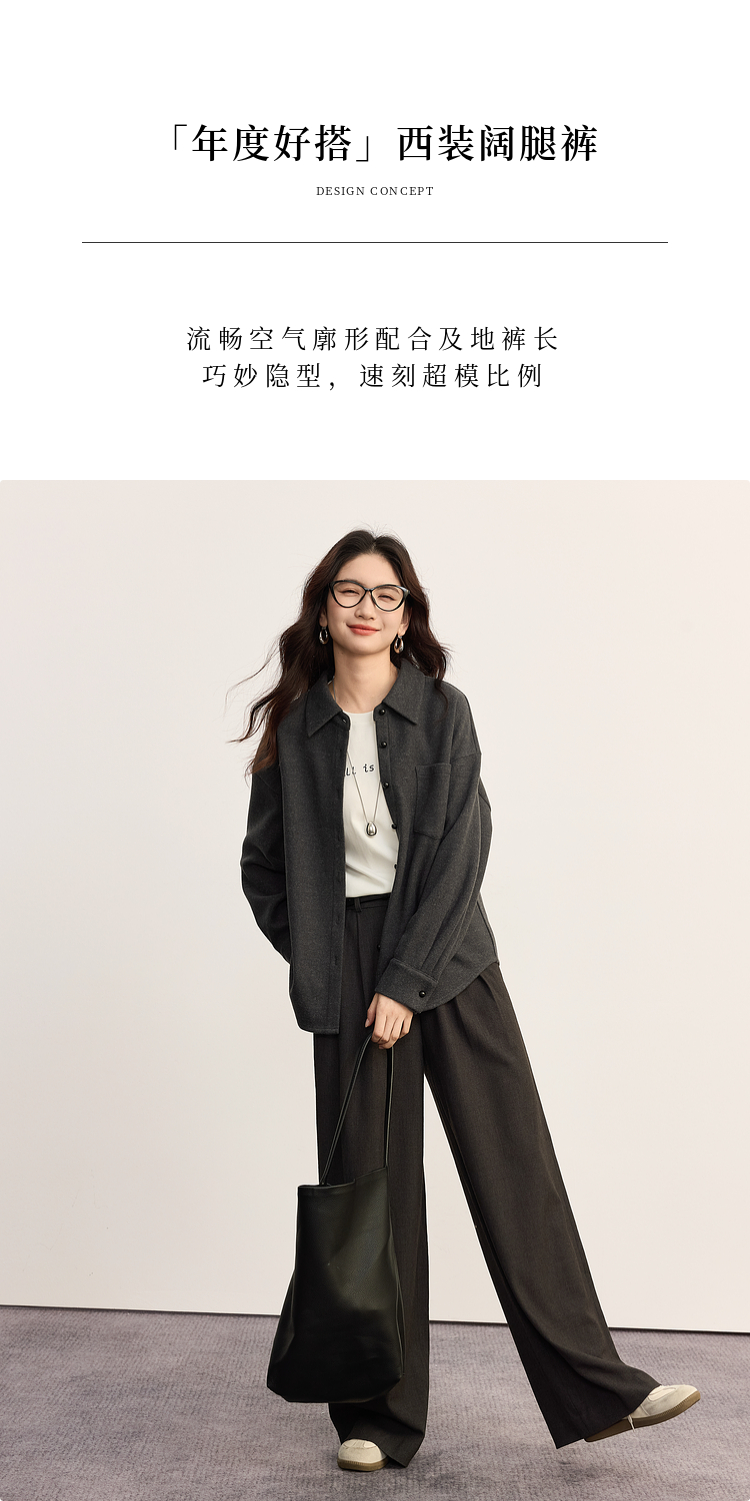 【09/03新品】熙世界阔腿西装裤女2025秋季新款通勤高腰显瘦宽松休闲直筒长裤子