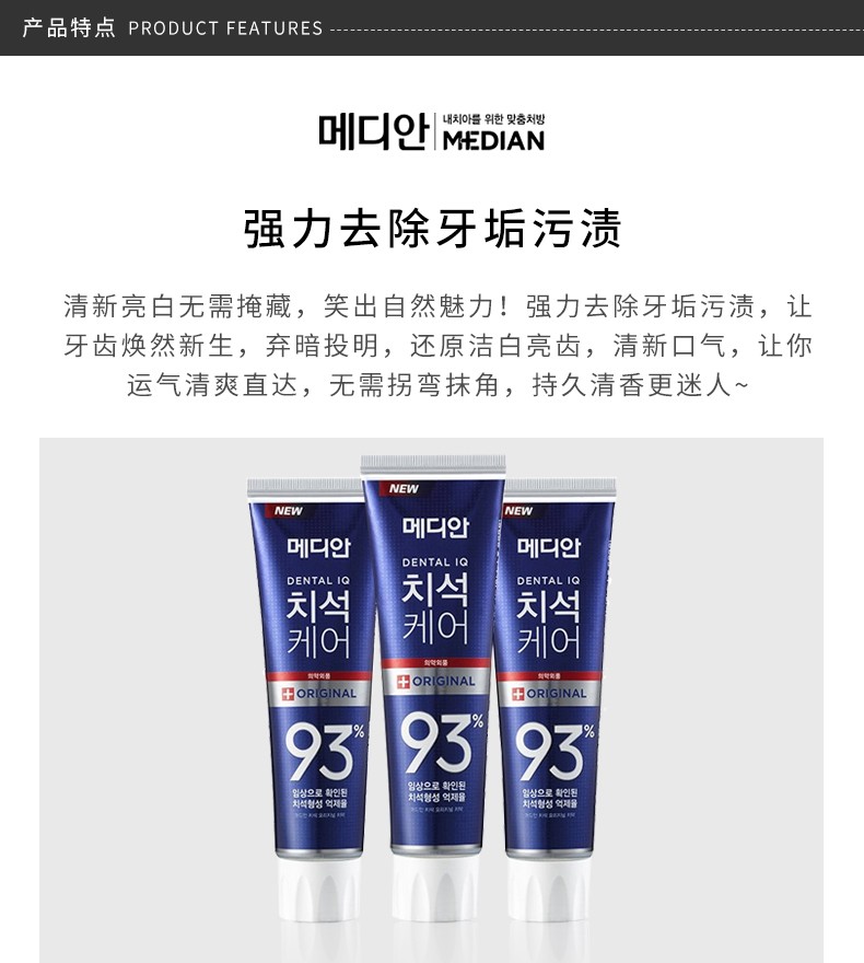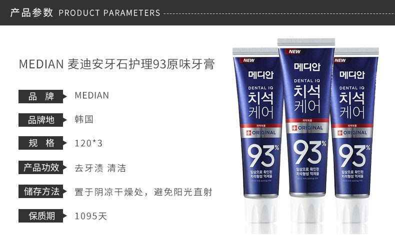 MEDIAN/麦迪安 牙石护理93原味牙膏 120G*3JPY带授权招加盟代理