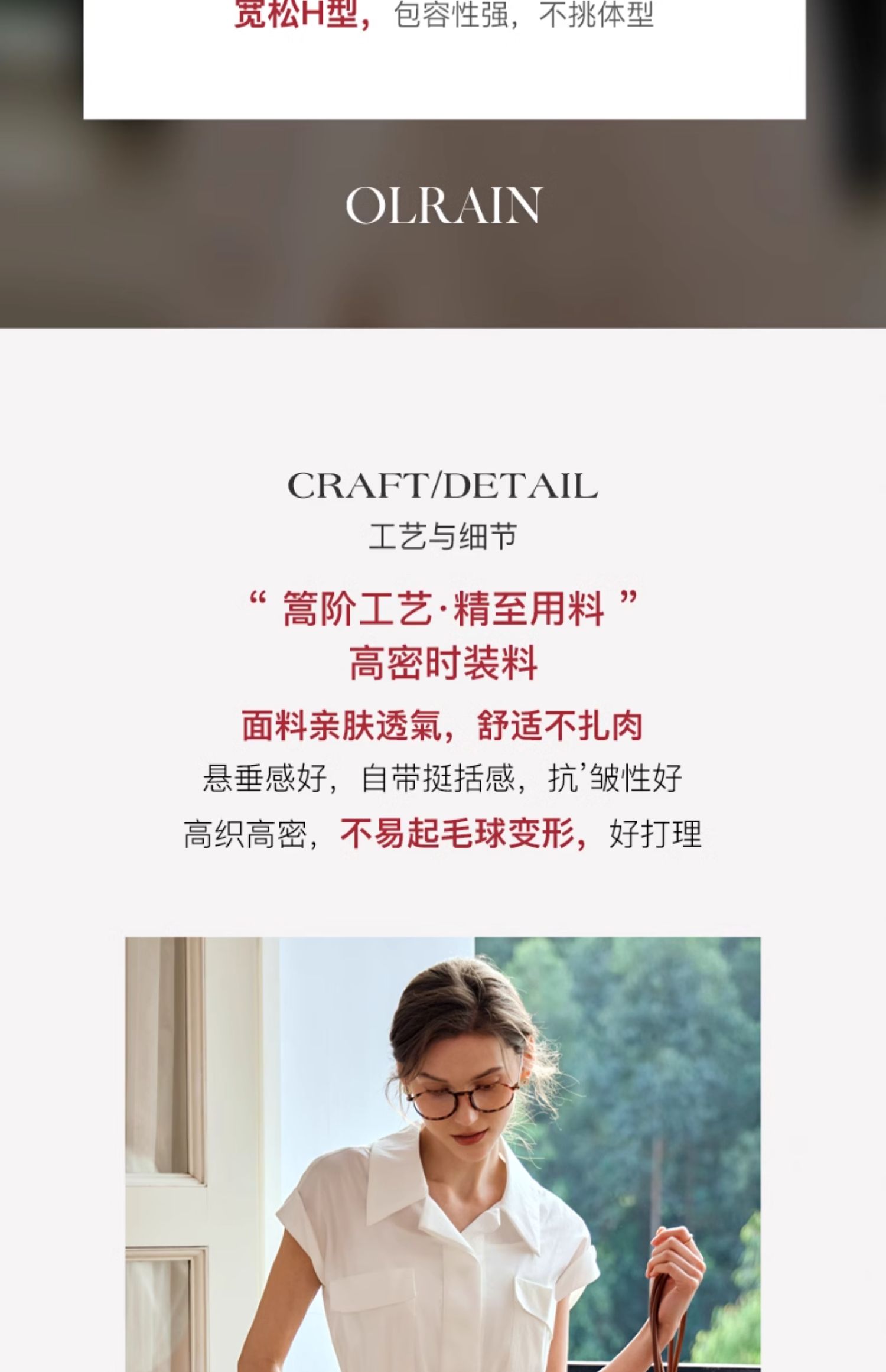 - “精致”是欧芮儿olrain品牌文化的核心,欧芮儿认为,精致的女人,不但要外在动人,更要内在迷人,内外兼修,有魅力、有气质、有内涵,自信而不自傲,优雅而不矫揉,自有万种风情而不轻浮,更不故作矜持。