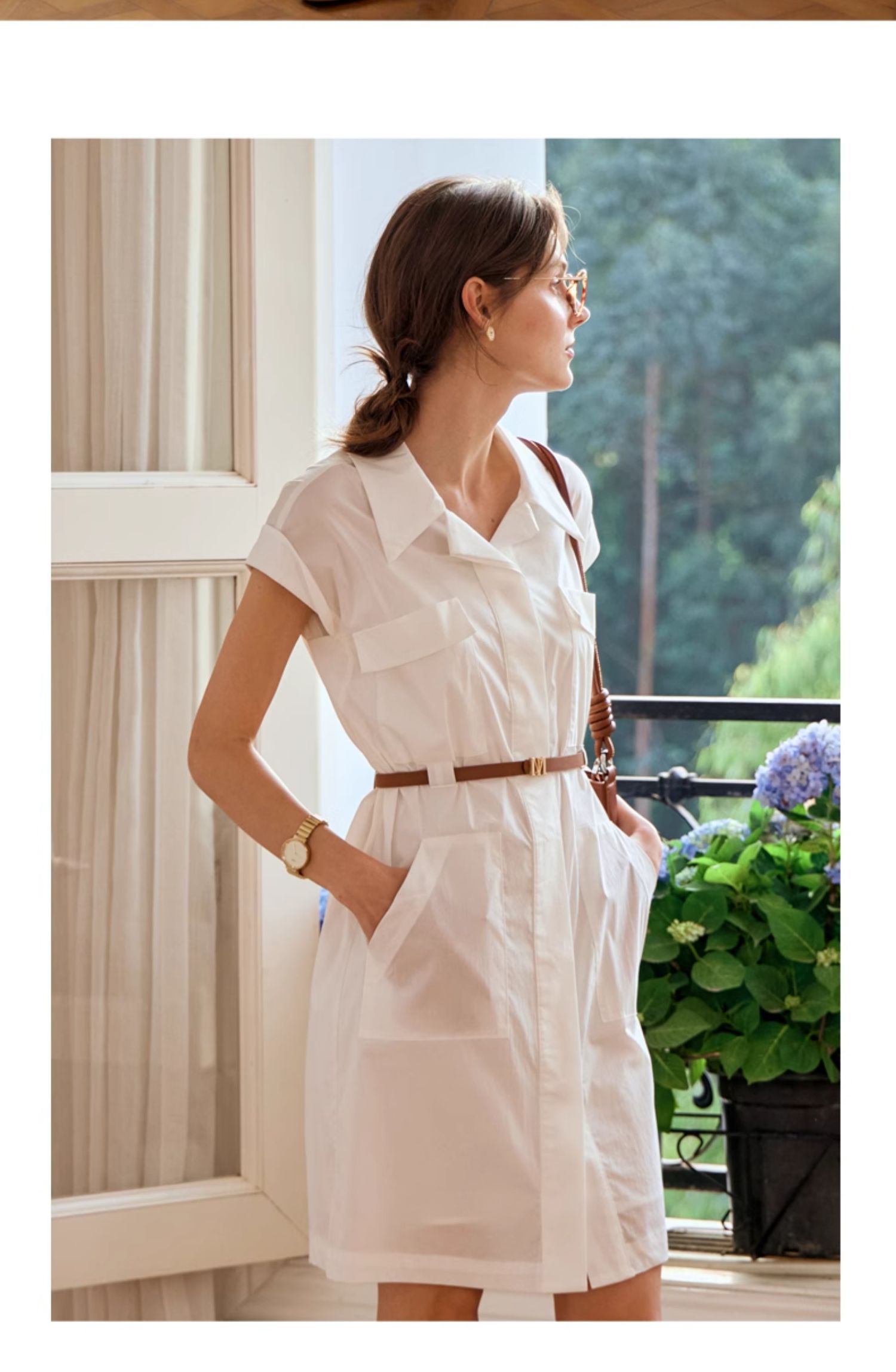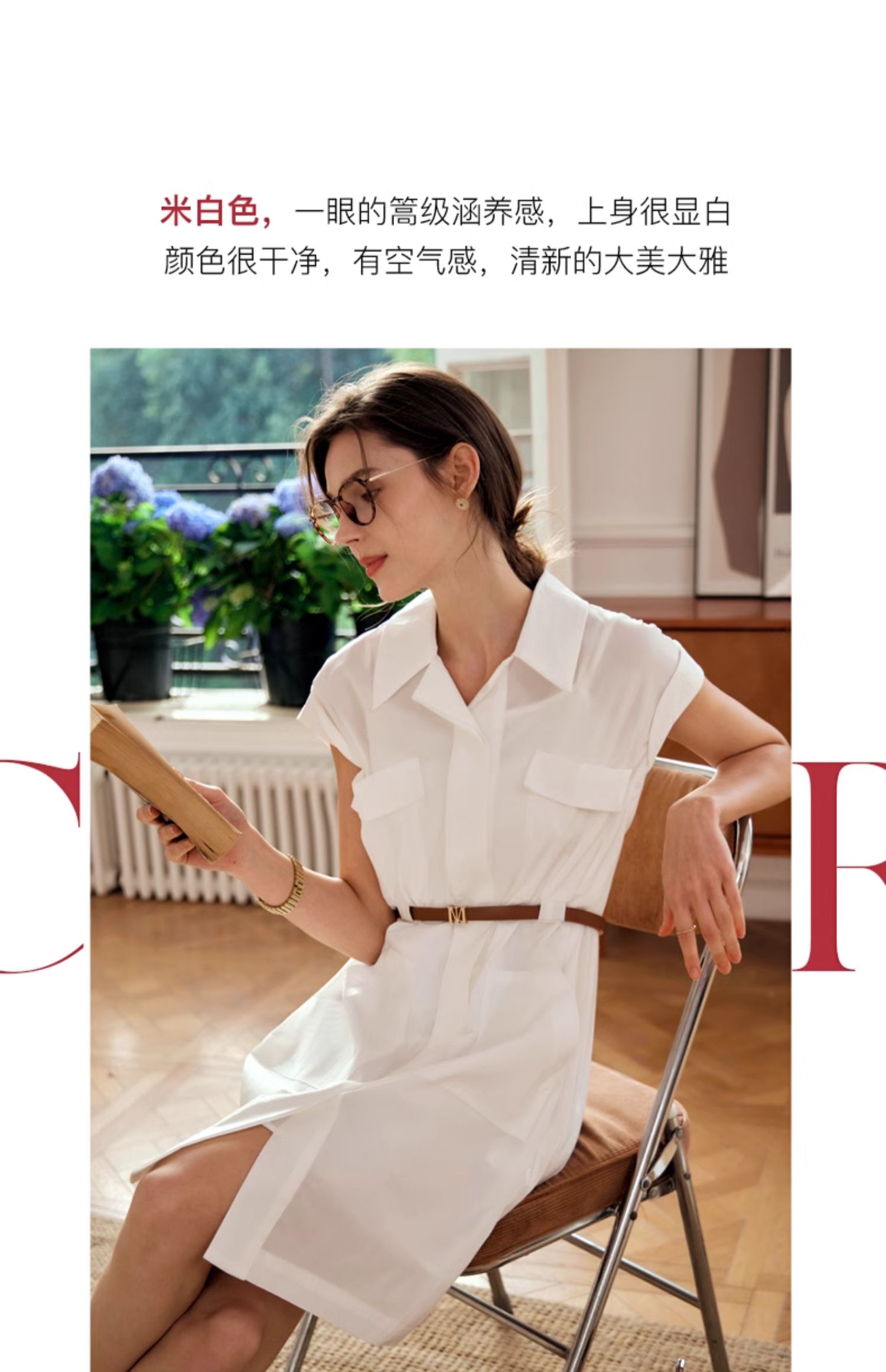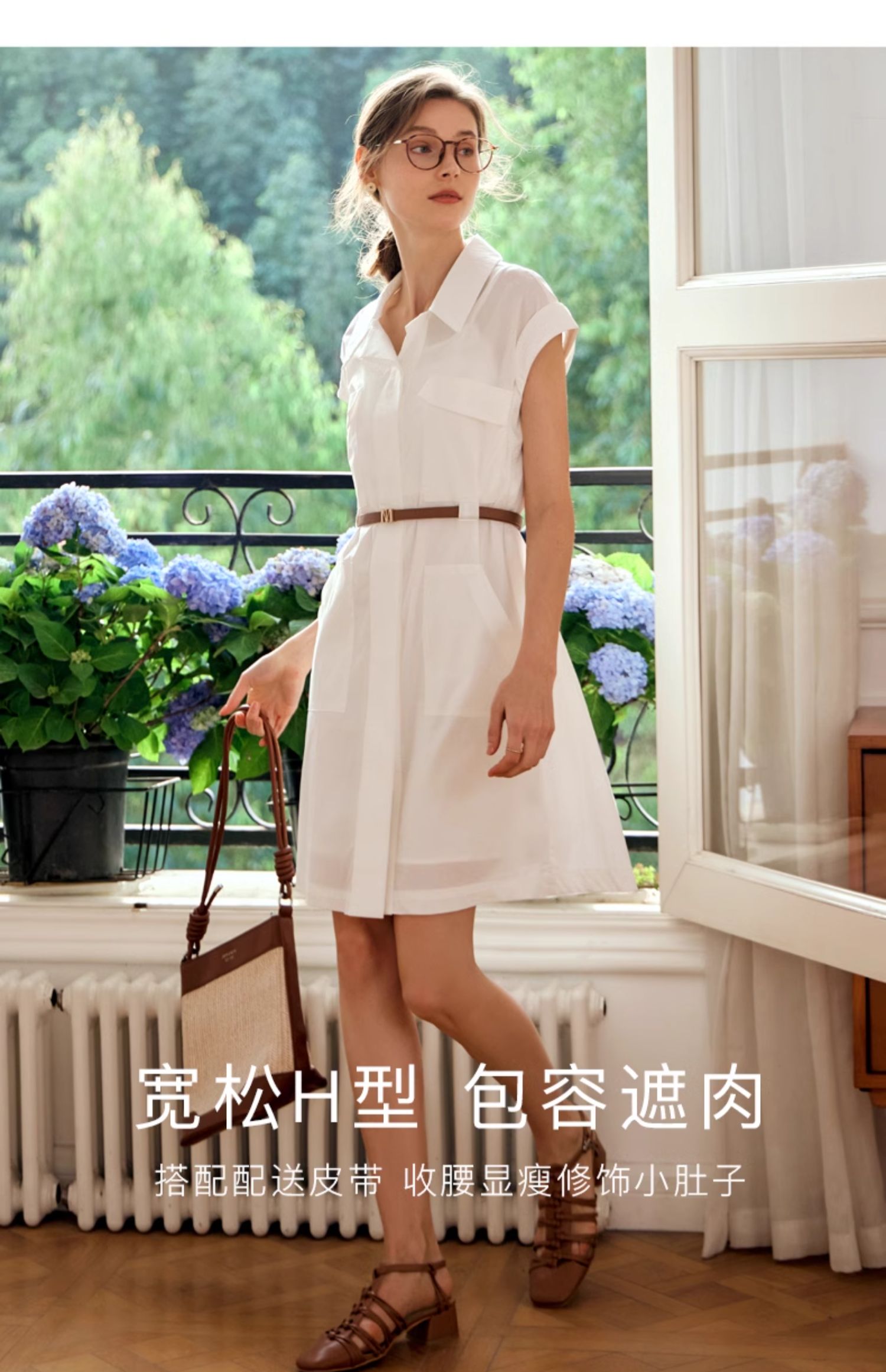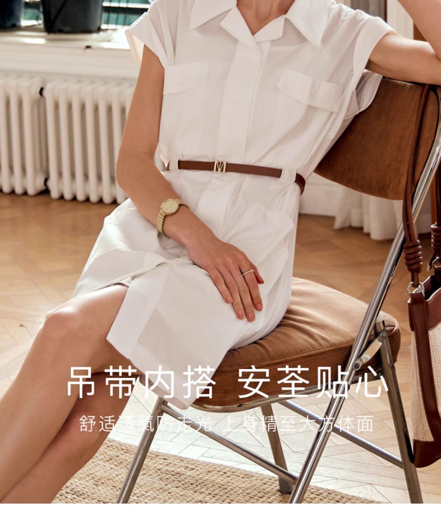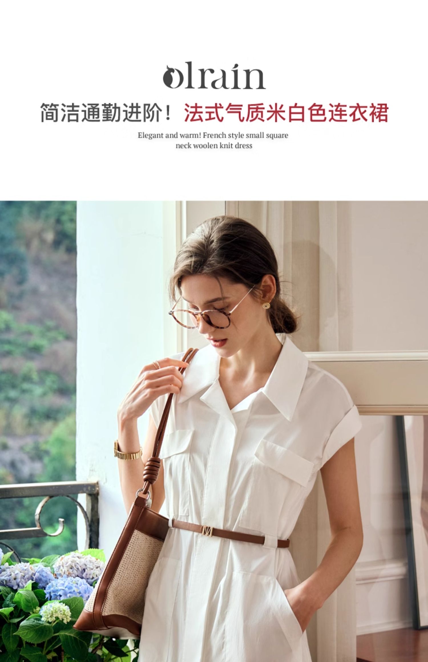 OLrain欧芮儿法式米白色连衣裙女春夏2024年新款气质百搭衬衫裙