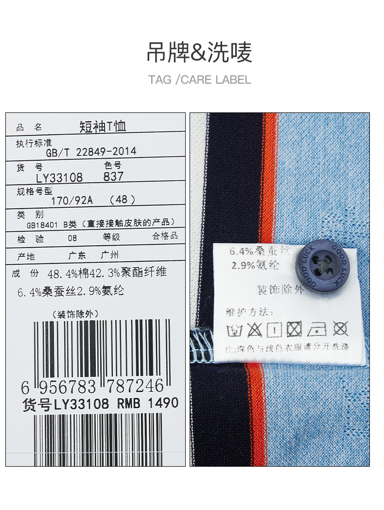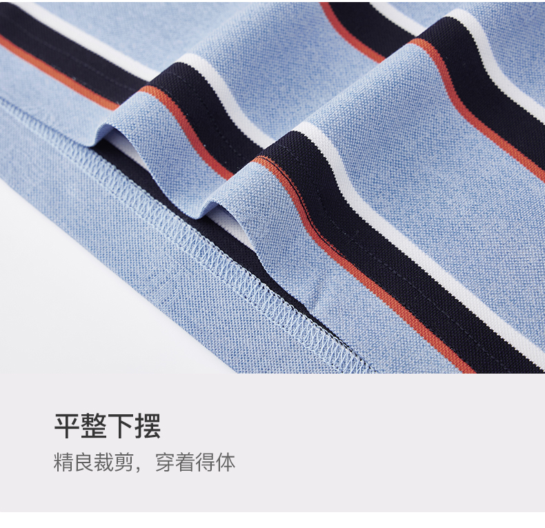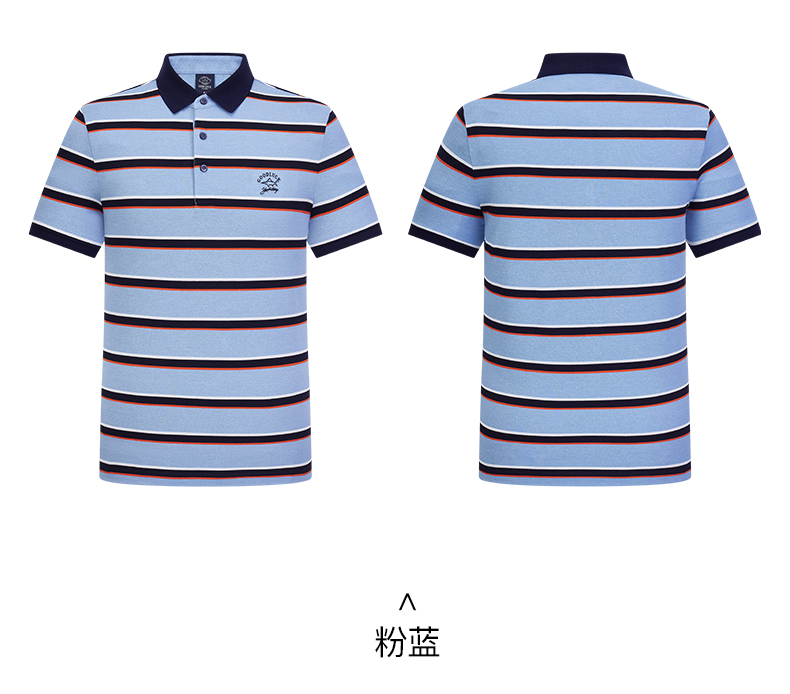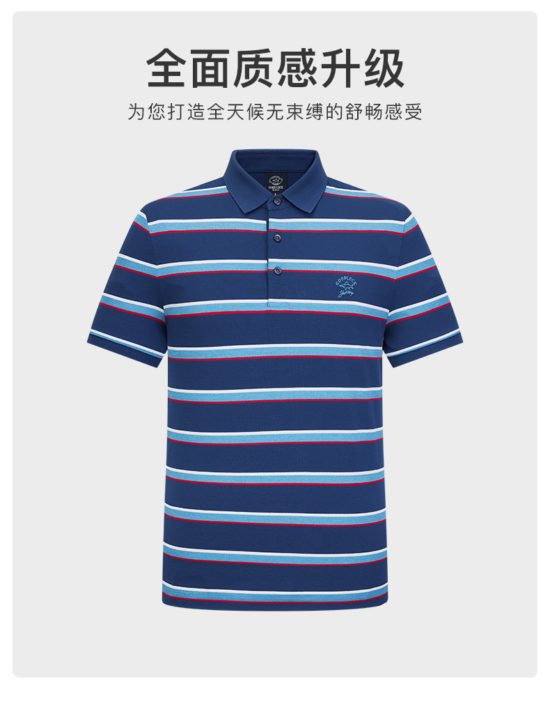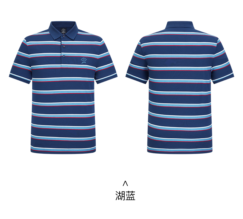 【桑蚕丝】德鲨条纹短袖POLO衫男青年时尚撞色翻领上衣T恤