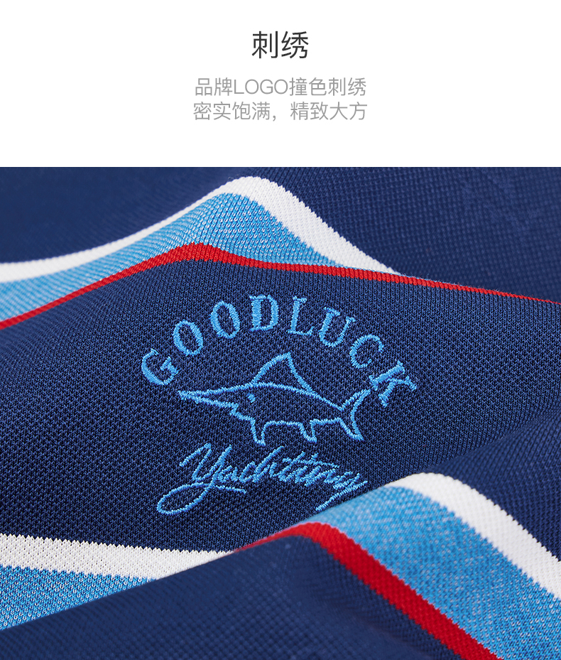 GOOD LUCK/德鲨100%棉海洋风撞色领边时尚休闲T领长袖T恤FY22102-818