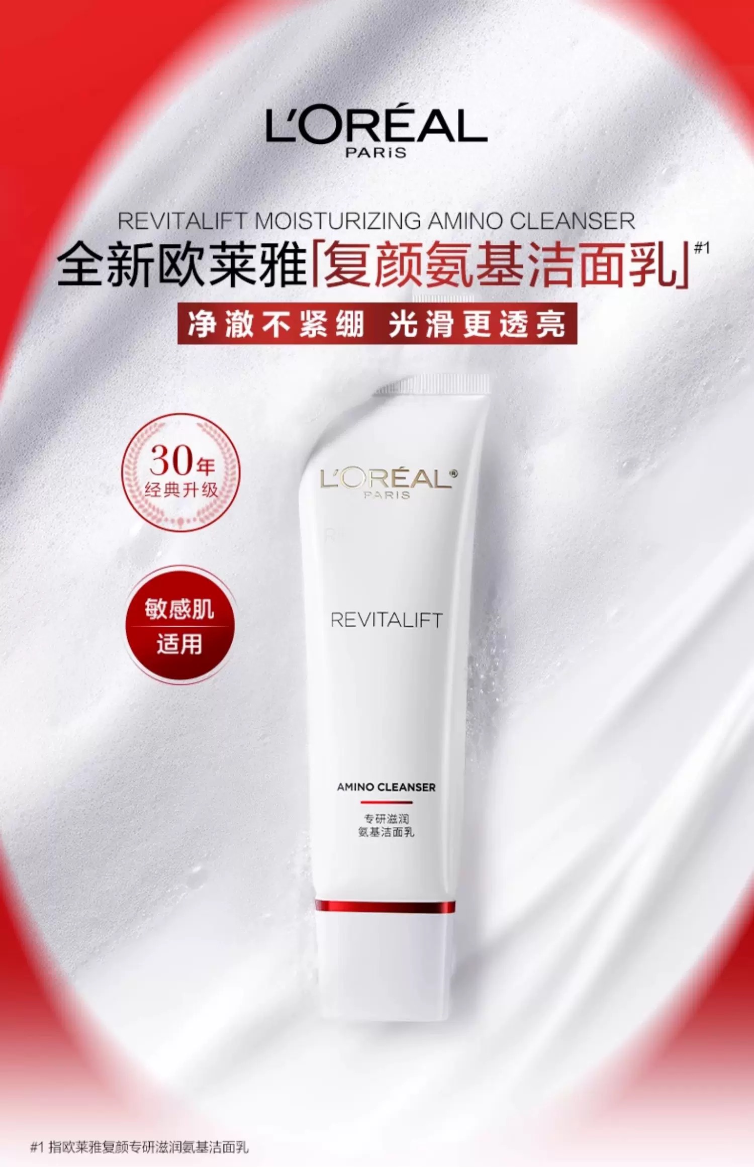欧莱雅复颜氨基酸洗面奶洁面乳深层温和清洁毛孔护肤品不紧绷女125ml