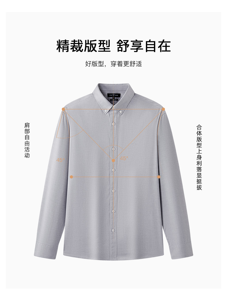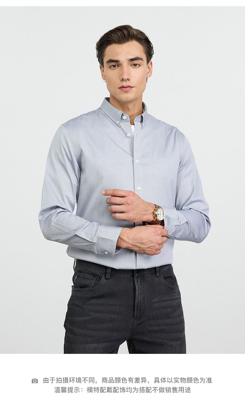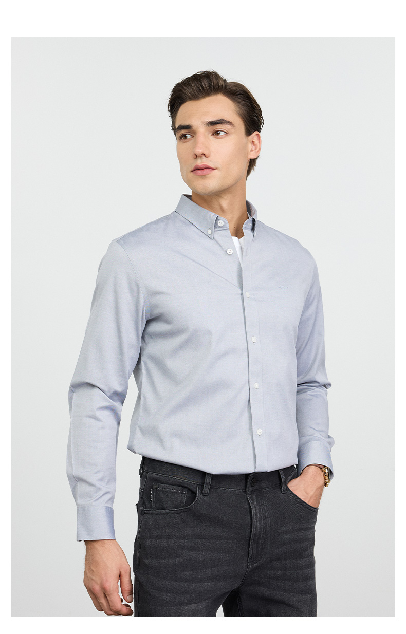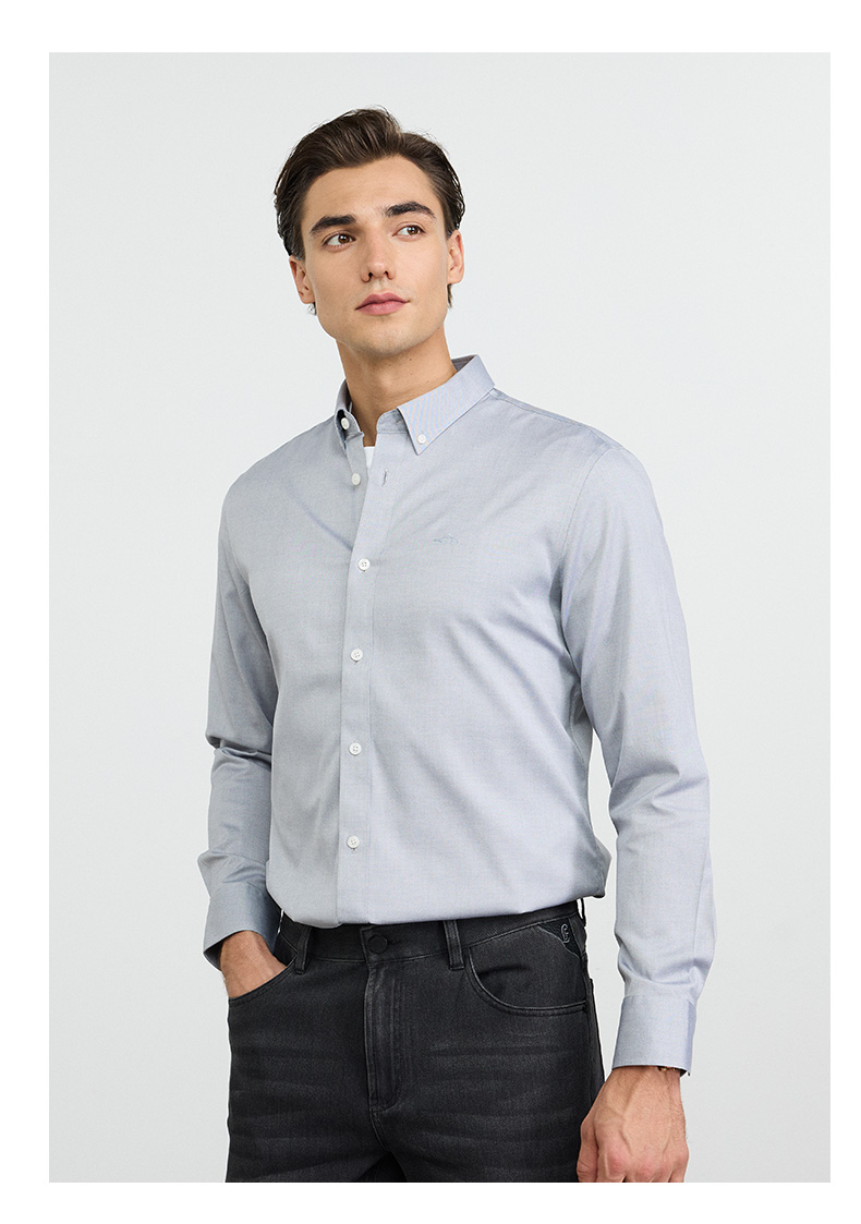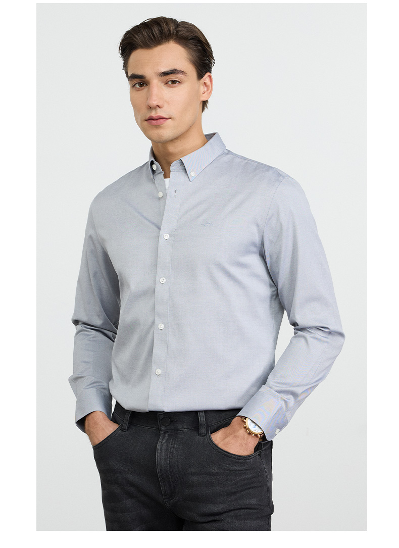 【纯棉】德鲨男装商务长袖衬衫2026春新款休闲纯色打底上衣男衬衣