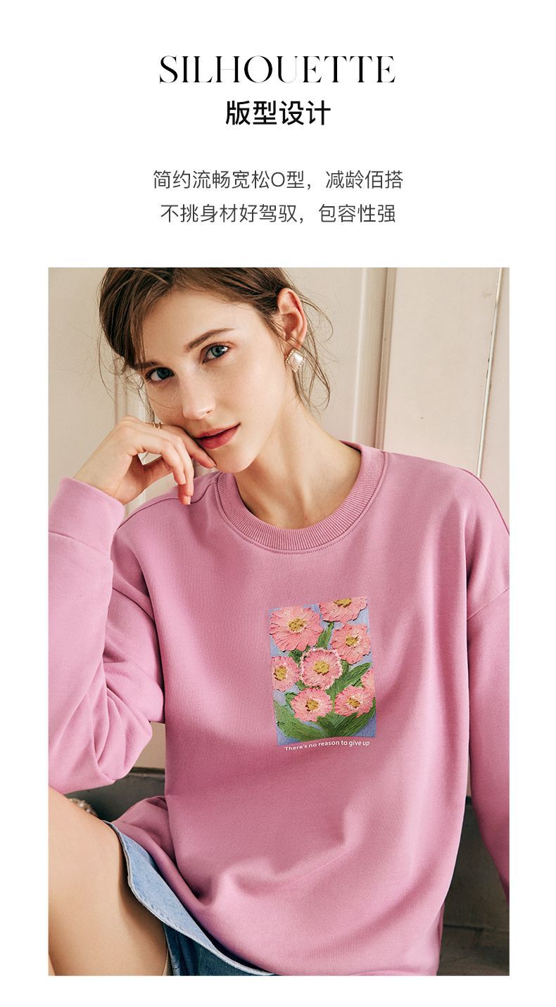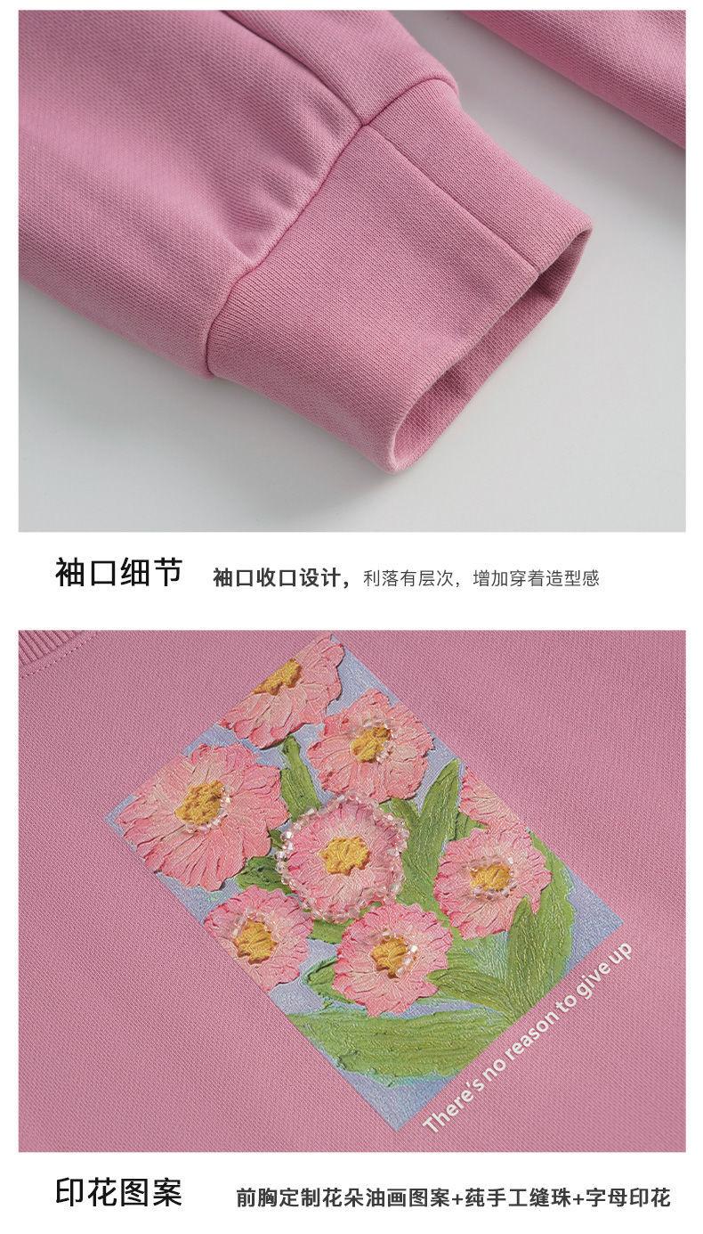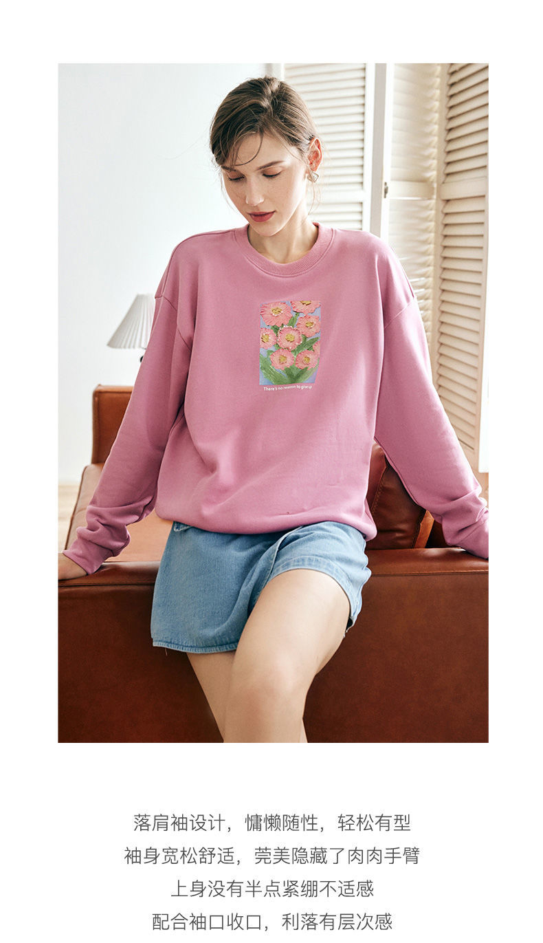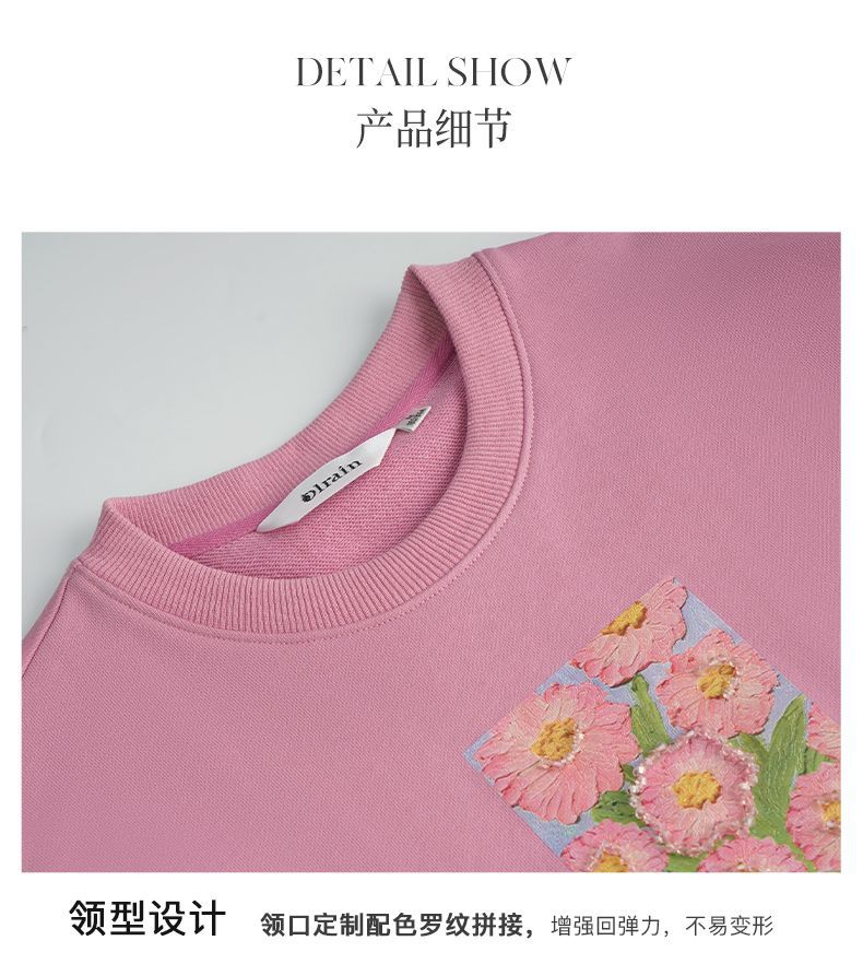 OLrain欧芮儿法式玫粉色卫衣女秋季2022新款美式洋气减龄圆领上衣