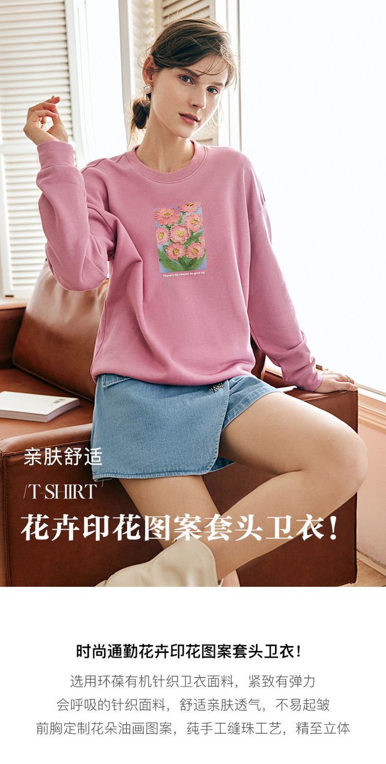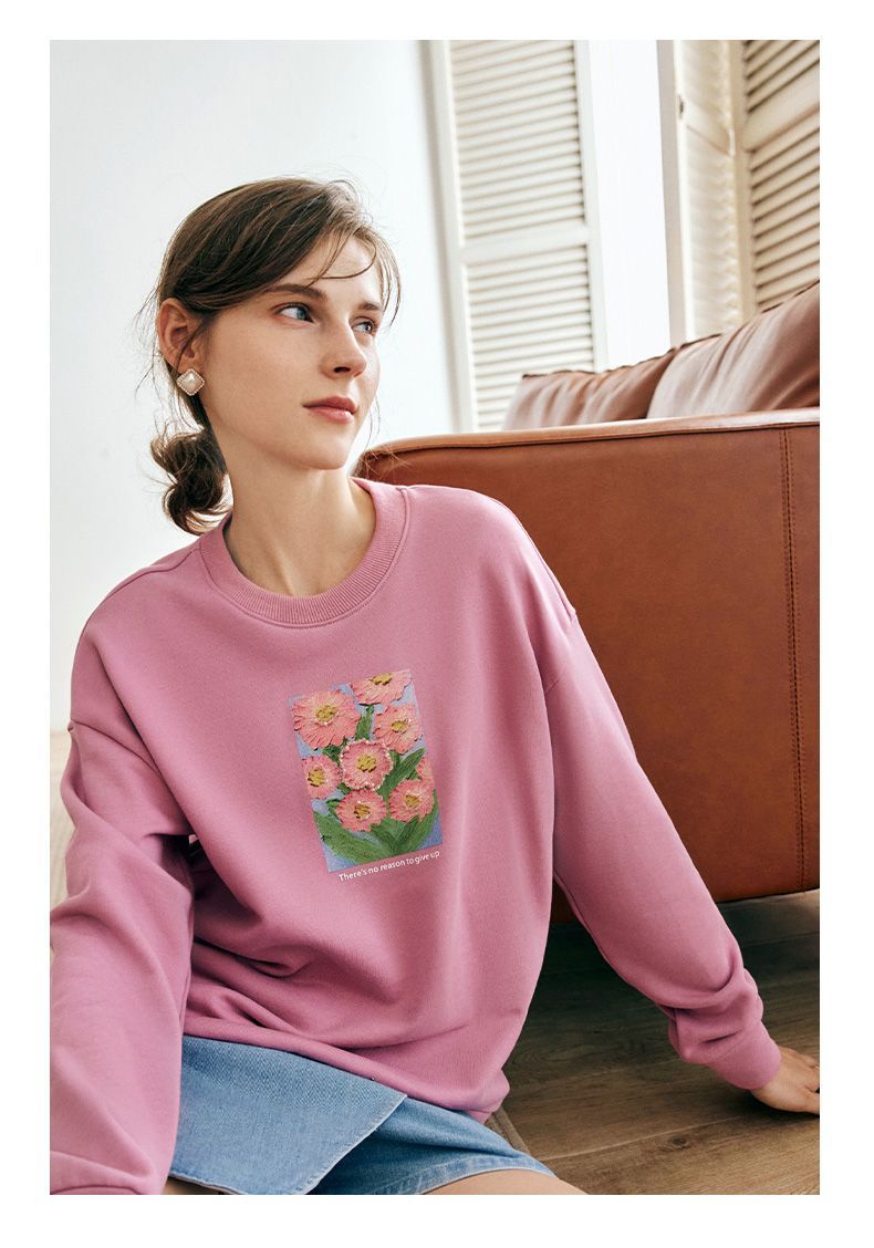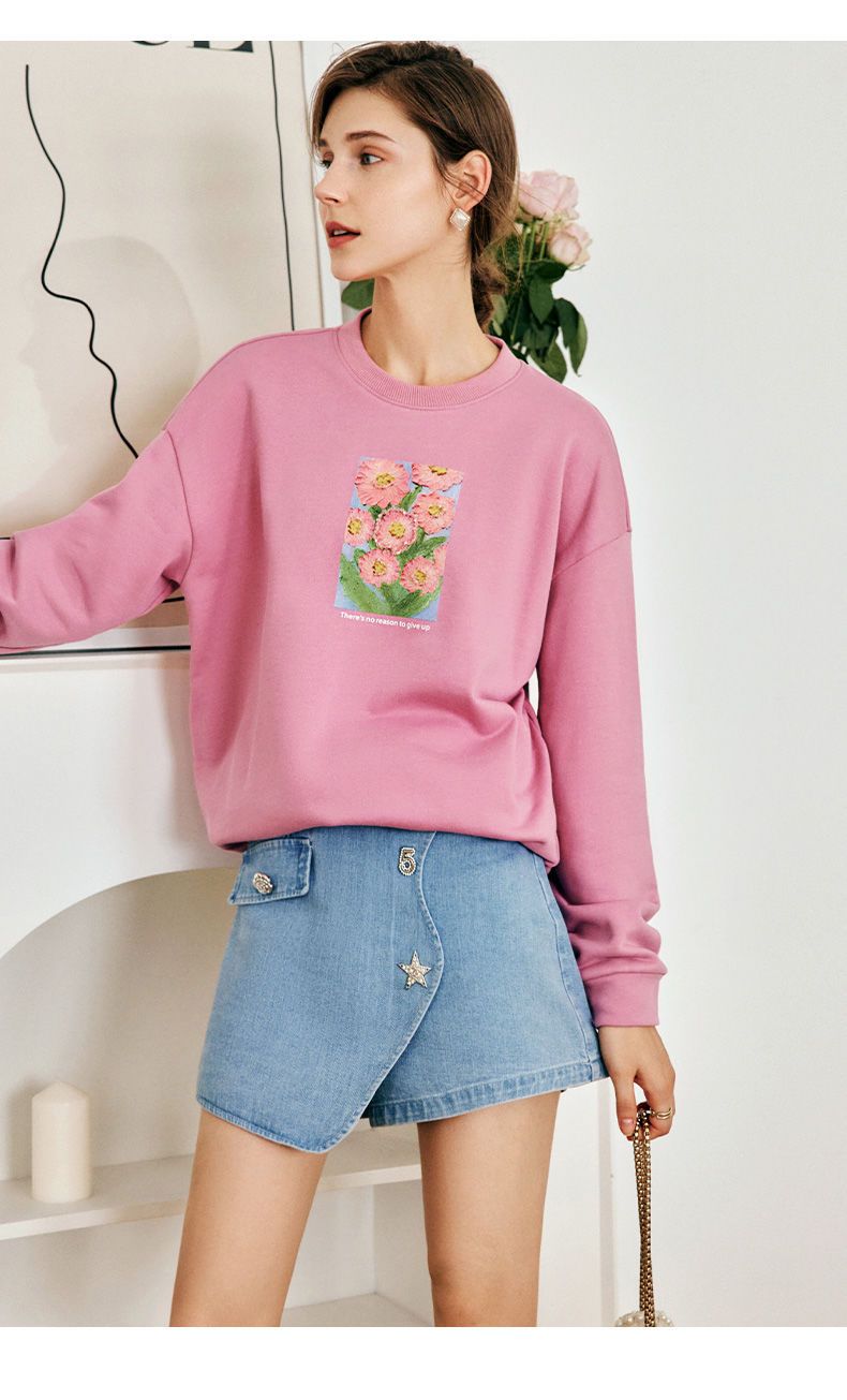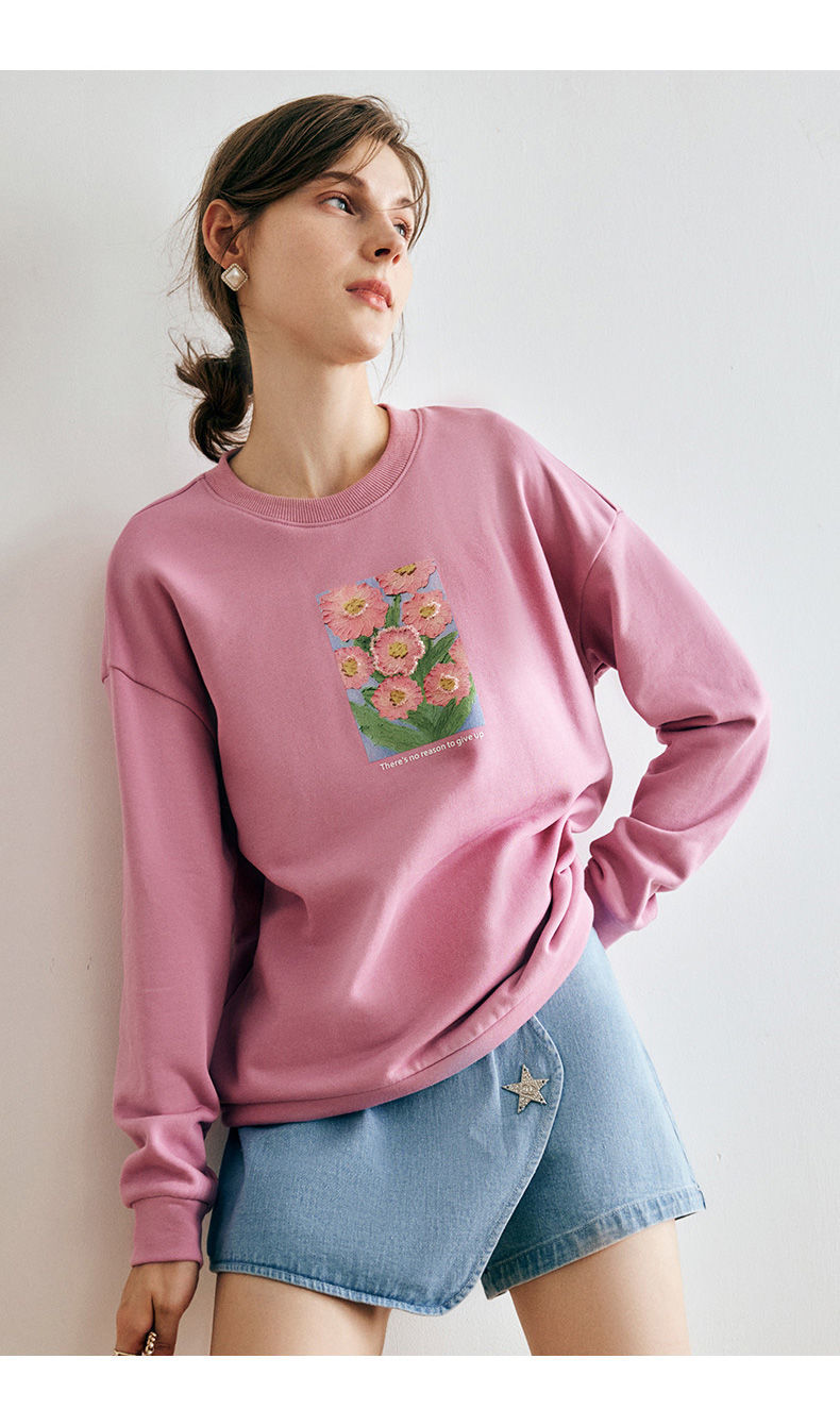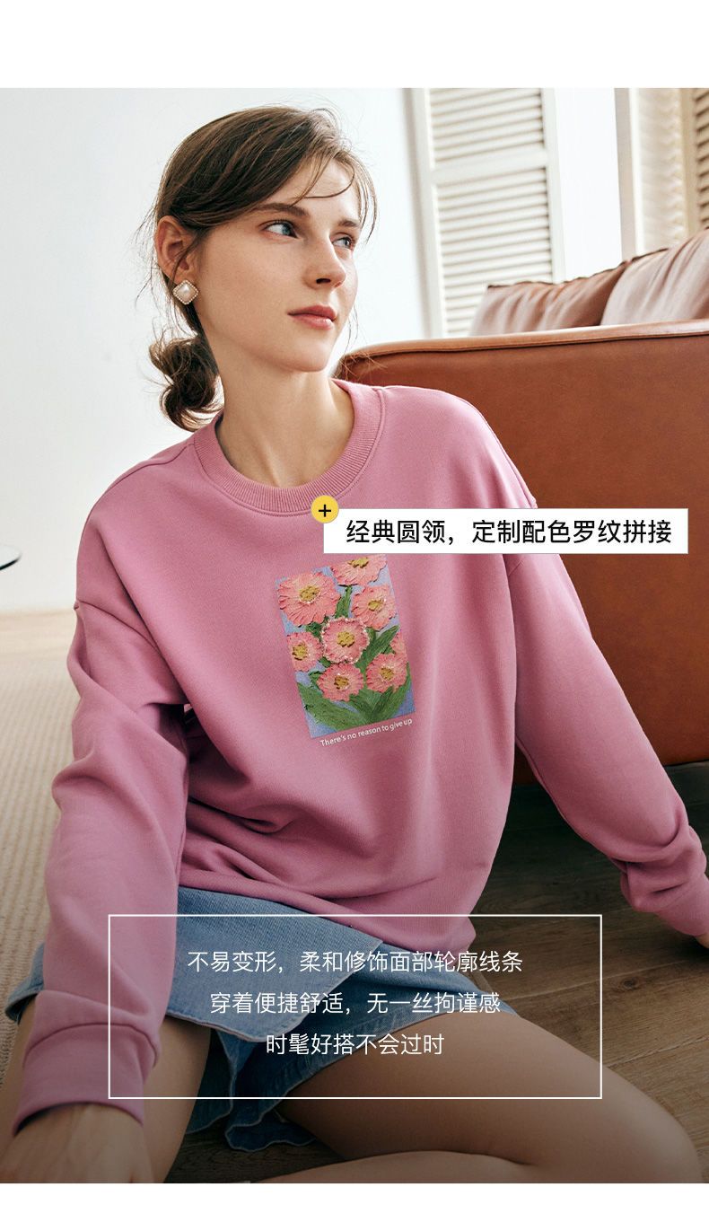 OLrain欧芮儿法式玫粉色卫衣女秋季2022新款美式洋气减龄圆领上衣