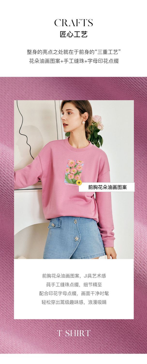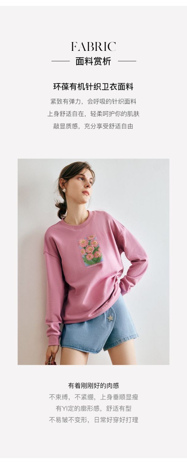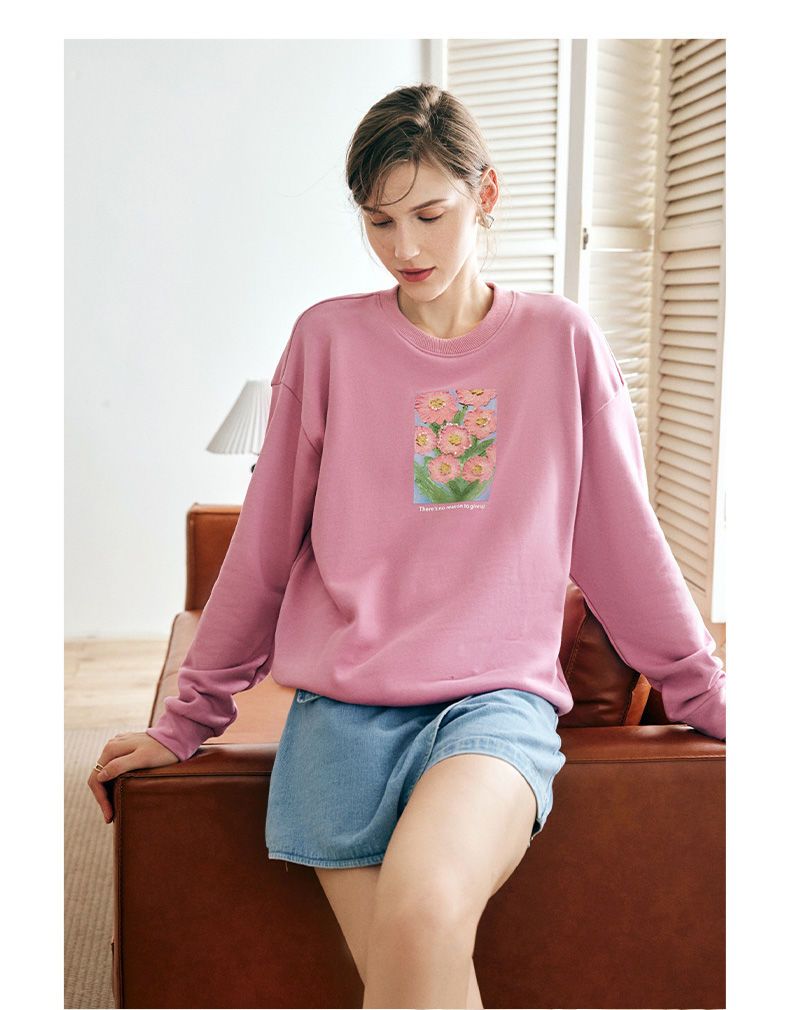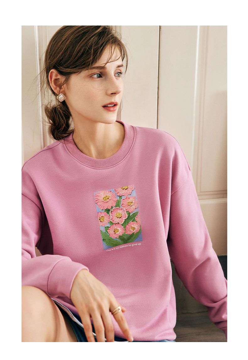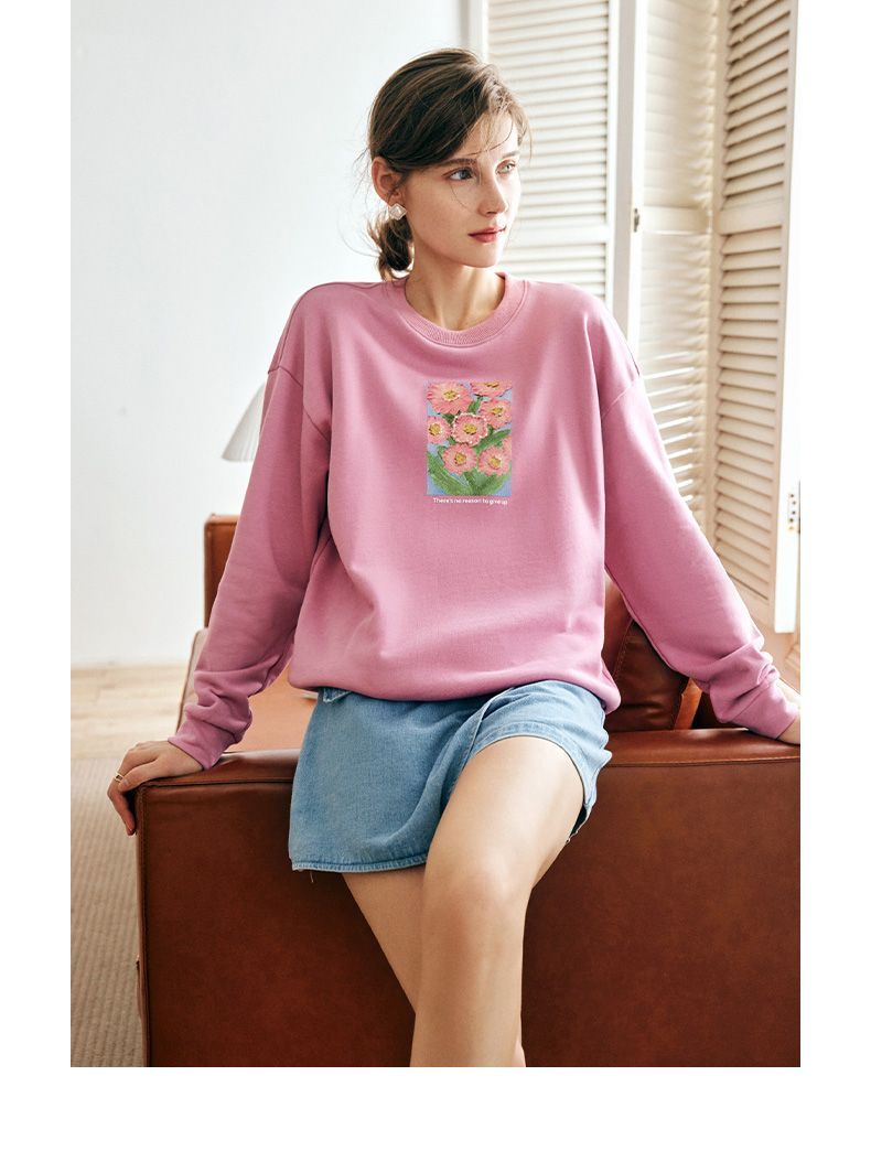 OLrain欧芮儿法式玫粉色卫衣女秋季2022新款美式洋气减龄圆领上衣