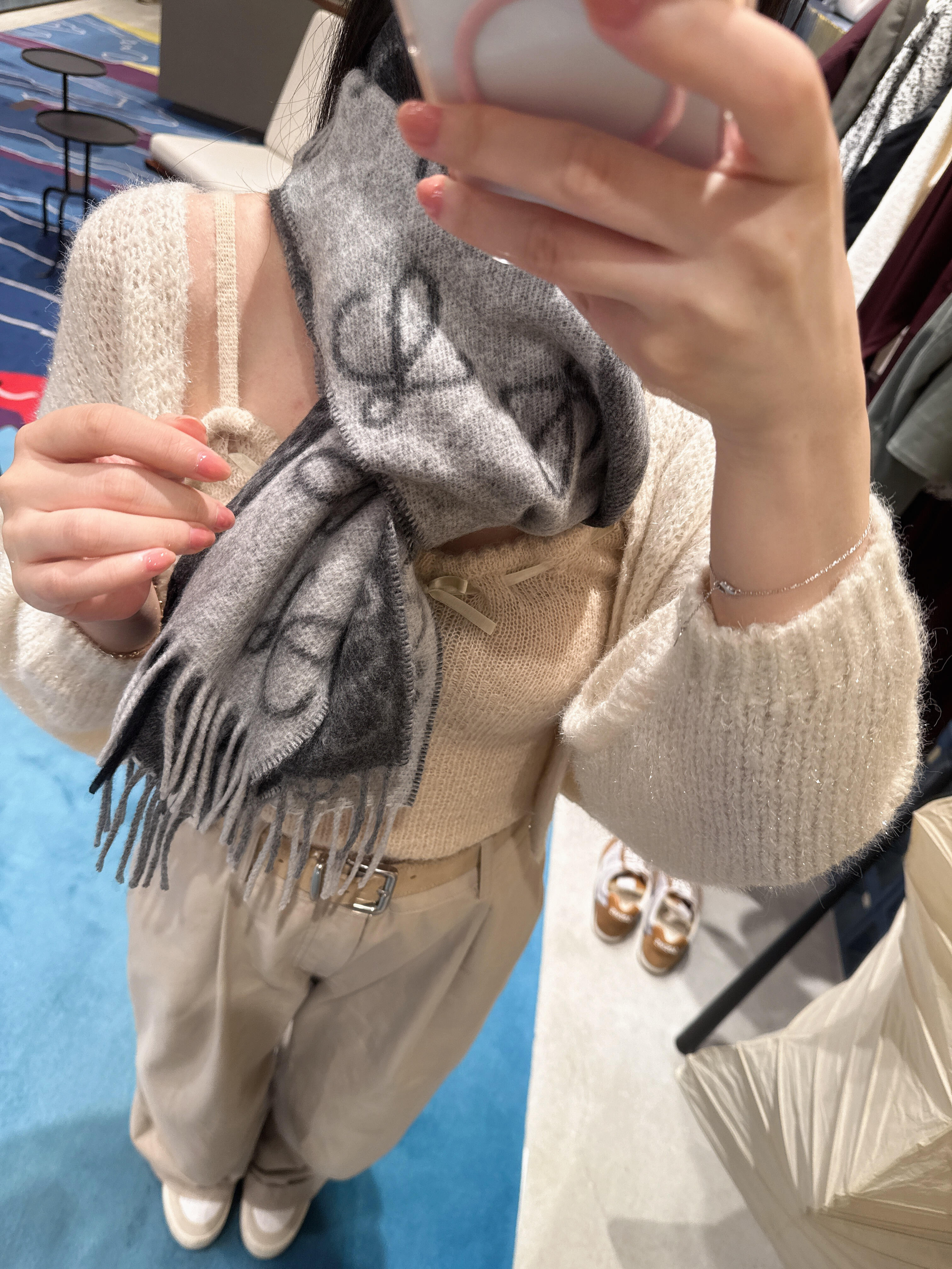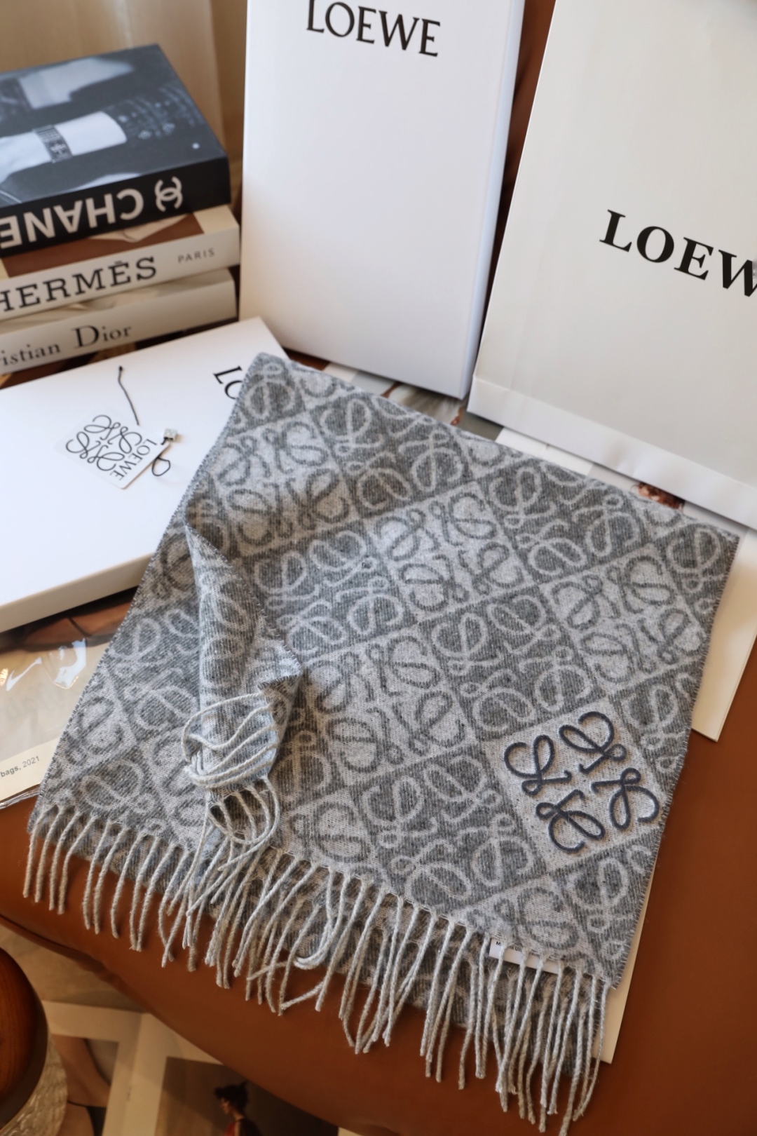 【代购级 出入专柜无压力】 Loewe 罗意威棋盘格围巾 专店缺货爆款 中性风 简约大气的标识提花 高级感十足 简约百搭。送礼也是超级推荐!