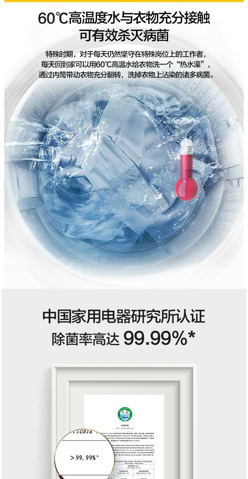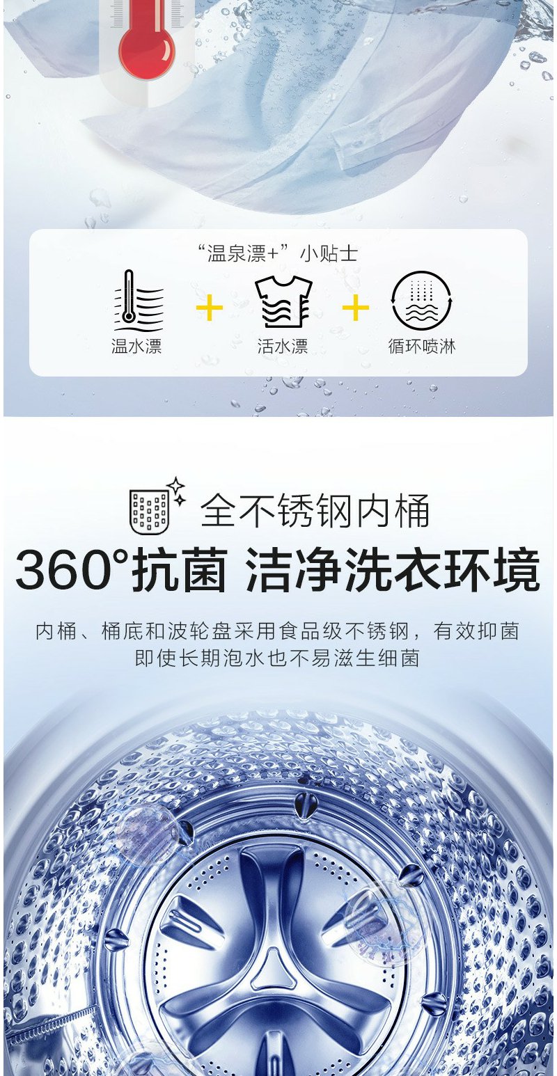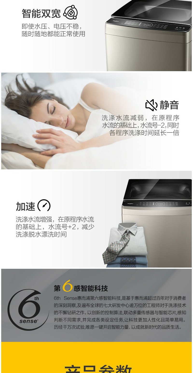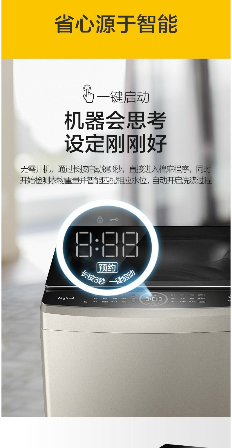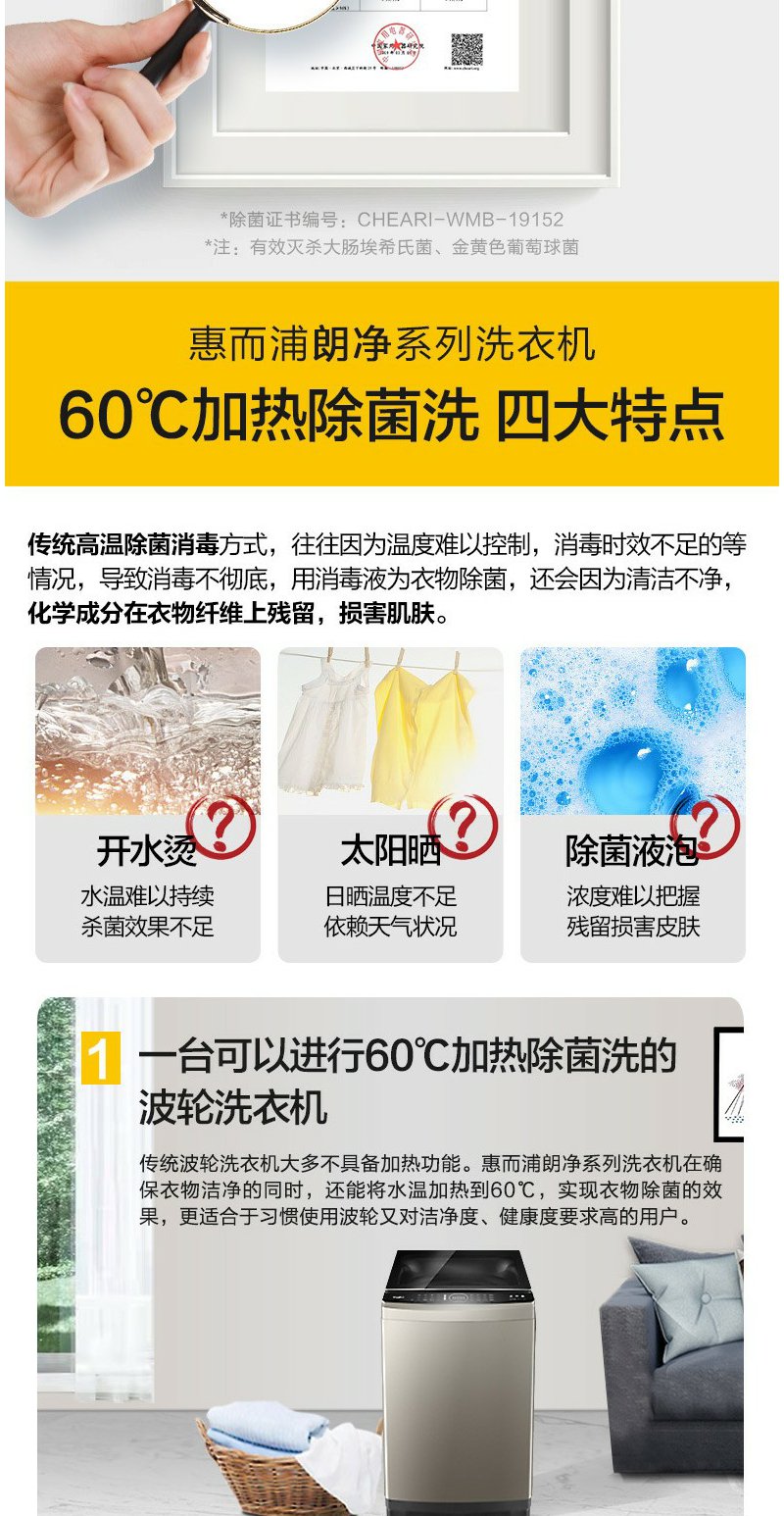惠而浦 朗净系列10公斤 全自动波轮家用洗衣机 高温加热洗桶除菌DD变频电机WVD101521BRG流沙金