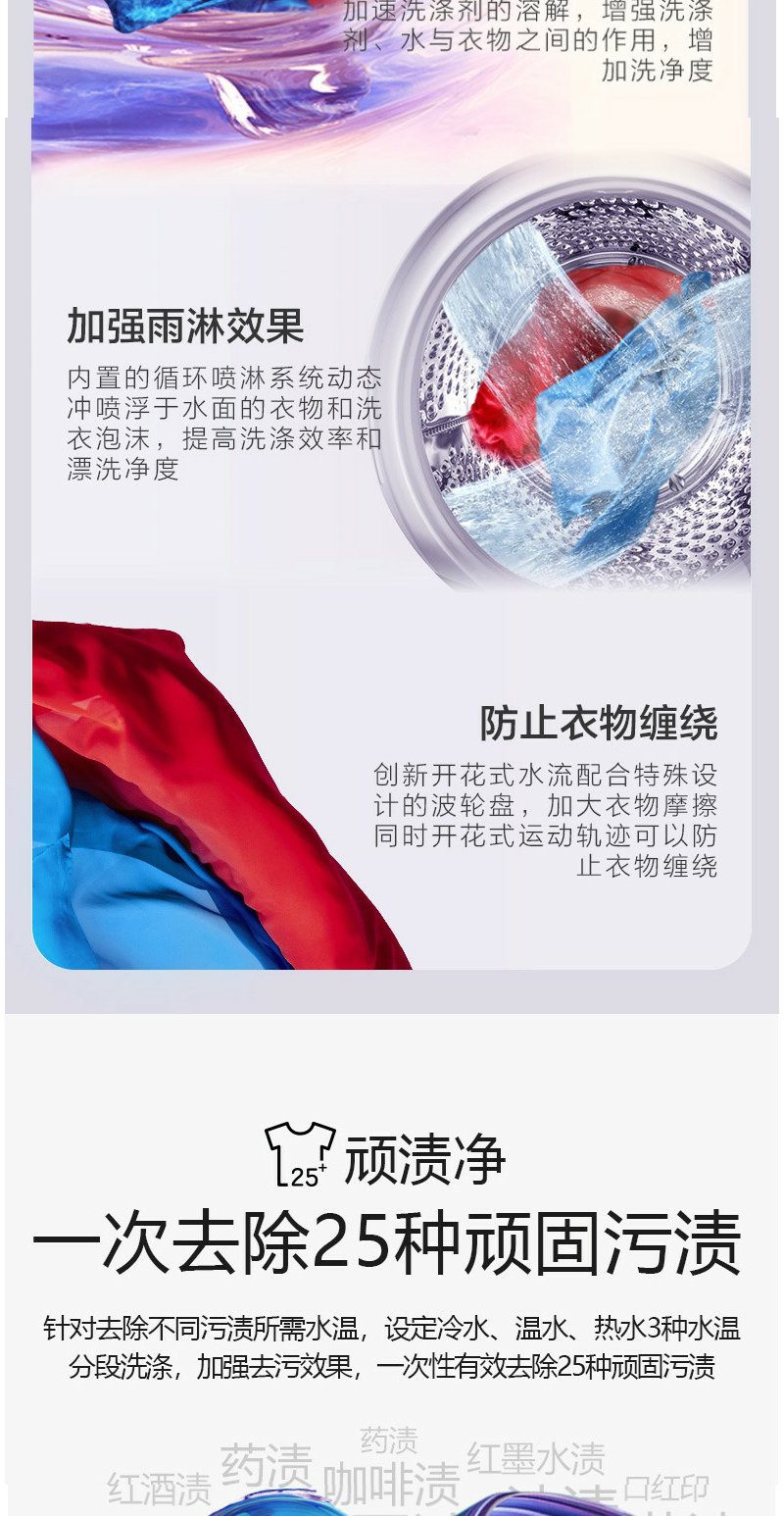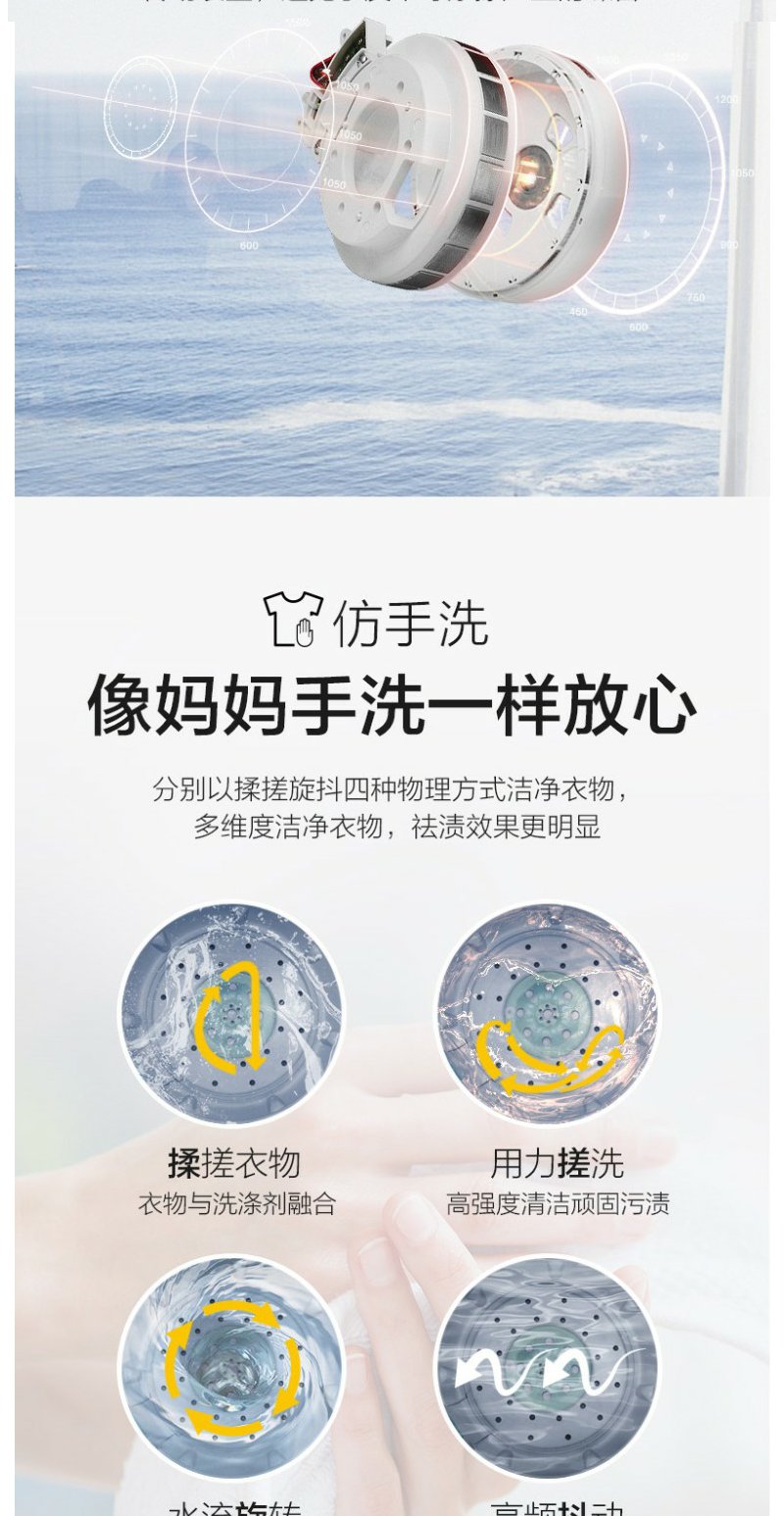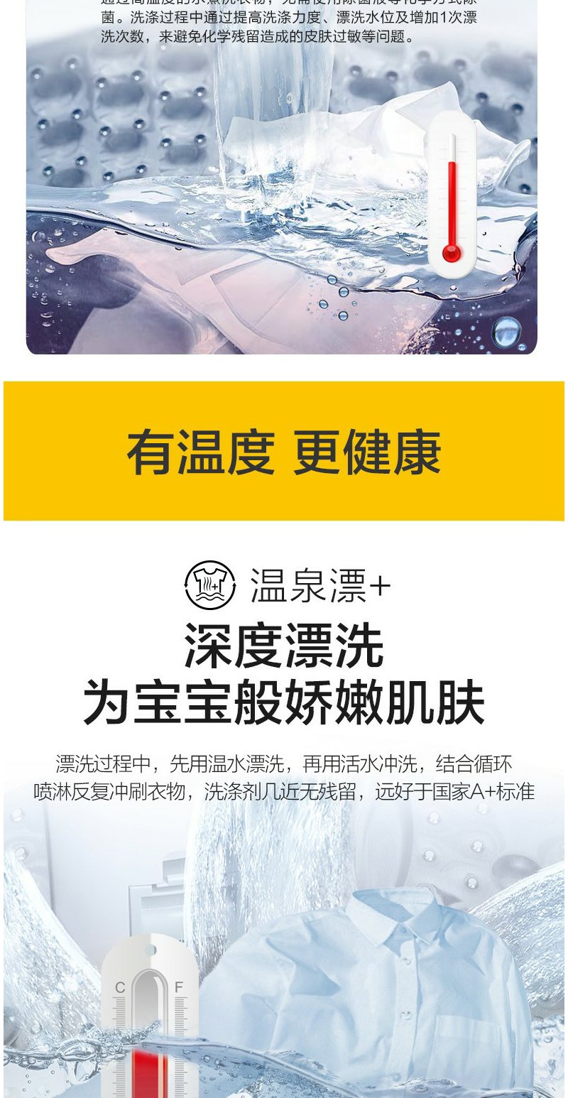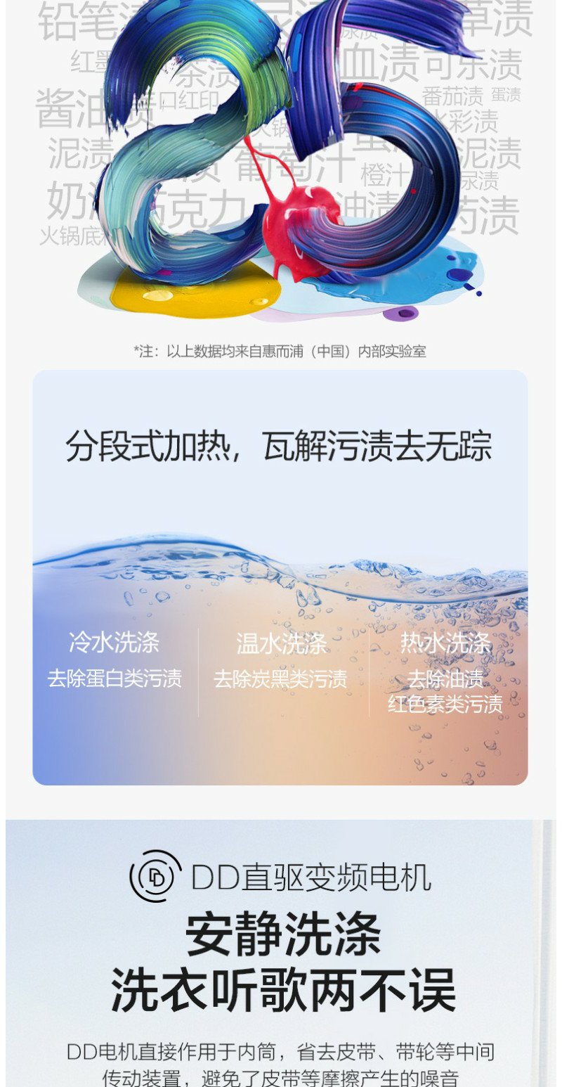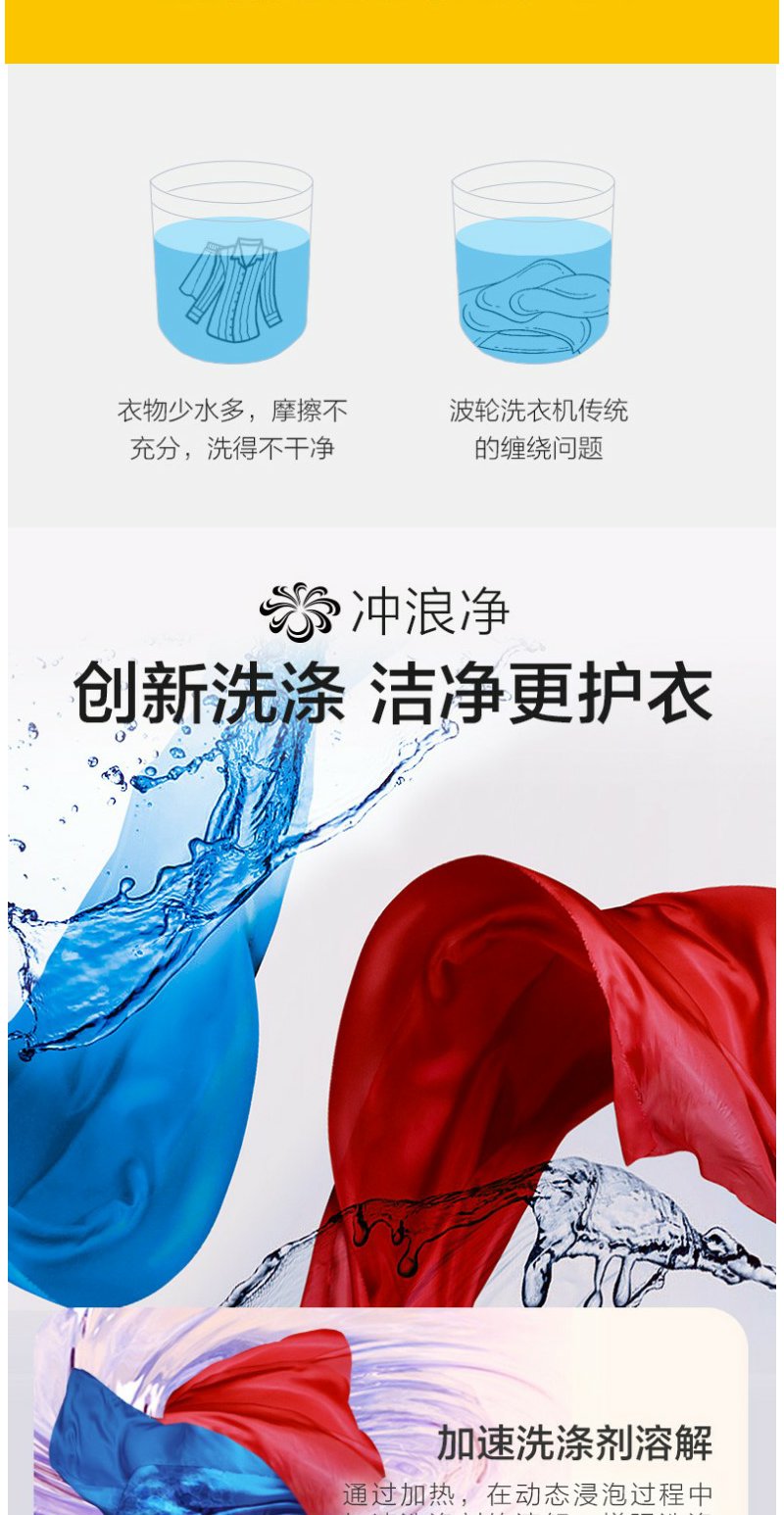 惠而浦 朗净系列10公斤 全自动波轮家用洗衣机 高温加热洗桶除菌DD变频电机WVD101521BRG流沙金