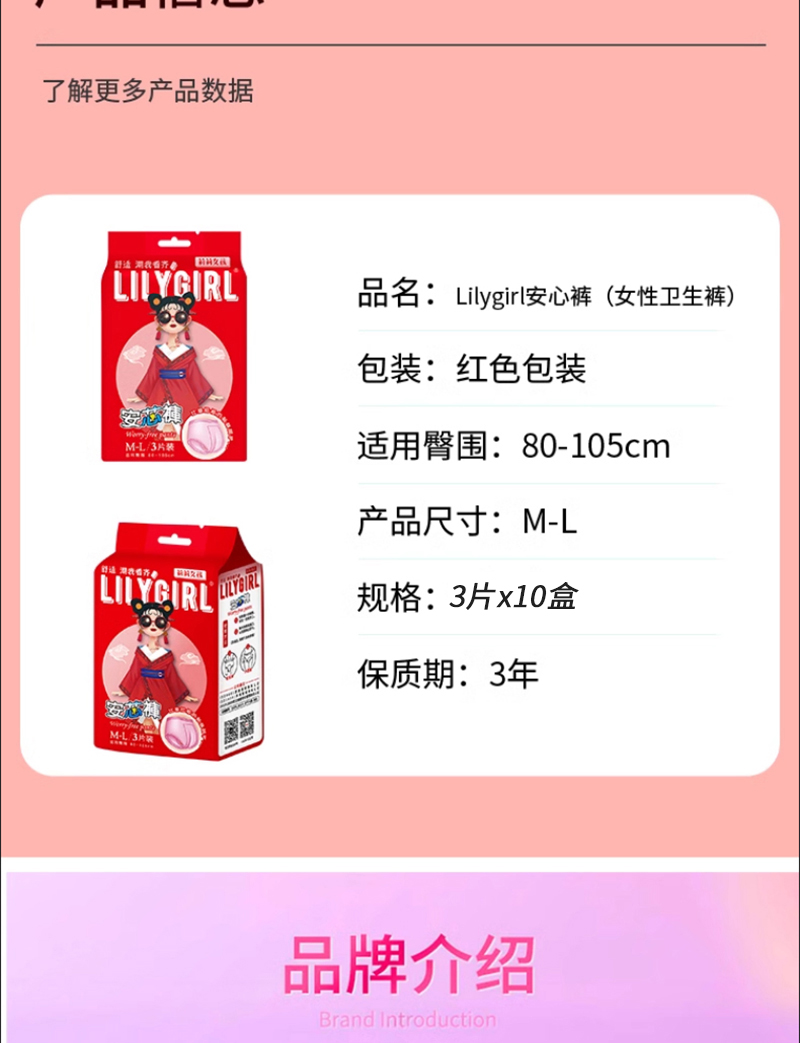 LILYGIRL安芯裤M-L码3片*10盒【有效期至2026年3月】