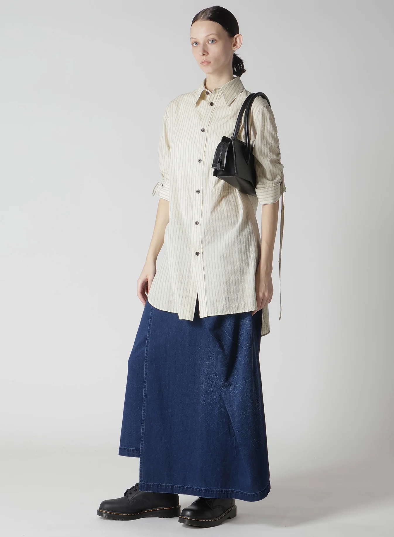 独特的半光泽皮革包,具有未完成的切割外观,类似于切成两半的方形包。每个底部都经过精心手工打磨,呈现出磨损的线条外观。可拆卸肩带可将其转换为手提包。由于汗水和摩擦,皮革可能会略微褪色