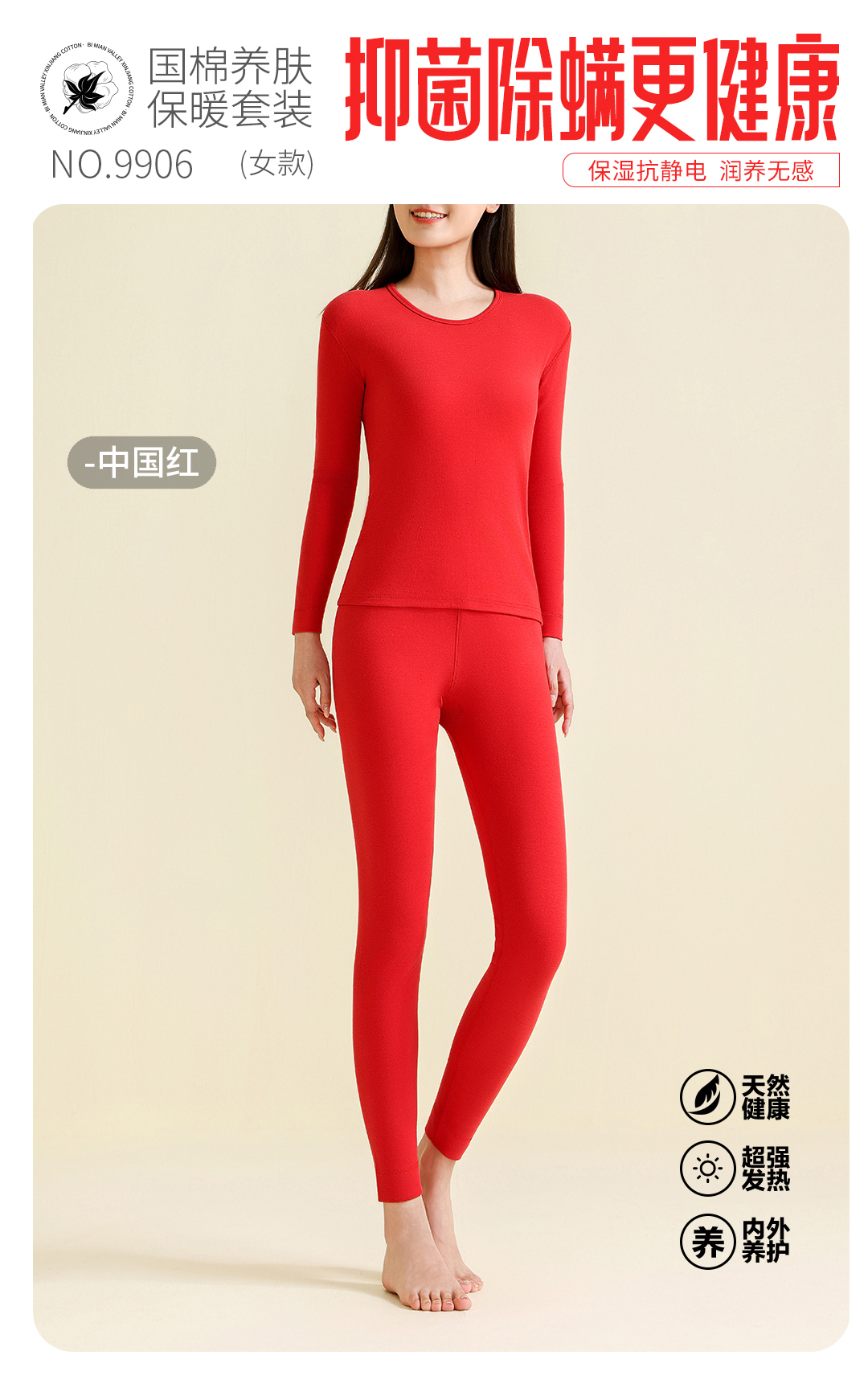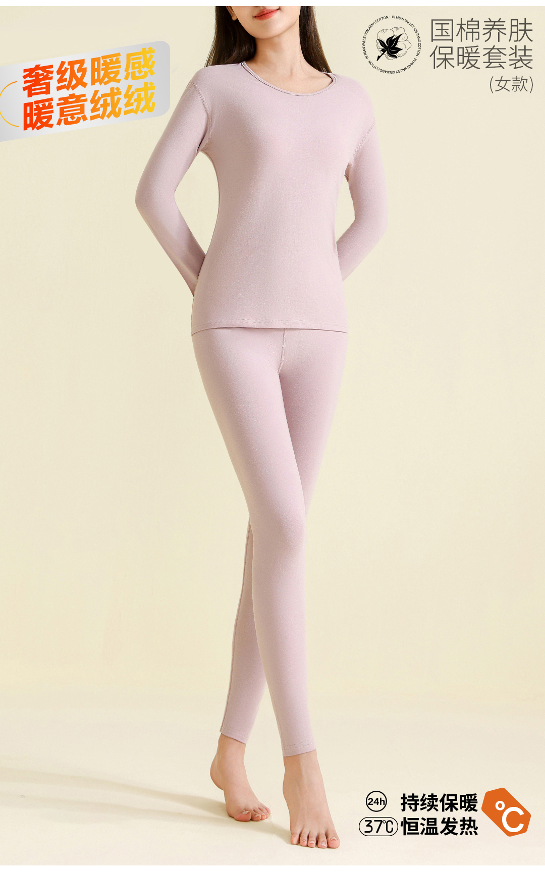 女士国棉养肤新疆长绒棉秋衣秋裤套装保暖内衣套装面料克重200g