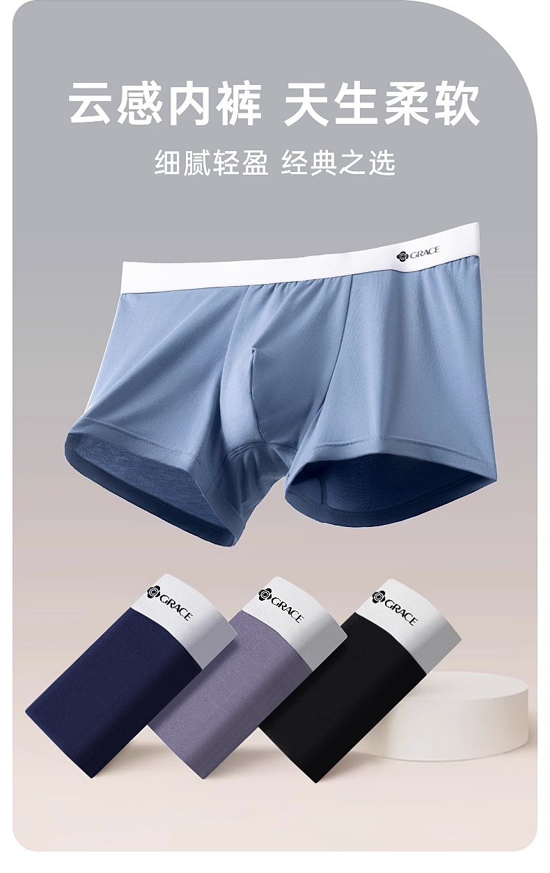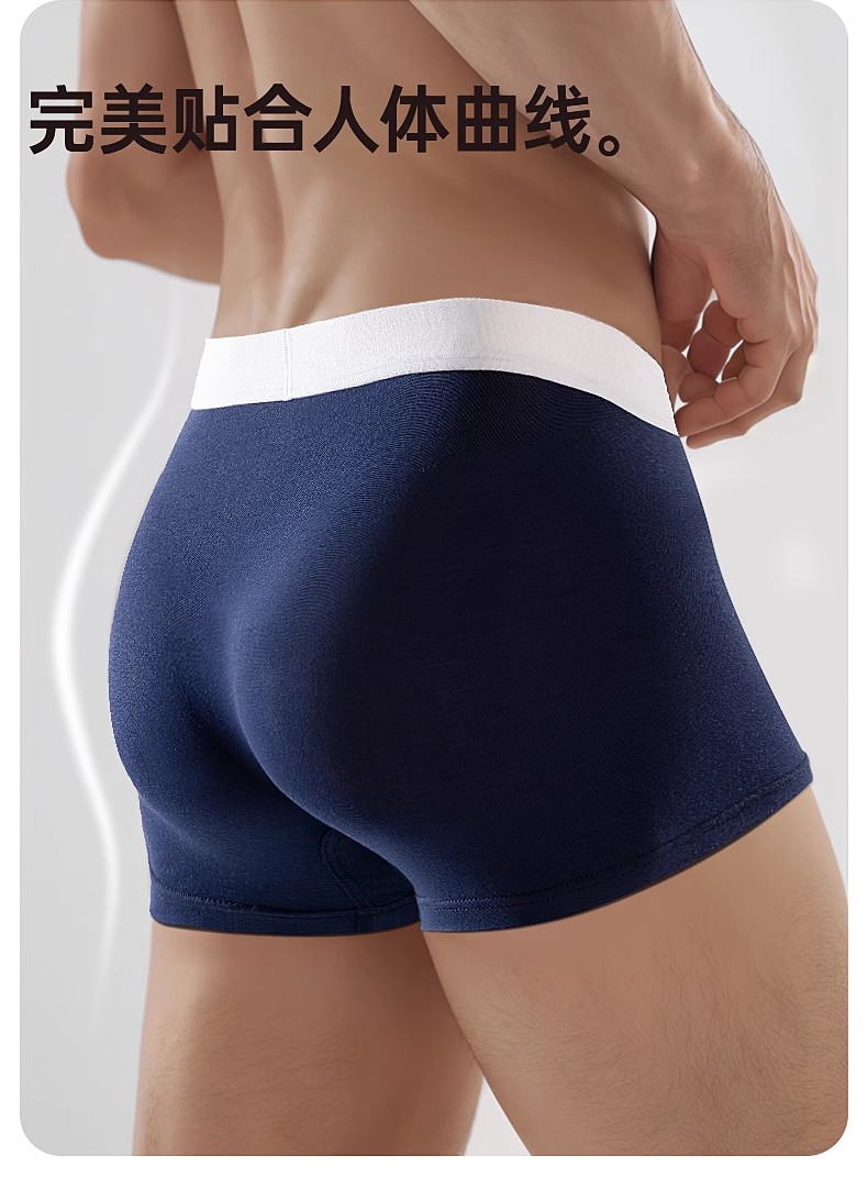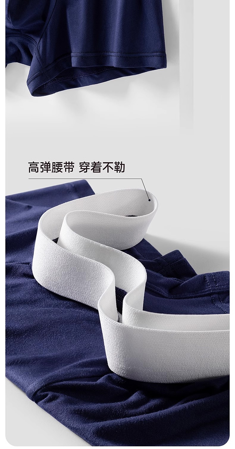 洁丽雅3条装莫代尔男士内裤中腰平角短裤男纯棉内裆青年四角内裤