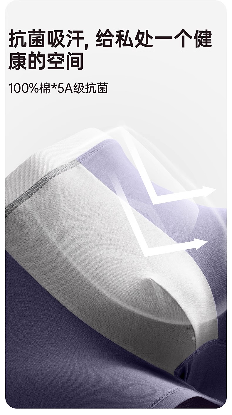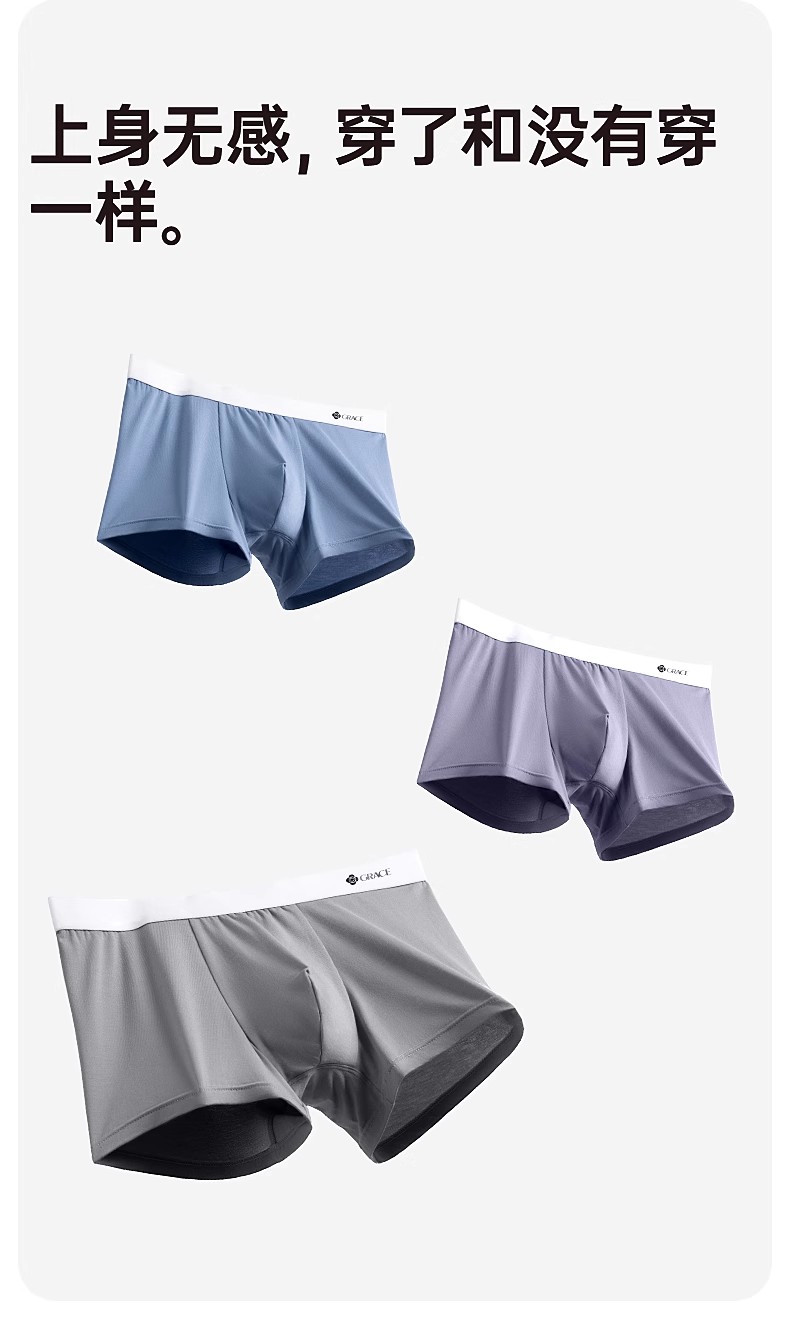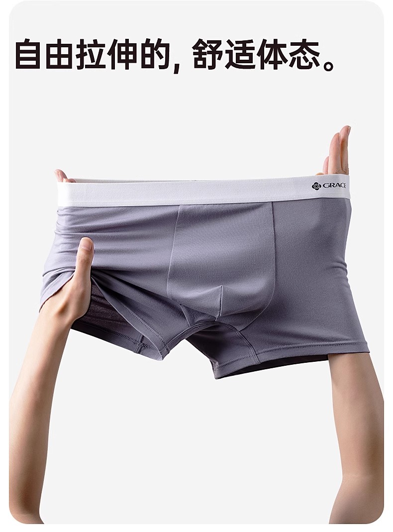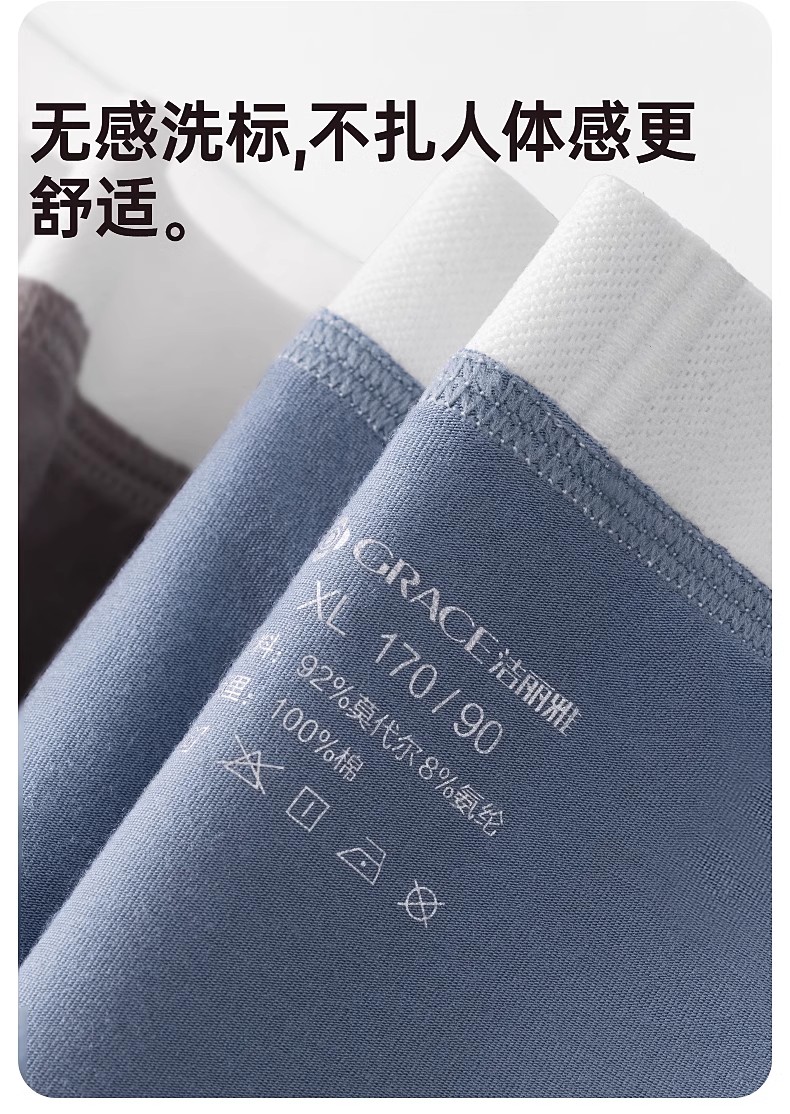 洁丽雅3条装莫代尔男士内裤中腰平角短裤男纯棉内裆青年四角内裤