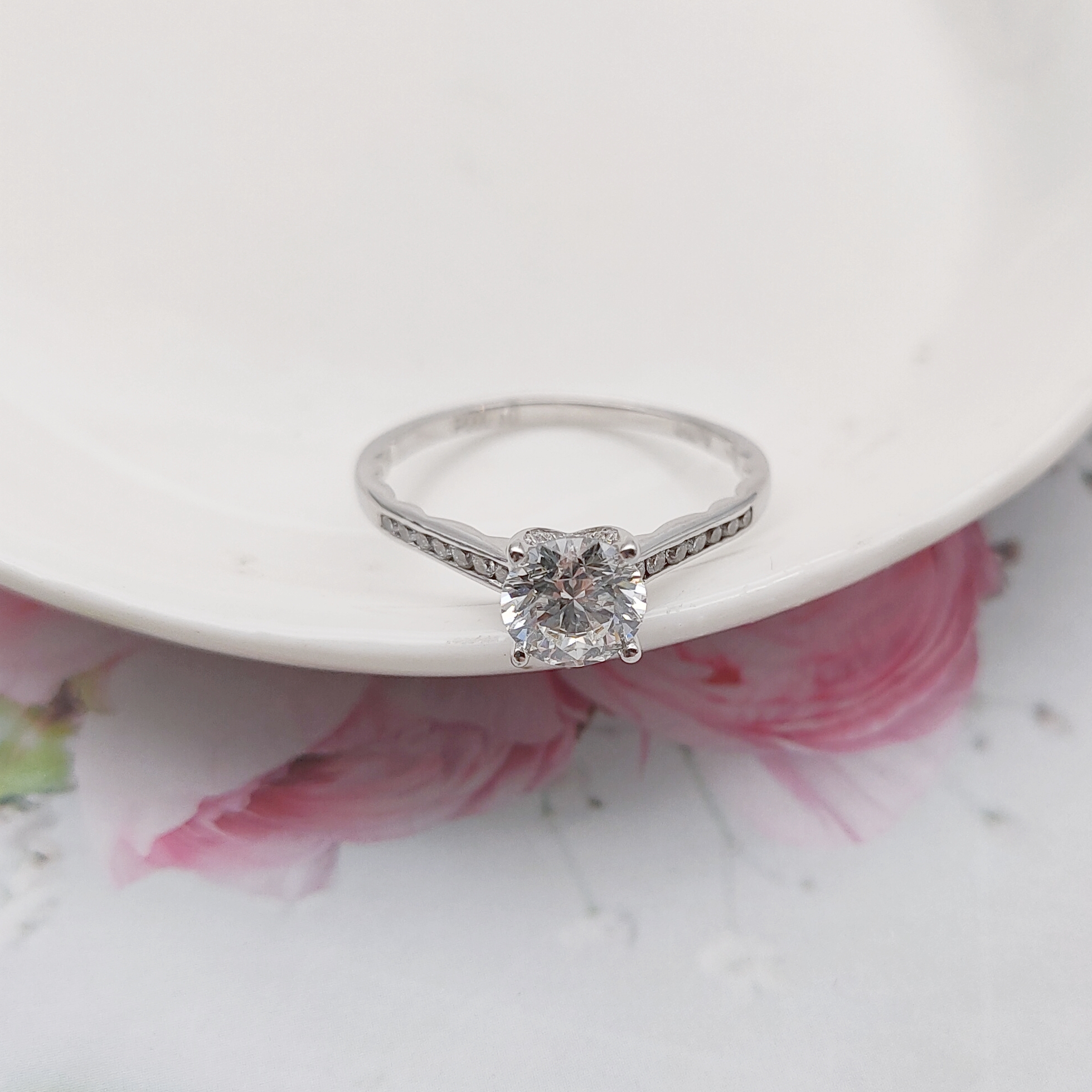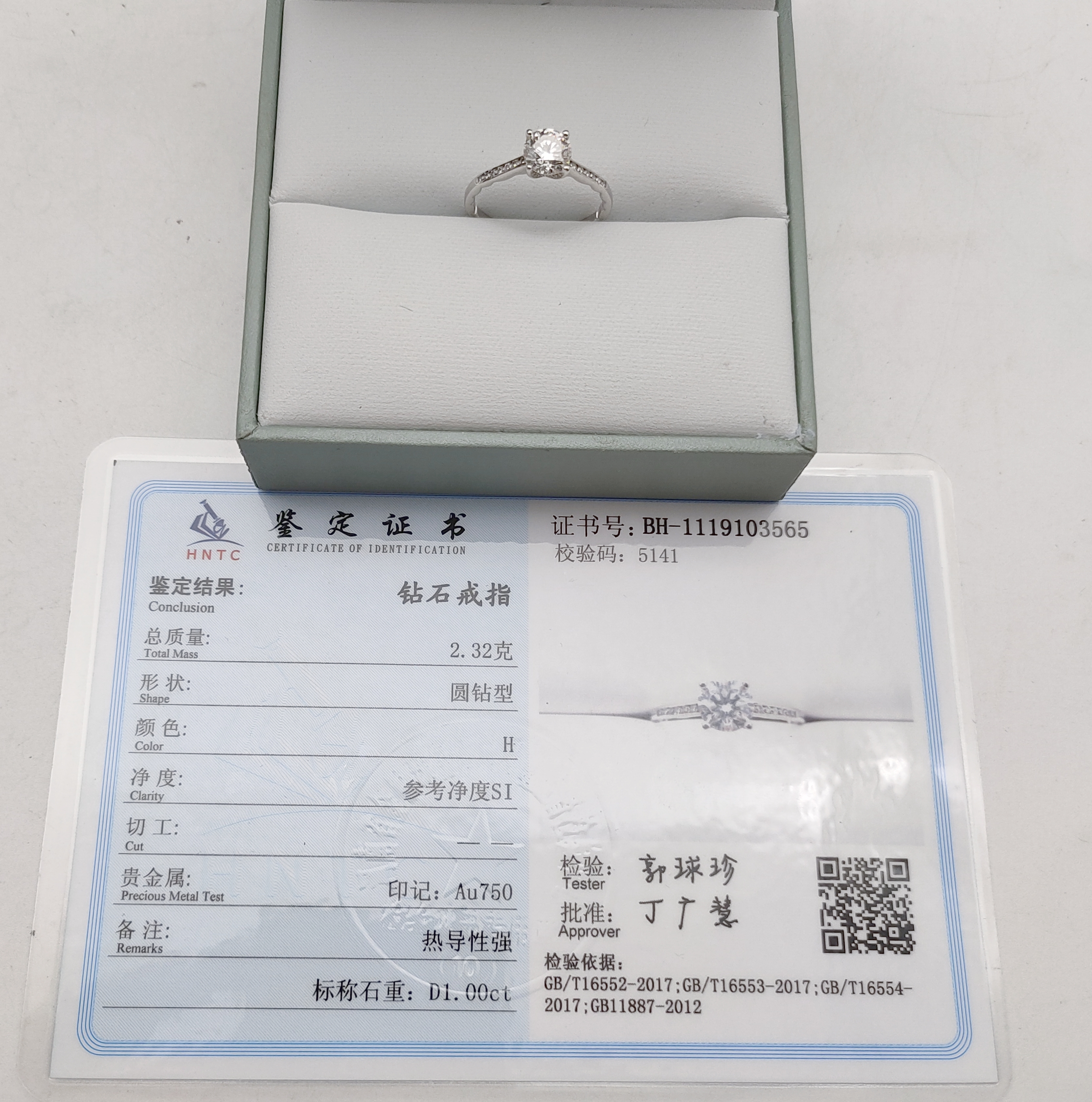 18k钻石戒指,金重:2.32克,主石:1ct, 圈号:17#,颜色:H,净度:SI, 火彩一流, 爆闪耀眼夺目,经典百搭,上手超好看,现货超低价