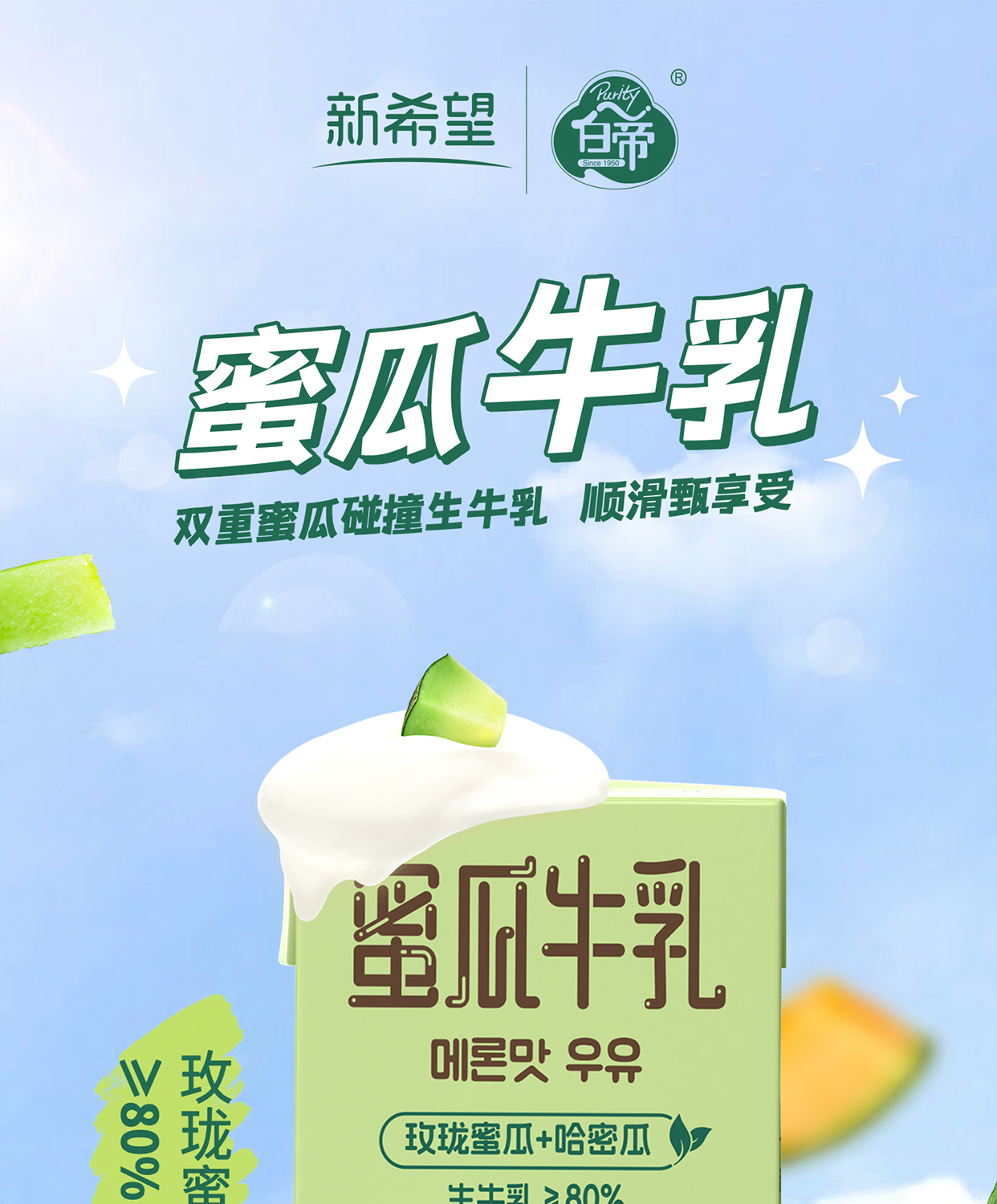 新希望 蜜瓜牛乳 200ml*12盒 整箱风味 牛奶 调制乳品 含生 牛乳 早餐奶 包邮