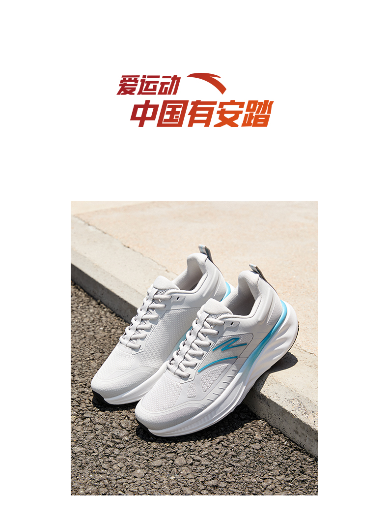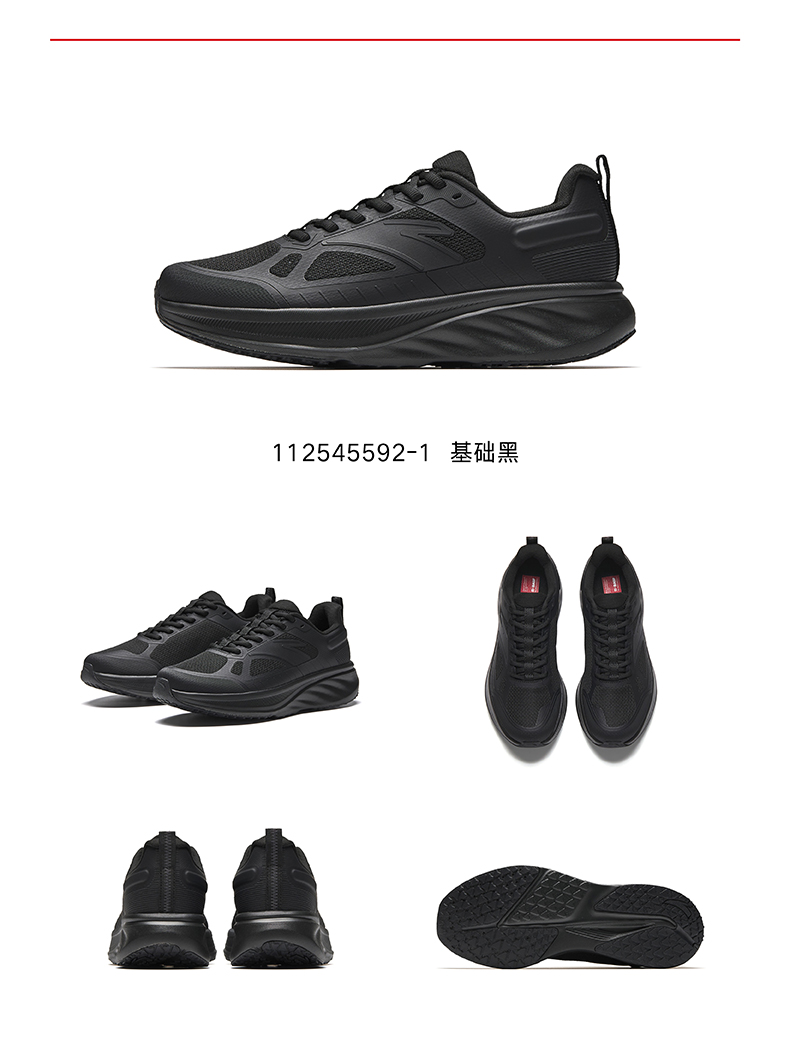 安踏城际丨缓震回弹慢跑鞋男鞋防滑耐磨黑色运动鞋112545592-3