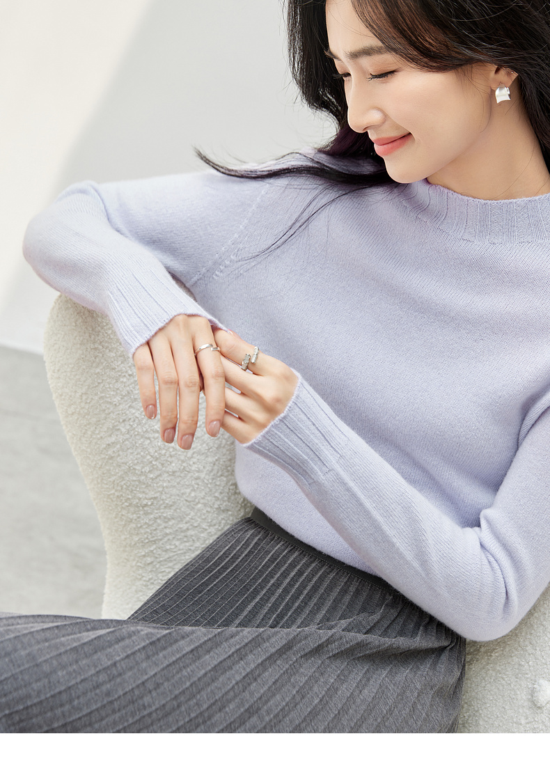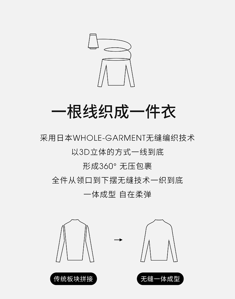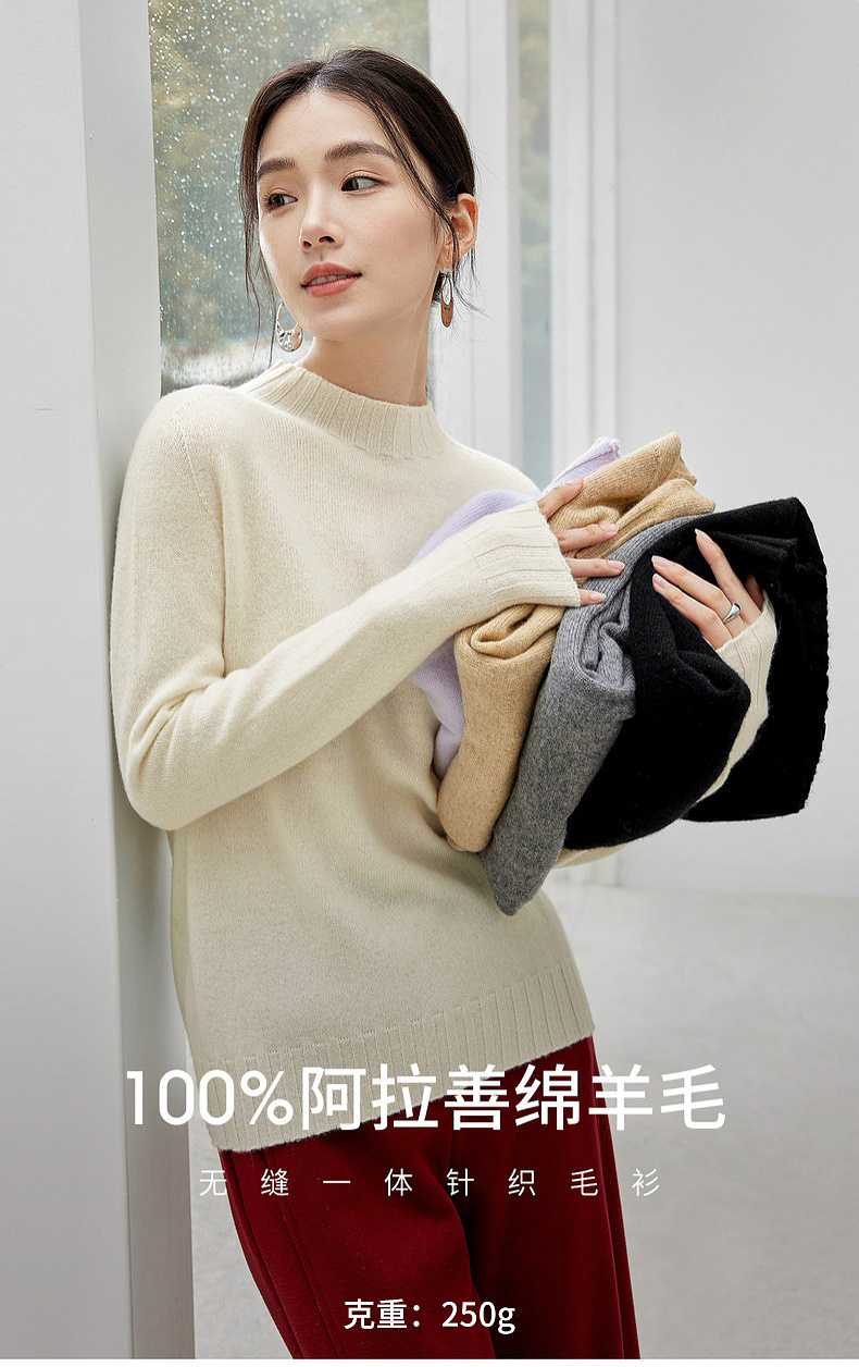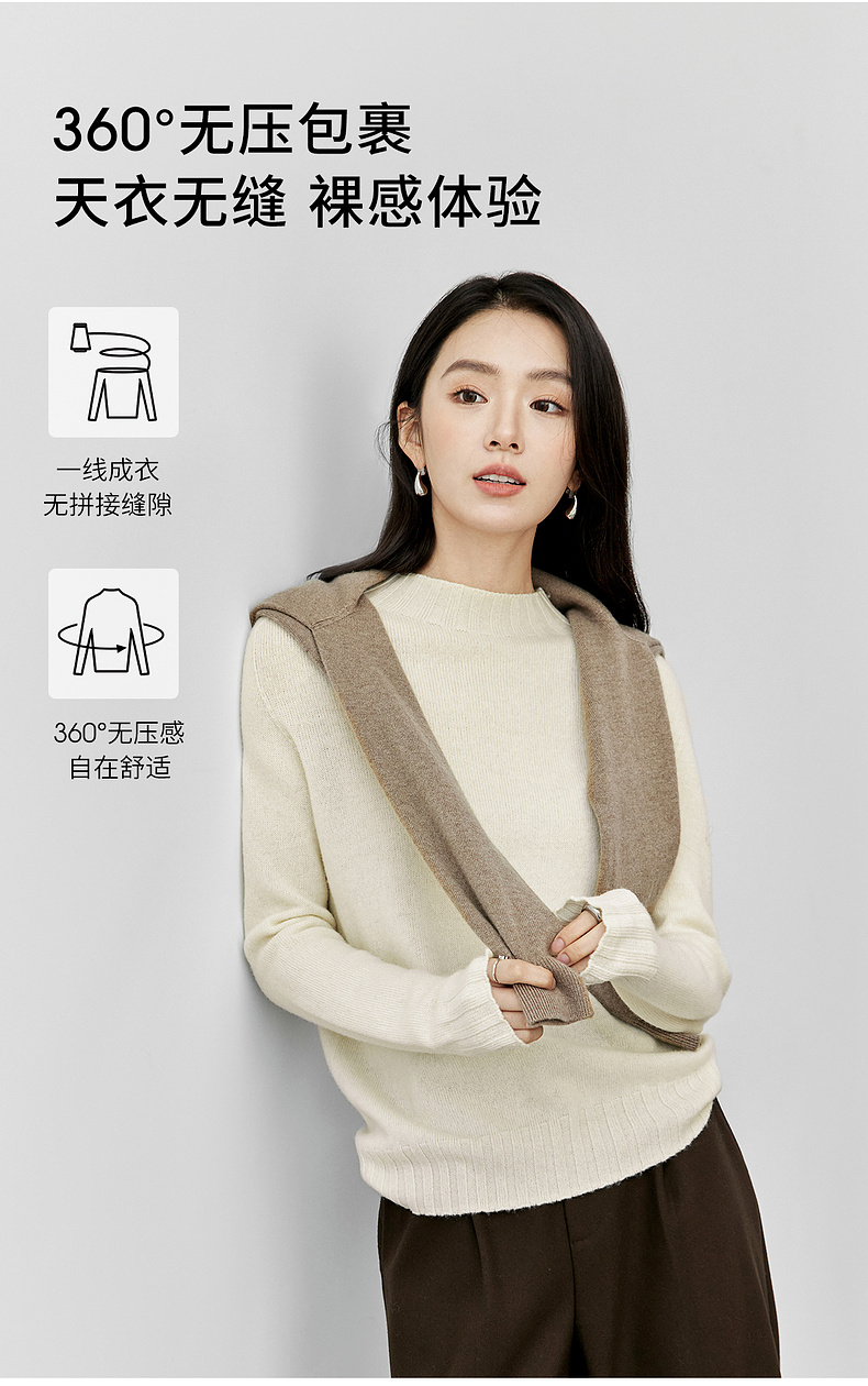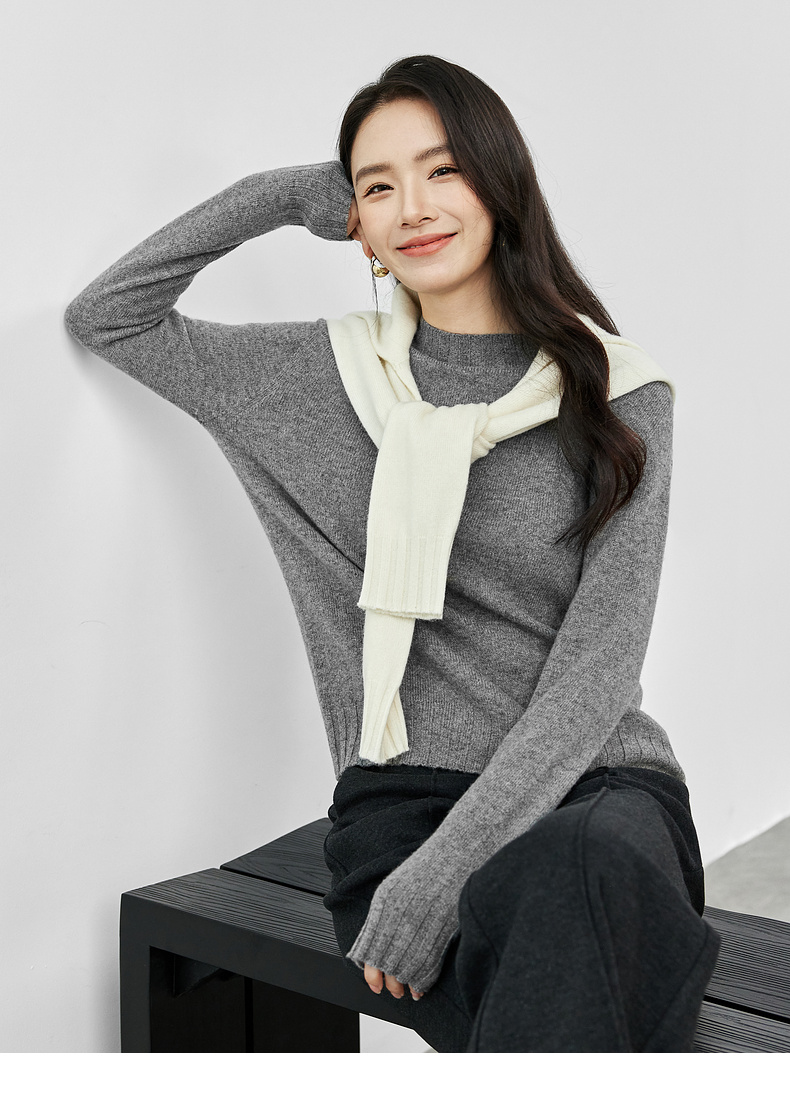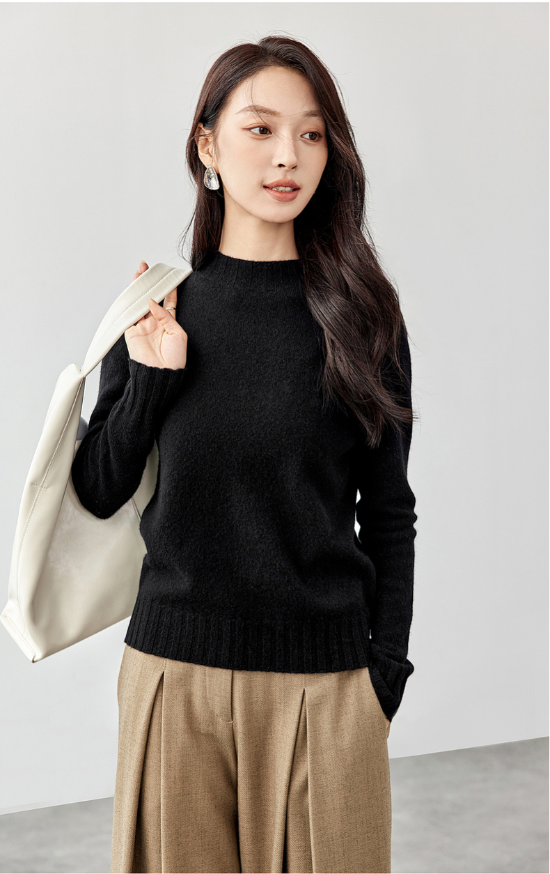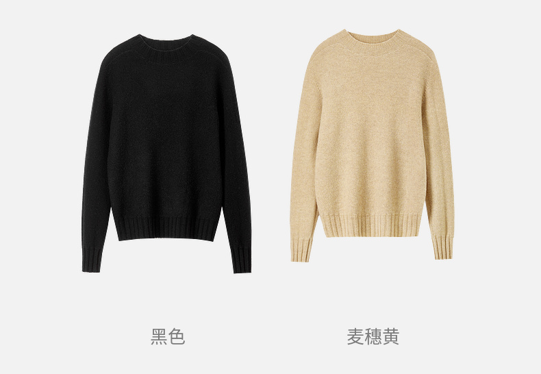 【内购】简约休闲一体无缝全羊毛上衣正肩圆领 基础款弹力针织衫-W43H57564