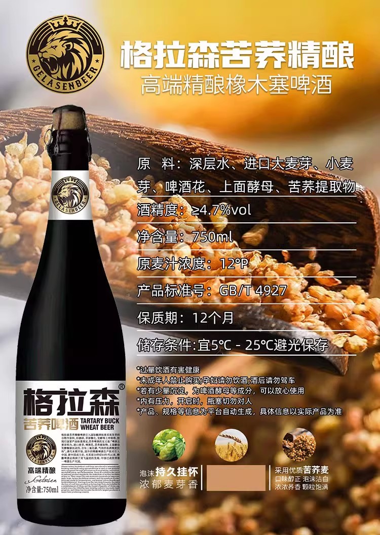 格拉森精酿苦荞啤酒(750ml*6瓶/件)