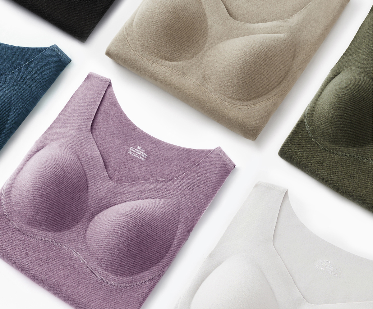RAU保暖内衣女带胸垫加绒加厚德绒背心 免文胸内搭上衣秋冬打底衫