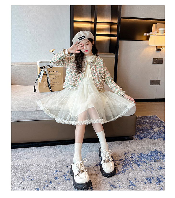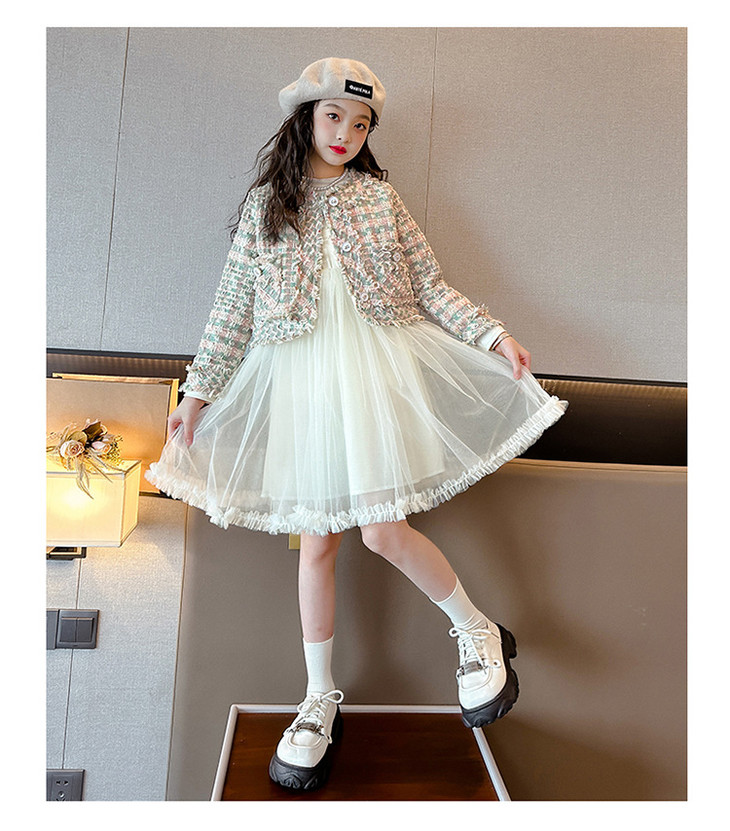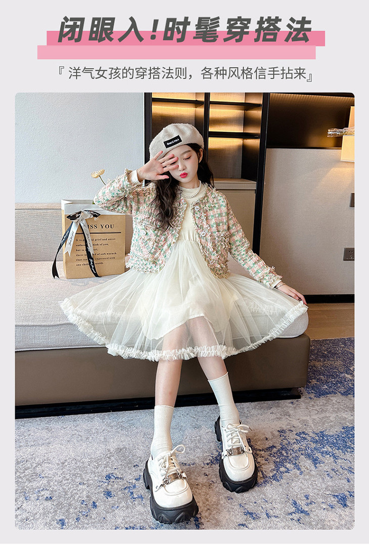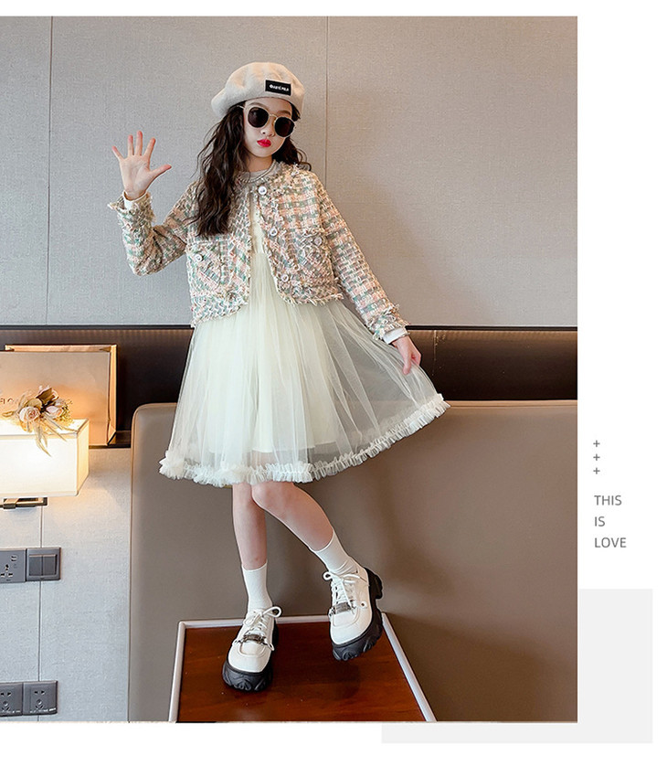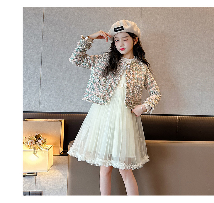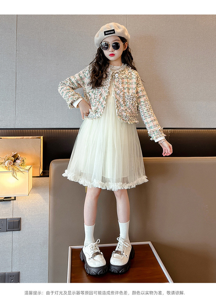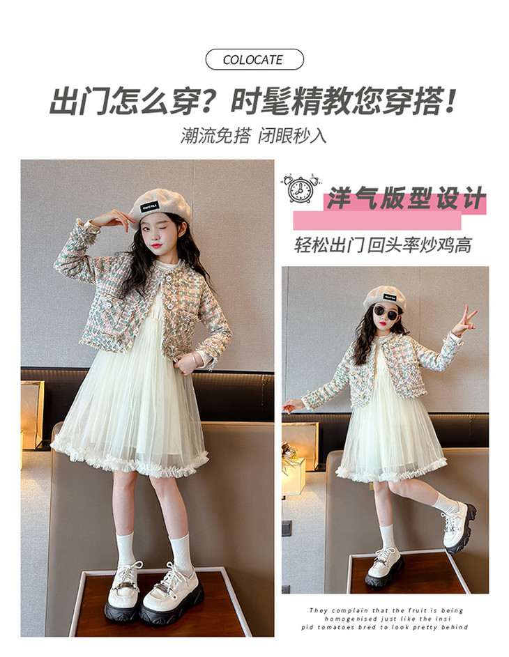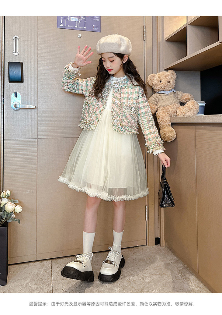 2023春秋季小香风网纱连衣裙套装PJX- FSYP粗花格子