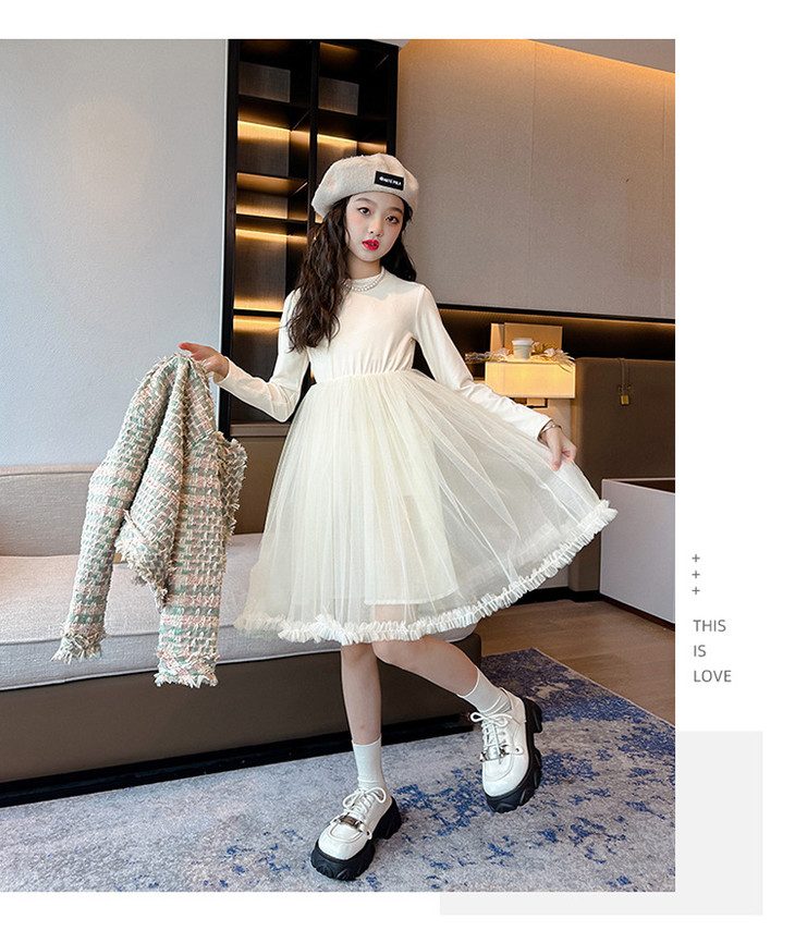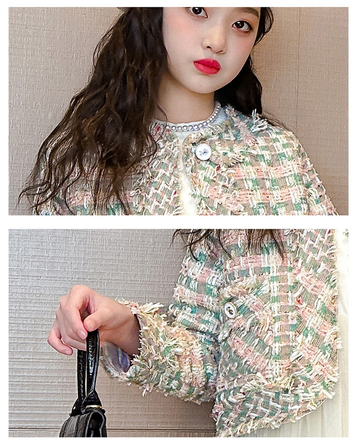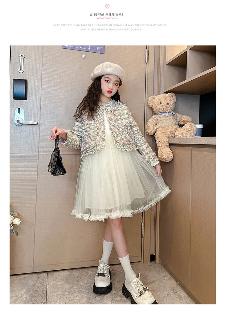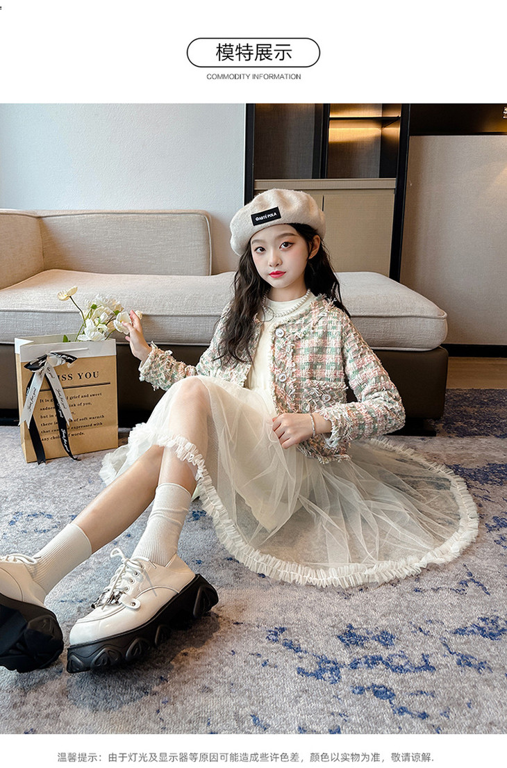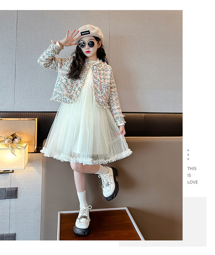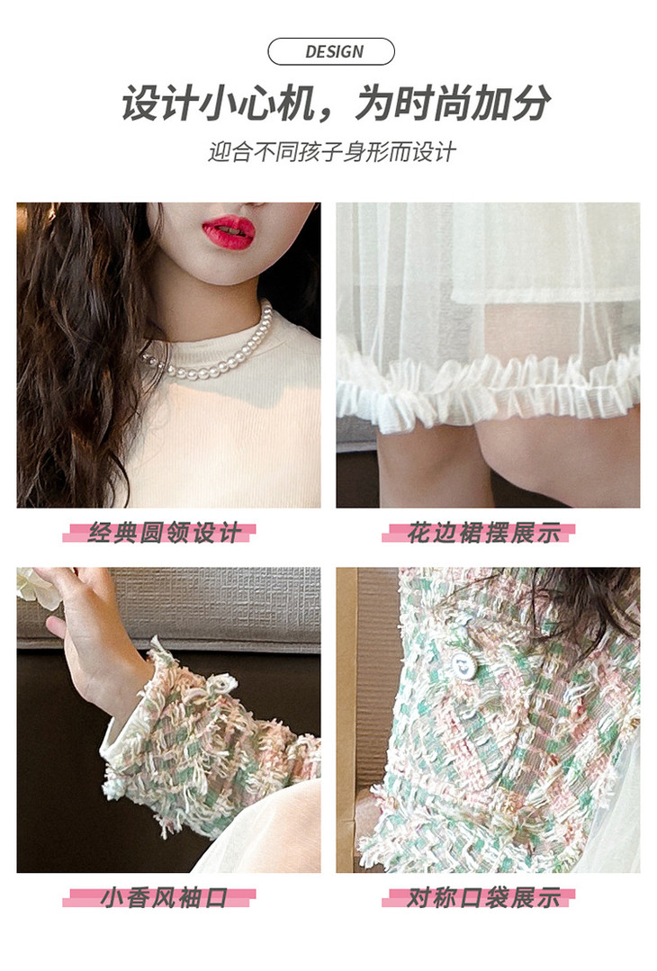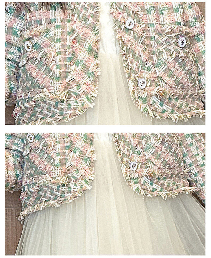 2023春秋季小香风网纱连衣裙套装PJX- FSYP粗花格子
