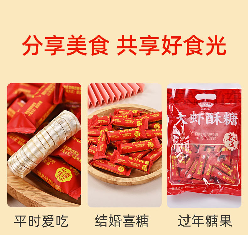 野风酥大虾酥糖500g 山东特产老式怀旧花生酥心糖果喜糖零食年货