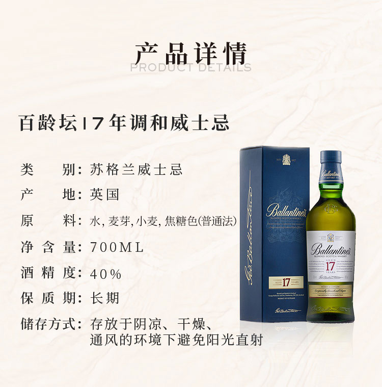 【单瓶】百龄坛17年威士忌 40%vol 700ml