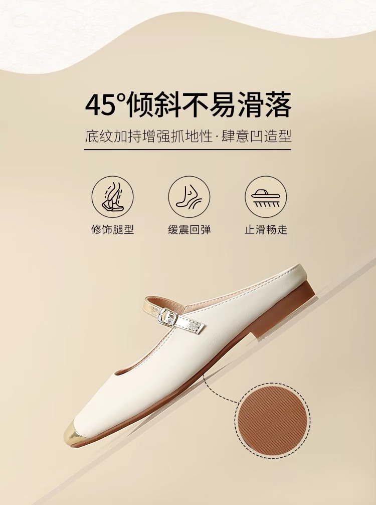 步印【舒适优雅】法式轻奢款优雅小半拖(尺码偏小,拍大一码)
