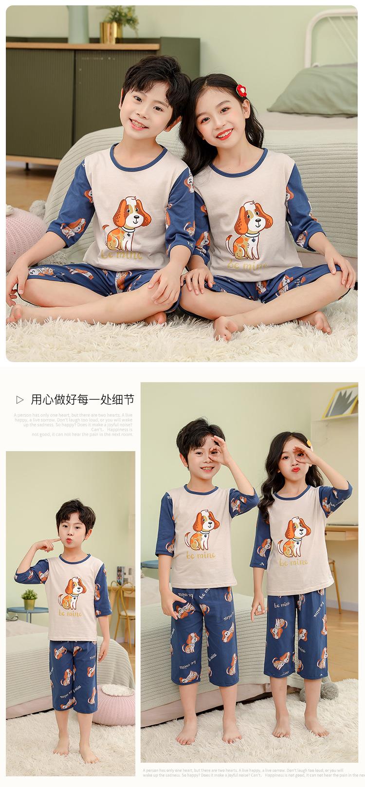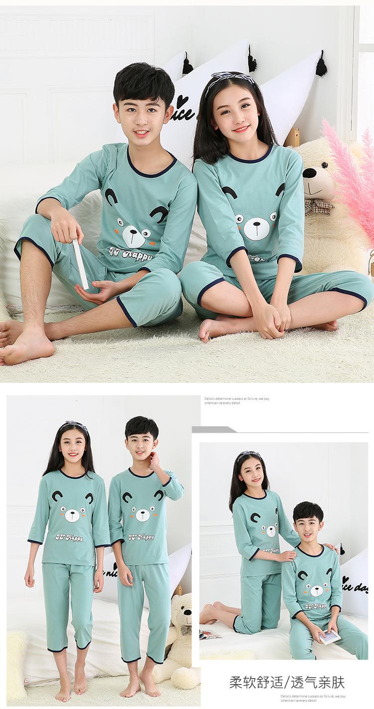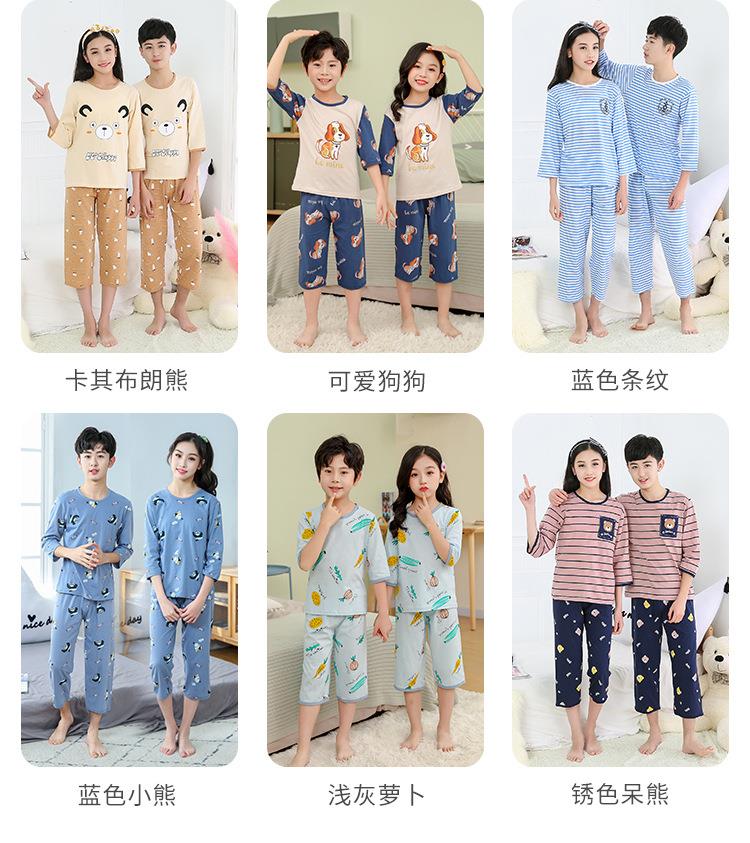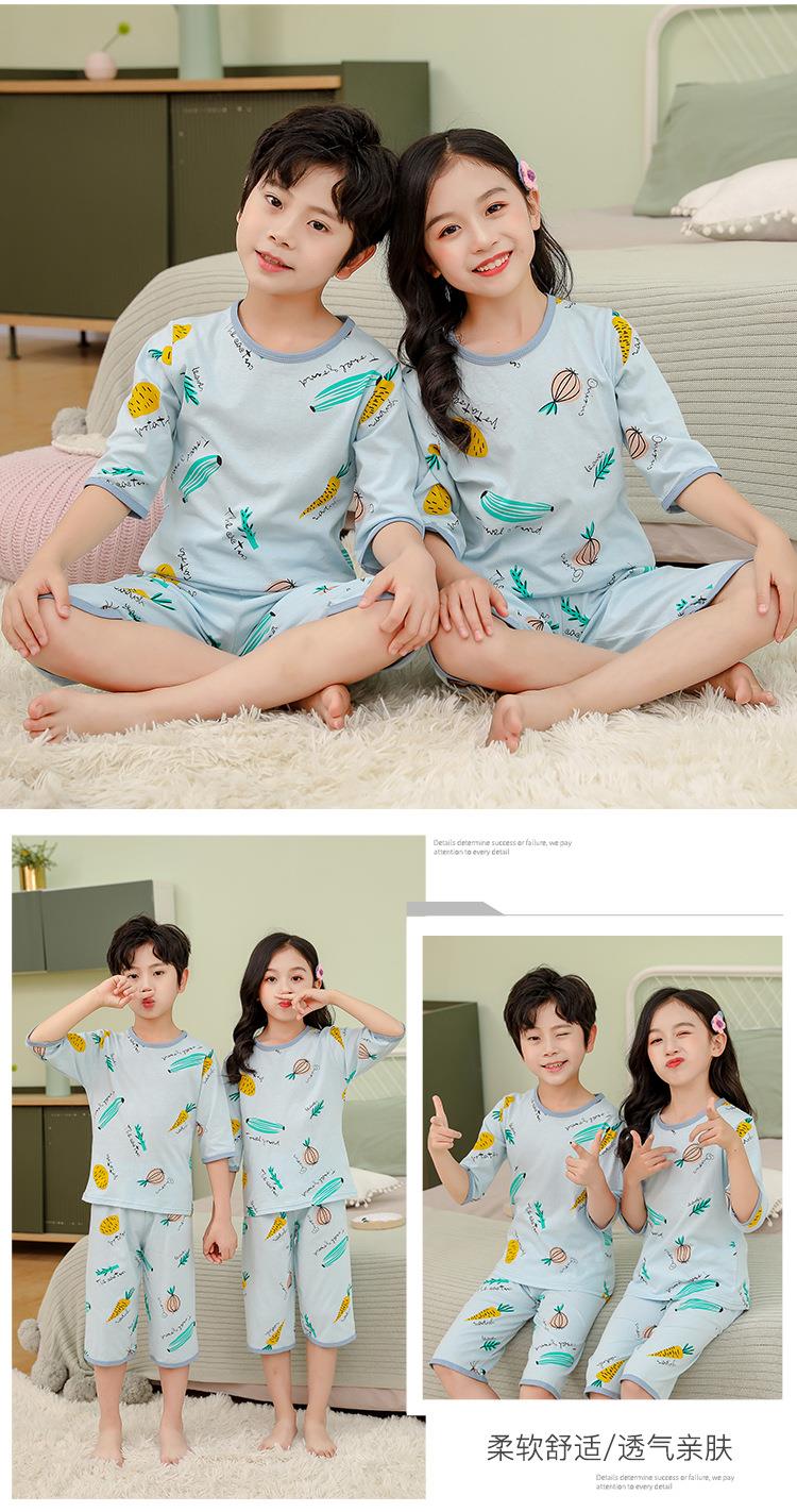 中大童七分袖套装宝宝空调服童装夏男女童薄款宽松内衣睡衣批发