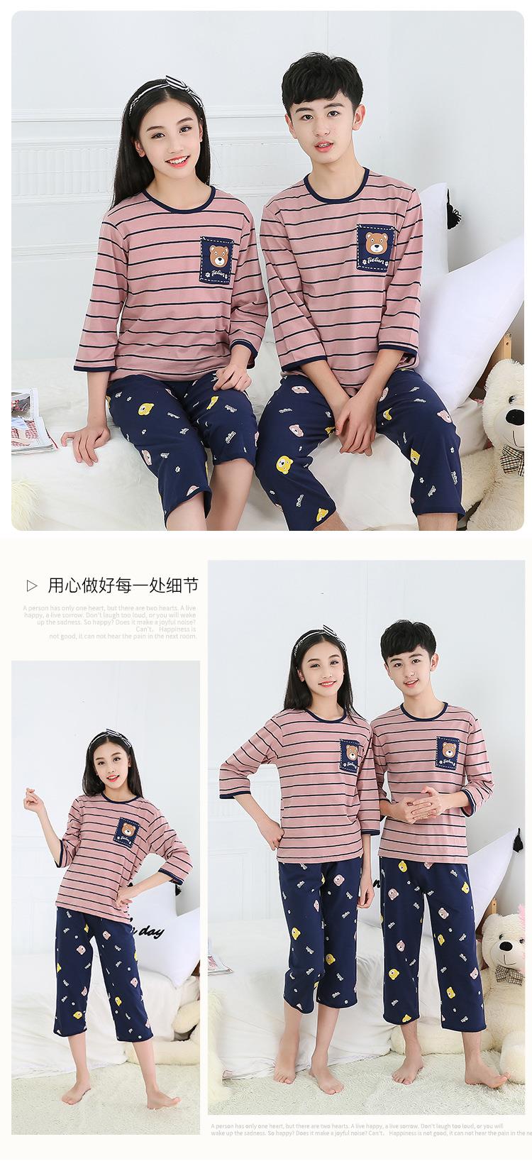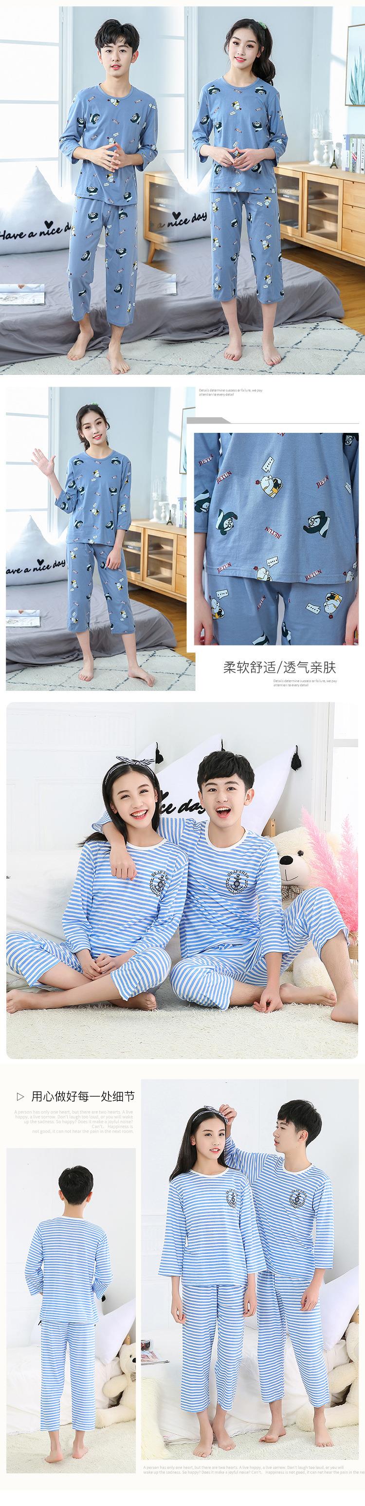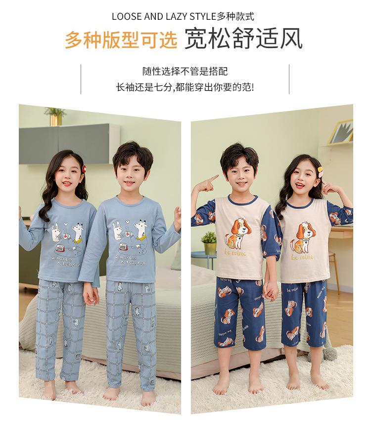 中大童七分袖套装宝宝空调服童装夏男女童薄款宽松内衣睡衣批发