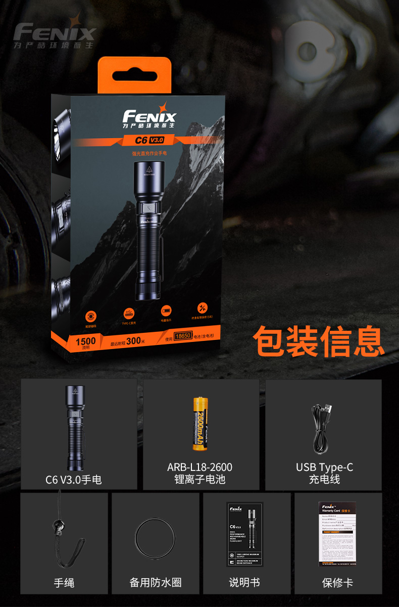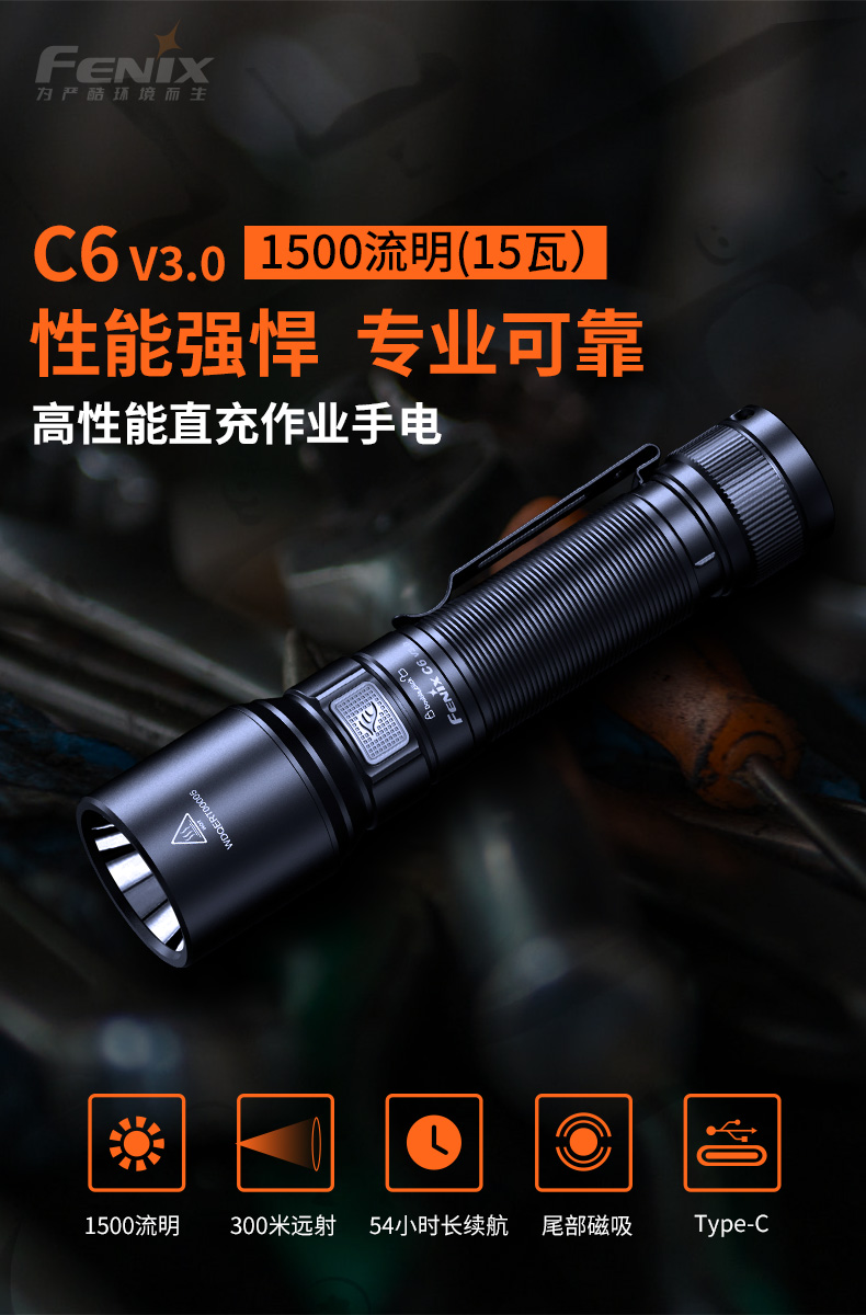 Fenix菲尼克斯C6 V3.0手电筒强光远射磁吸工作灯