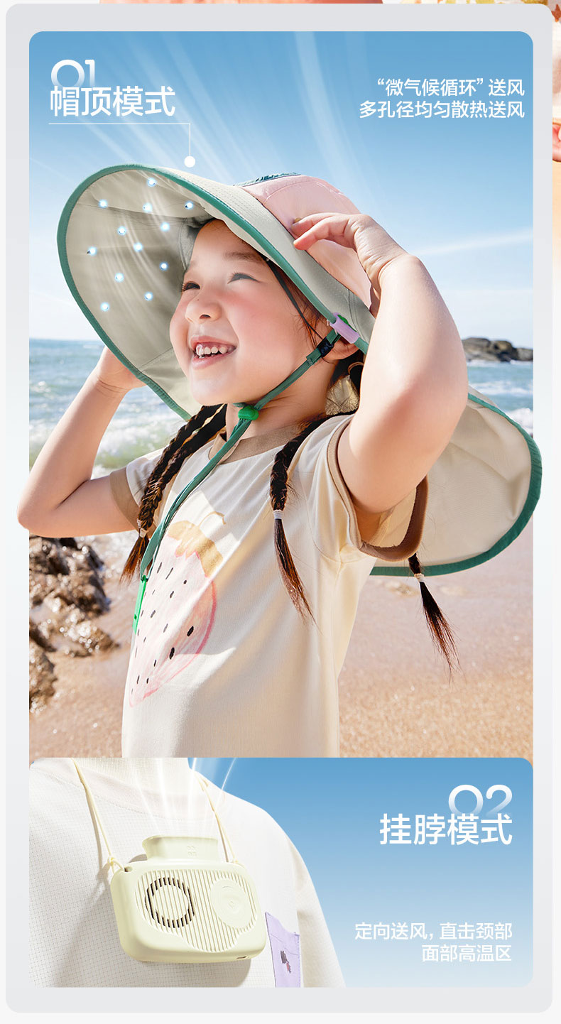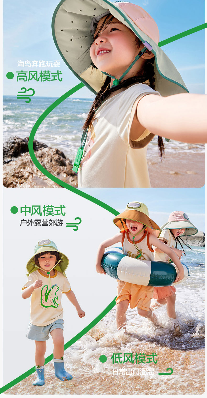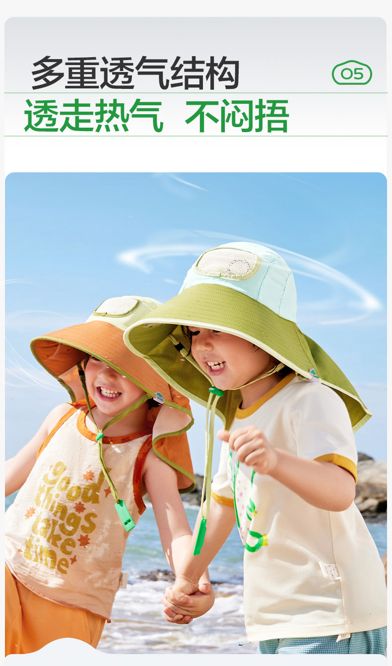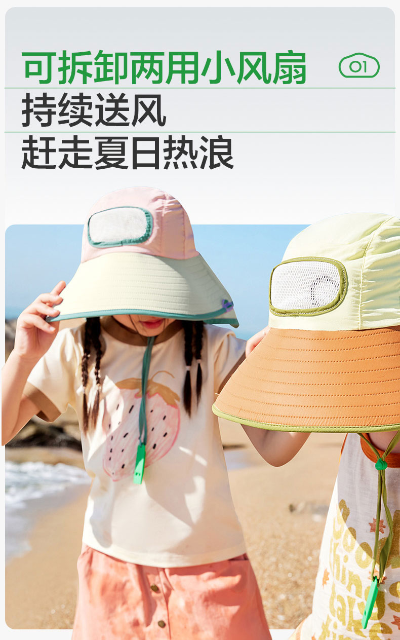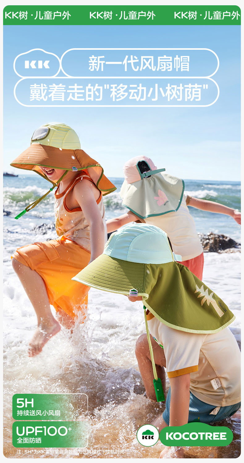 KK树儿童防晒帽男孩女童遮阳帽夏季风扇帽沙滩透气太阳帽防紫外线小清凉风扇防晒帽