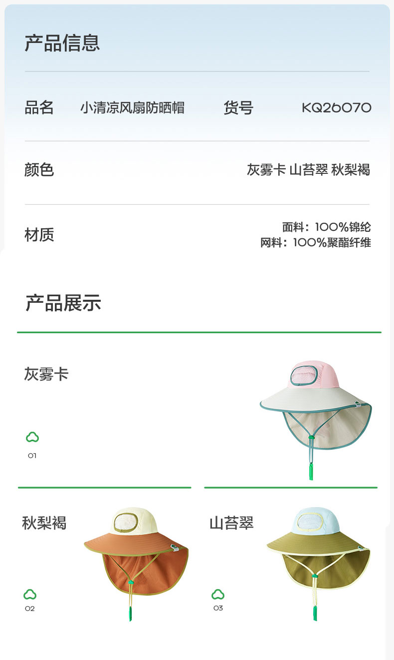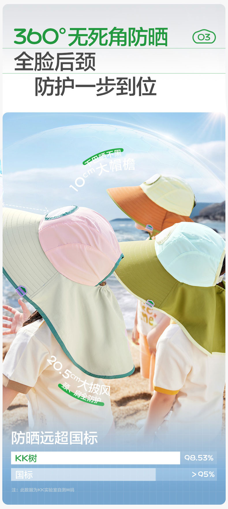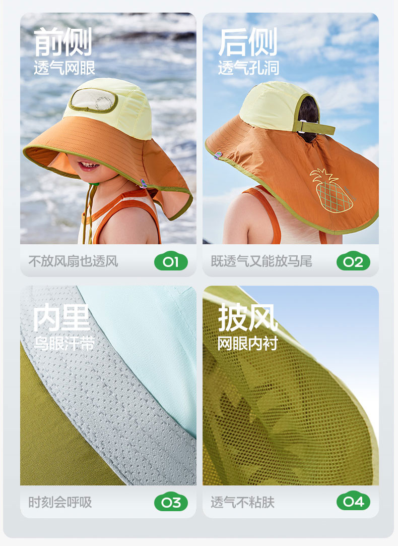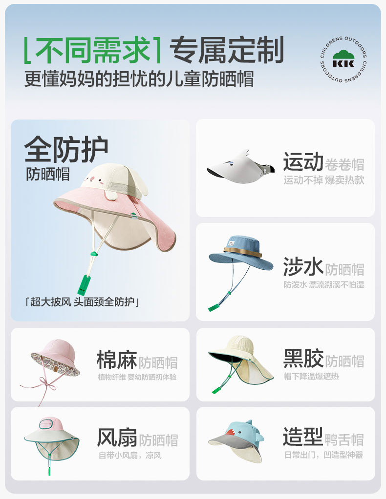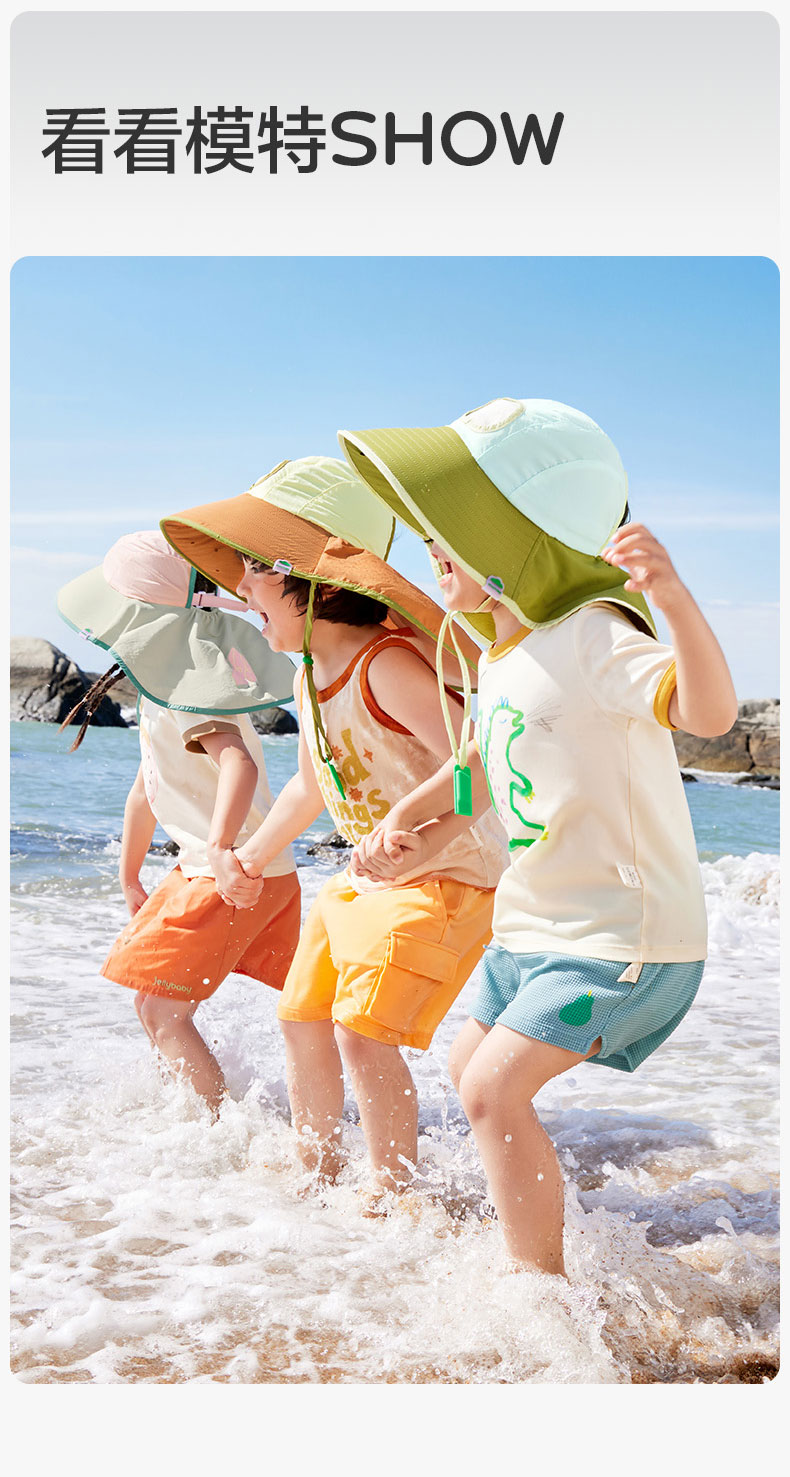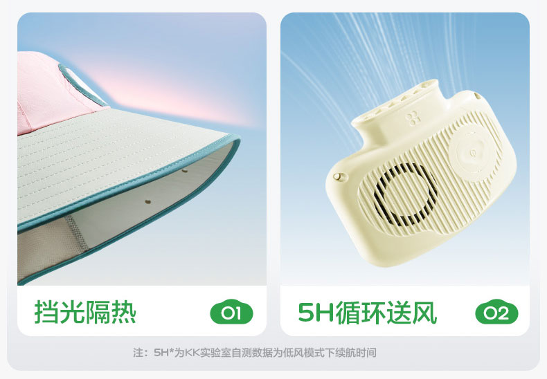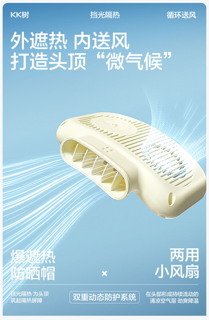 KK树儿童防晒帽男孩女童遮阳帽夏季风扇帽沙滩透气太阳帽防紫外线小清凉风扇防晒帽