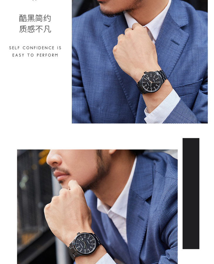 卡罗莱男表全自动机械表精钢带男士手表皮带休闲商务腕表 CA1069MM