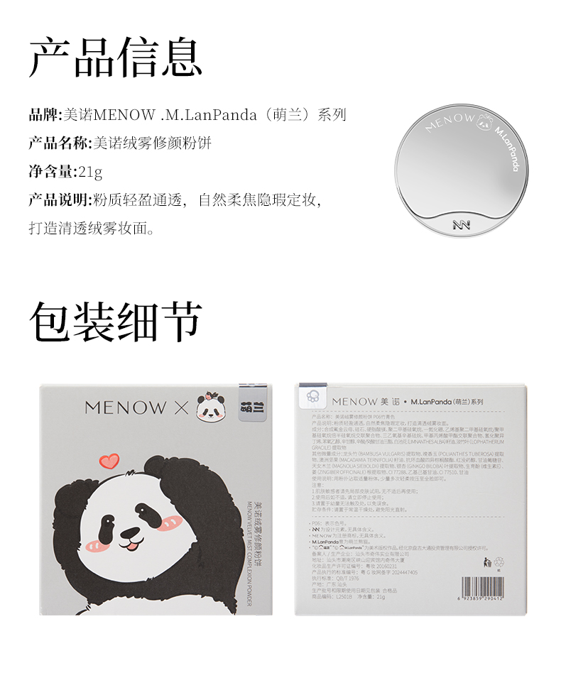【限定组合】MENOW美诺粉我气垫+萌兰熊饼21g遮瑕养肤控油不脱妆