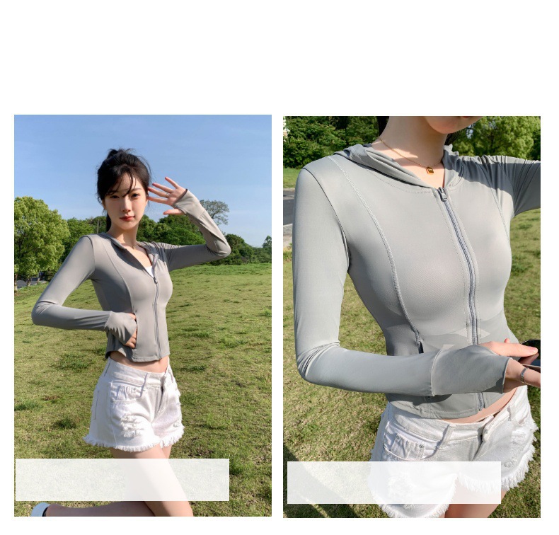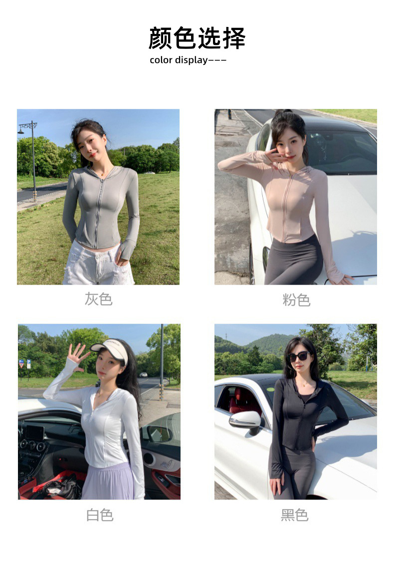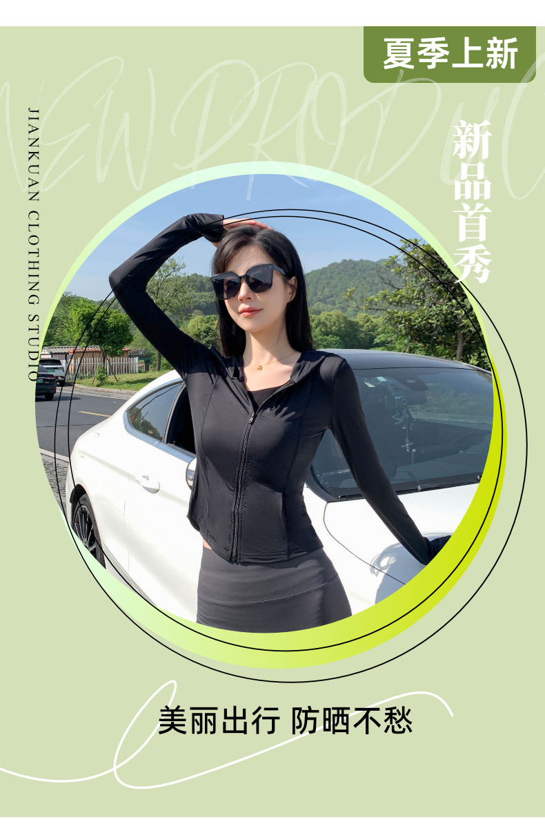 【美丽出行!防晒不愁】锦纶原纱冰丝凉感瑜伽外套修身款防晒衣女夏季防紫外线透气防晒服,透气性好,不易闷汗,尽情享受阳光带来的滋养,健康美丽的出街吧。