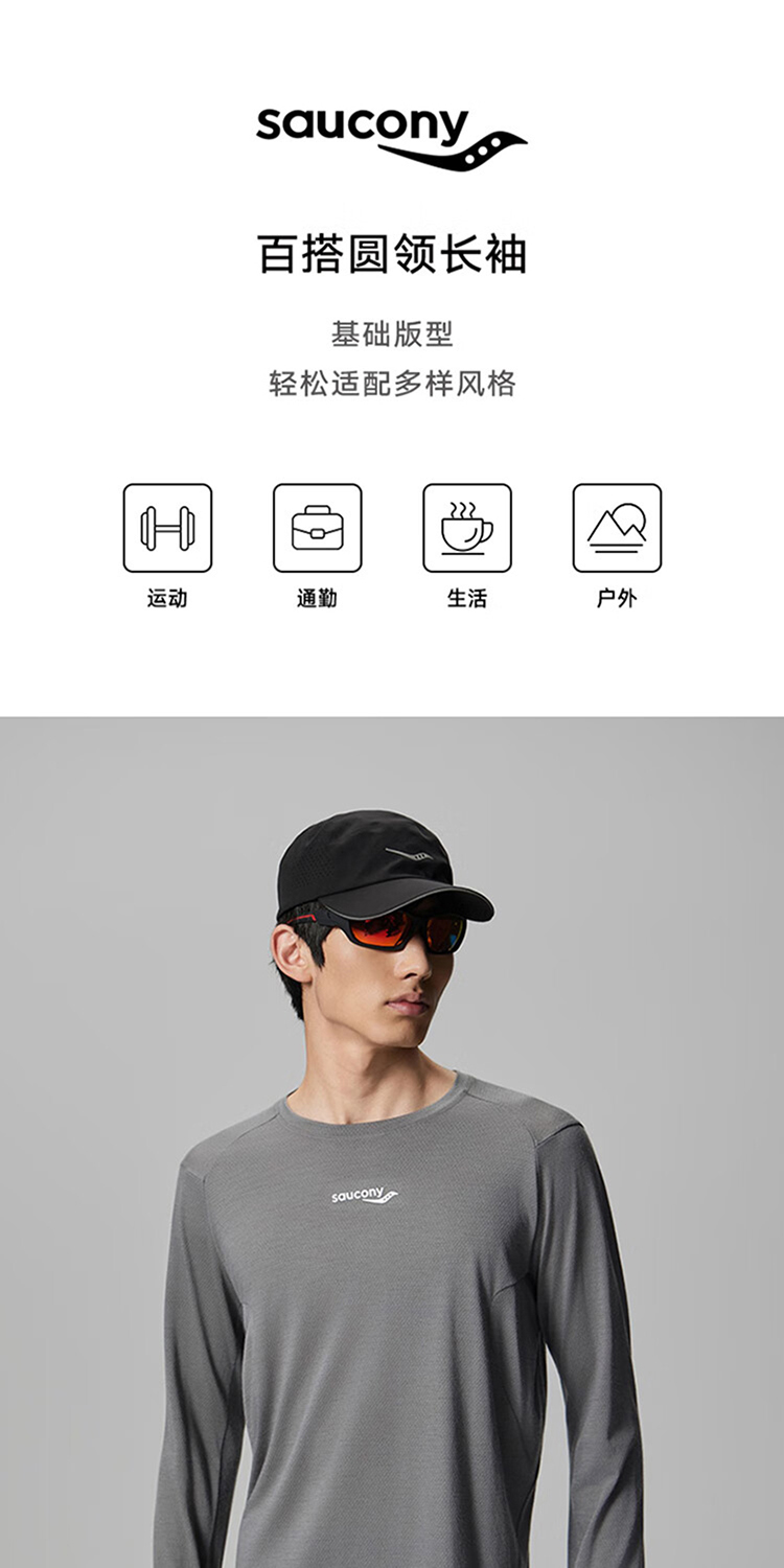 Saucony索康尼 男款运动户外秋冬防风百搭时尚长袖T桖