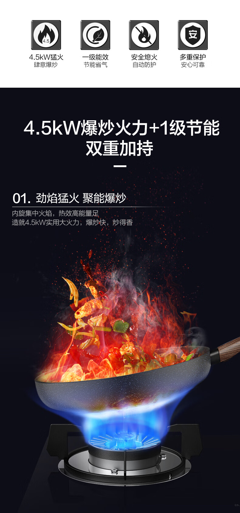 美的(Midea)燃气灶 双灶 家用大火力 台嵌两用 灶具双眼灶 4.5KW火力 JZY-QTW15(液化气)